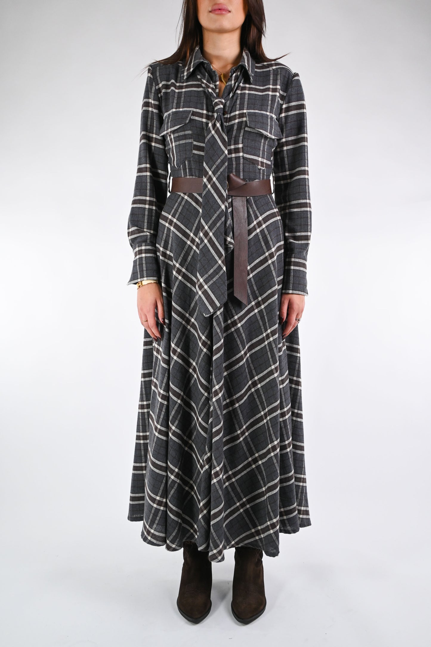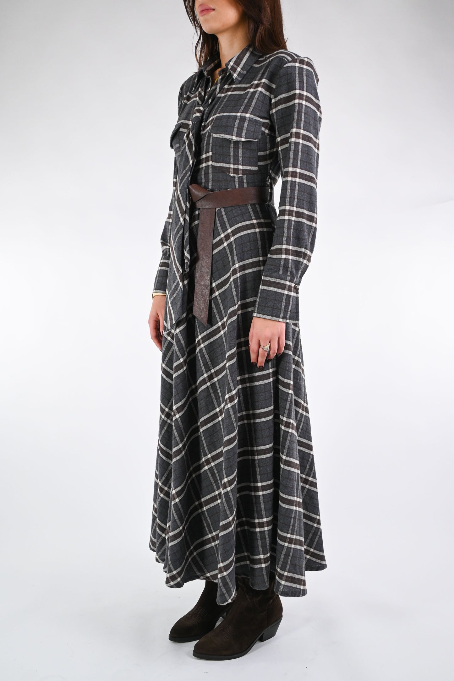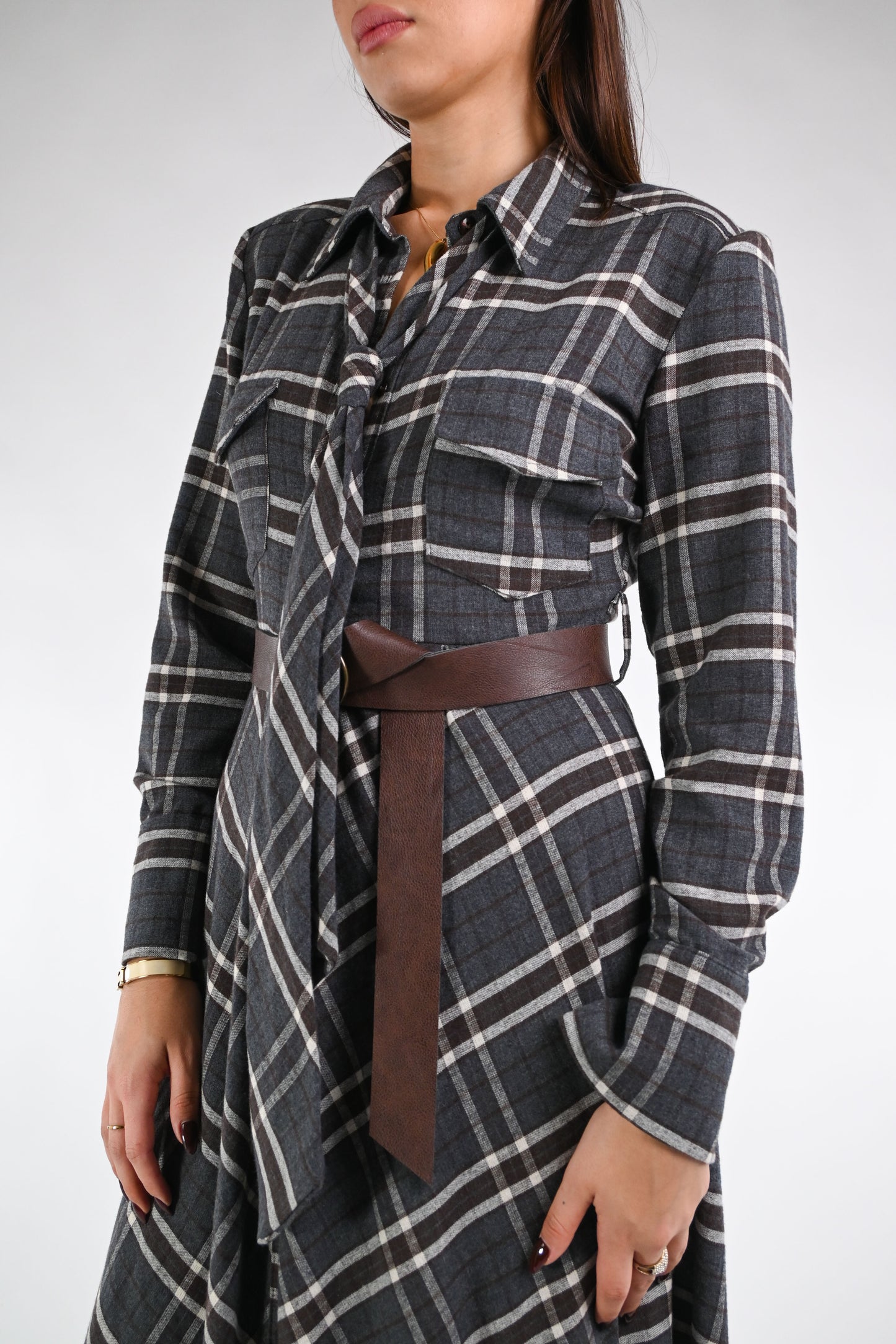SOUVENIR - ABITO/CHEMISIER QUADRI CON SPALLINE ART.M38F1271 - GRIGIO