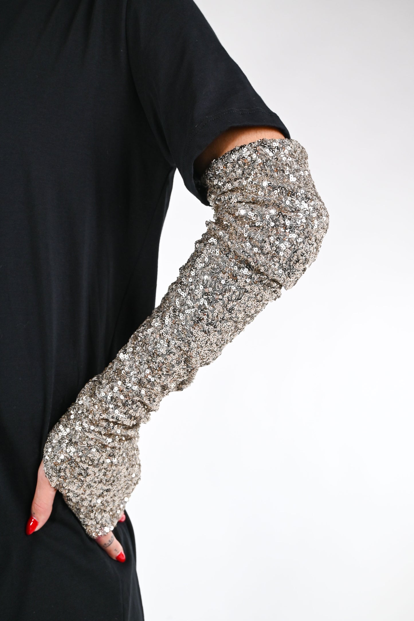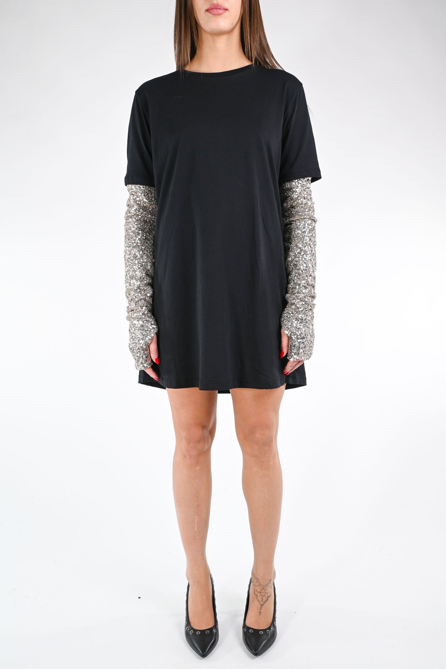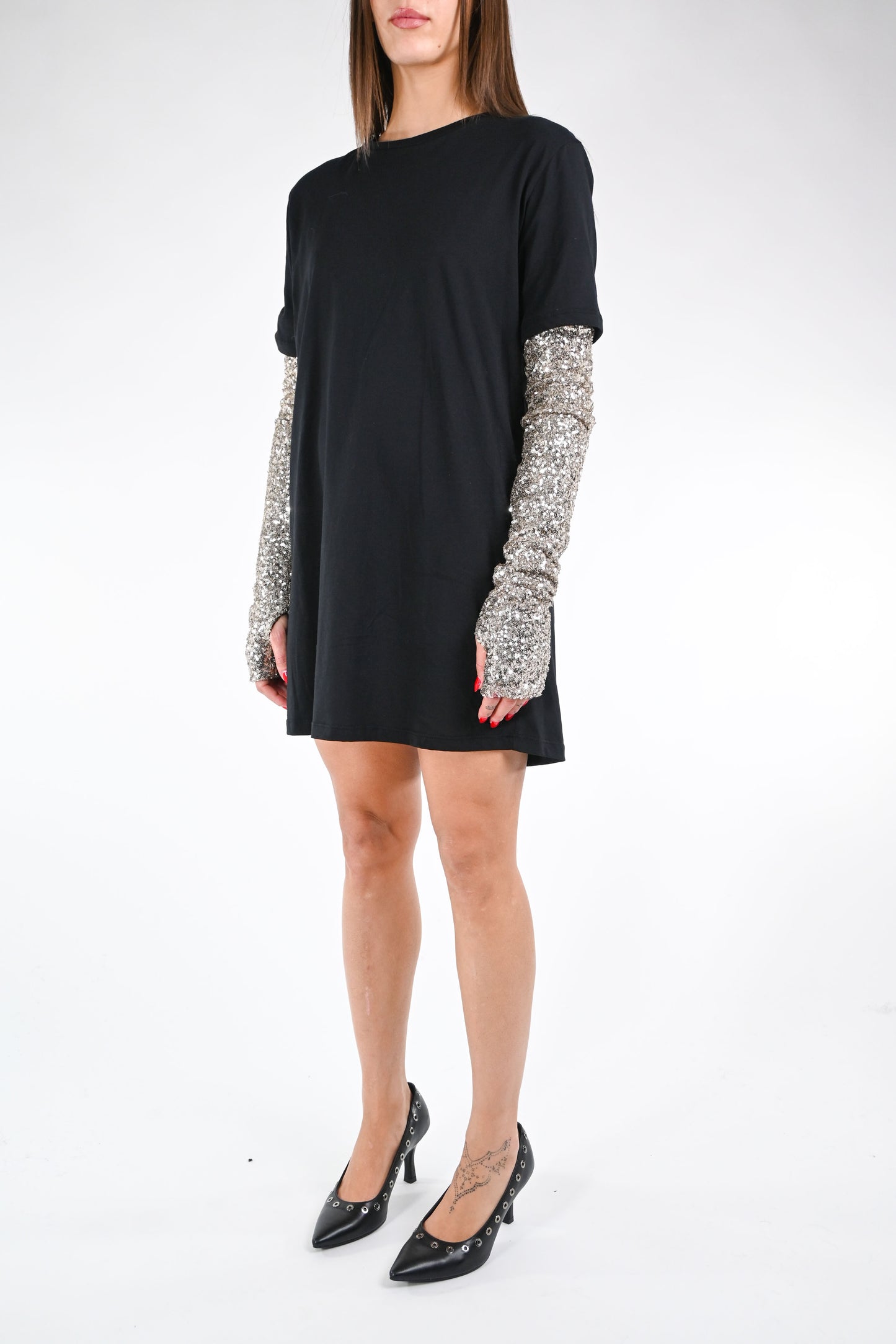 TENSIONE IN - MINIABITO JERSEY+MANICOTTO PAILLETTES ART.38121 - NERO