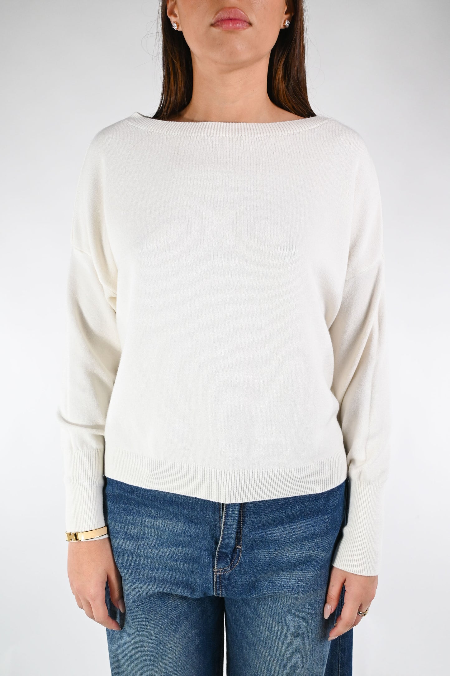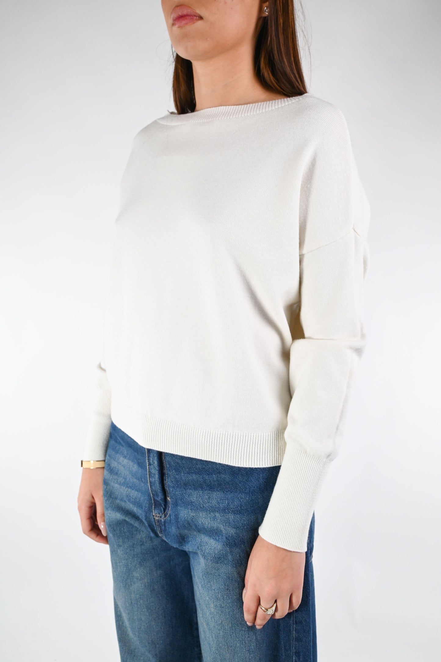 Maglia over in calda viscosa elasticizzata, collo a barca, colore panna