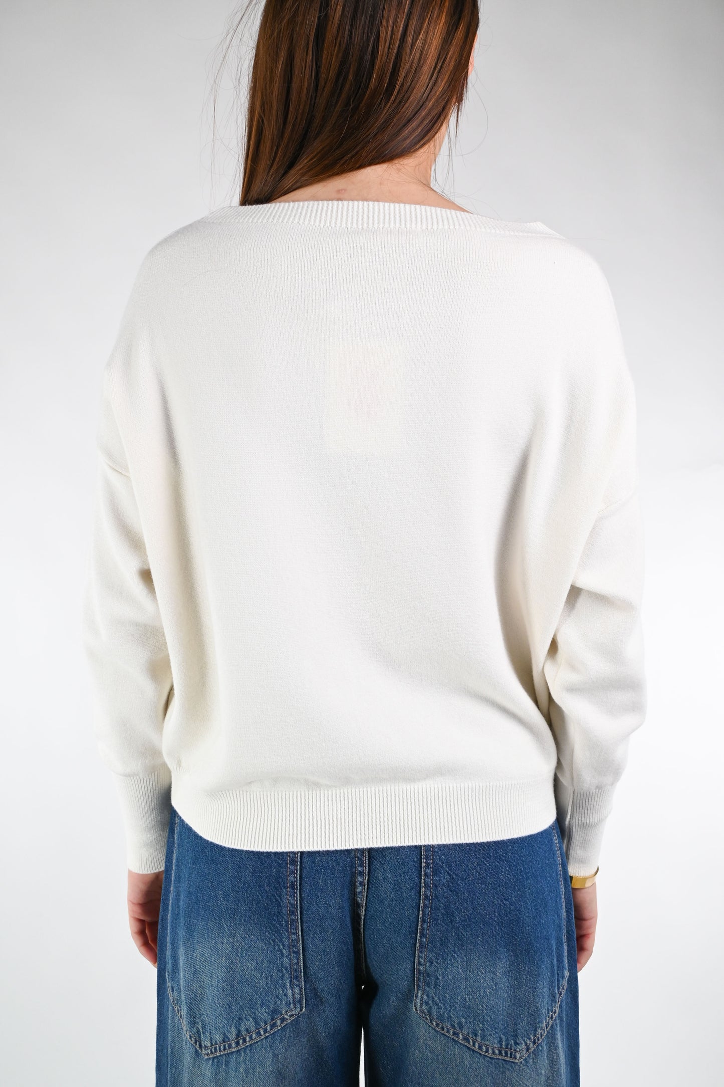 B LOVE - MAGLIA VISCOSA COLLO BARCA ART.9689 - PANNA