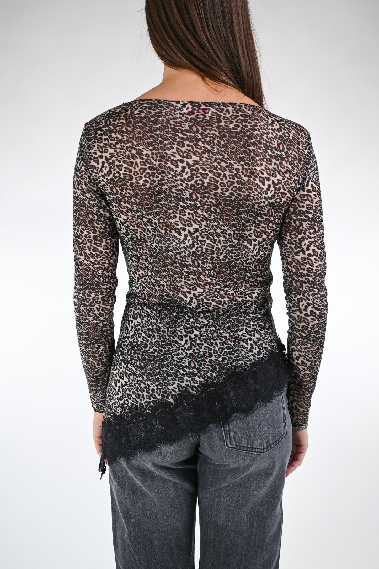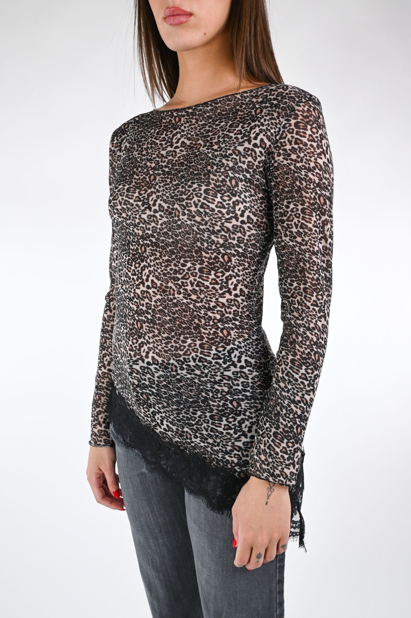 B LOVE - T-SHIRT ASIMMETRICA MISTO CACHEMIRE CON PIZZO ART.11820S - ANIMALIER