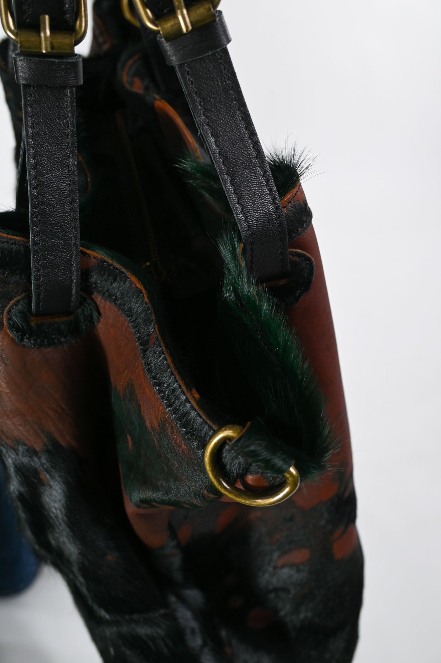 Borsa shopping grande in cavallino+pelle, con manici in pelle, con tracolla, con zip per chiuderla, colore moro