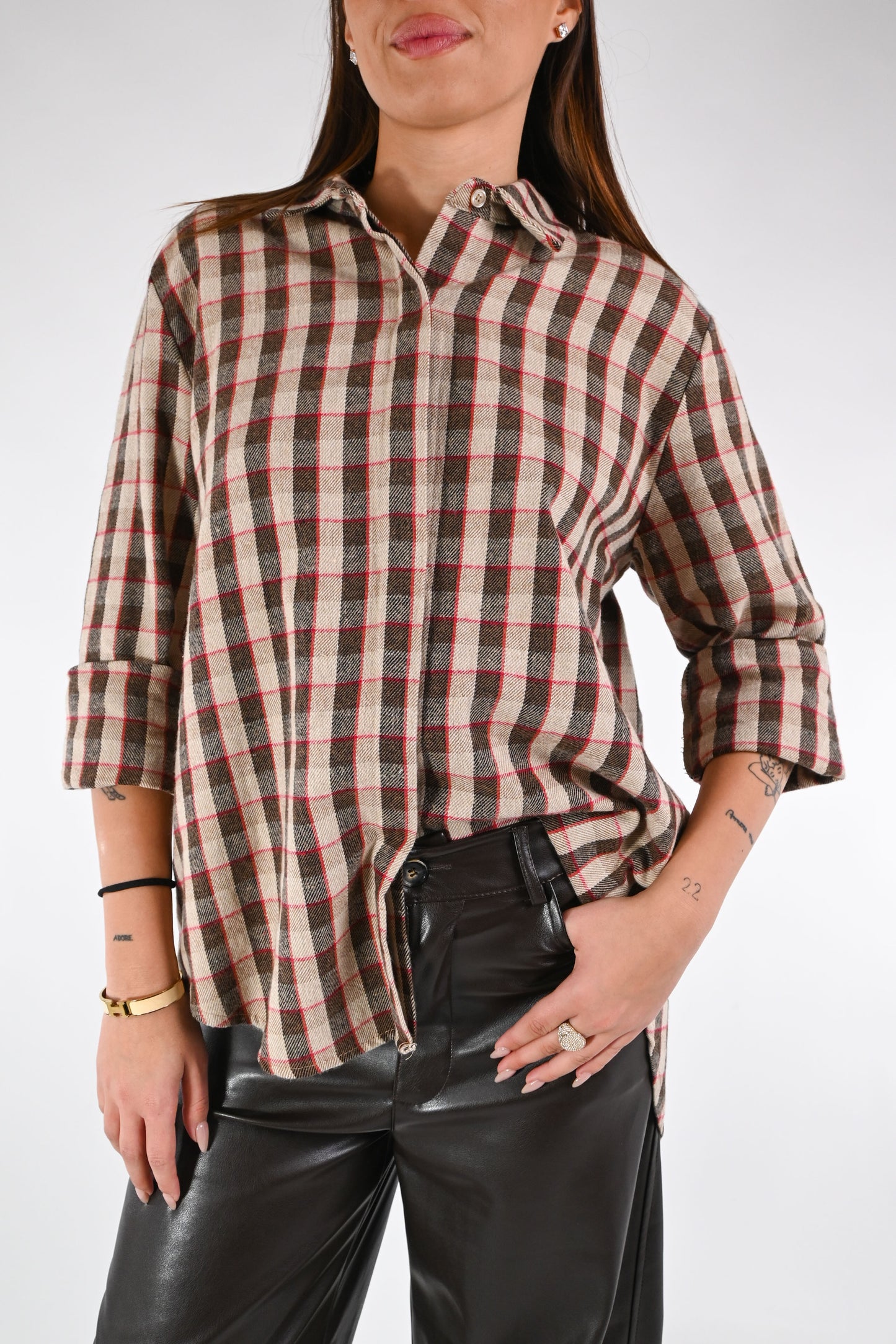 HAVEONE - CAMICIA FLANELLA QUADRETTI ART.CJK-P133 - CAMMELLO/MORO
