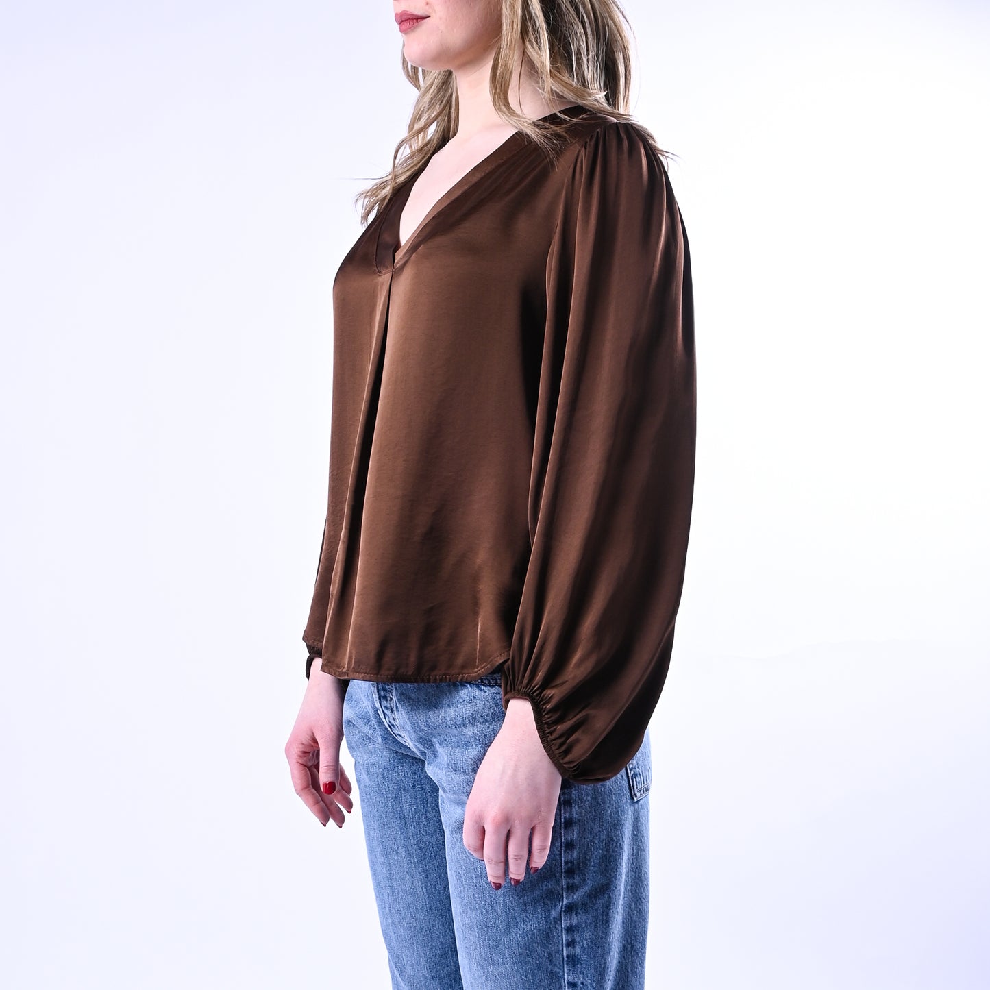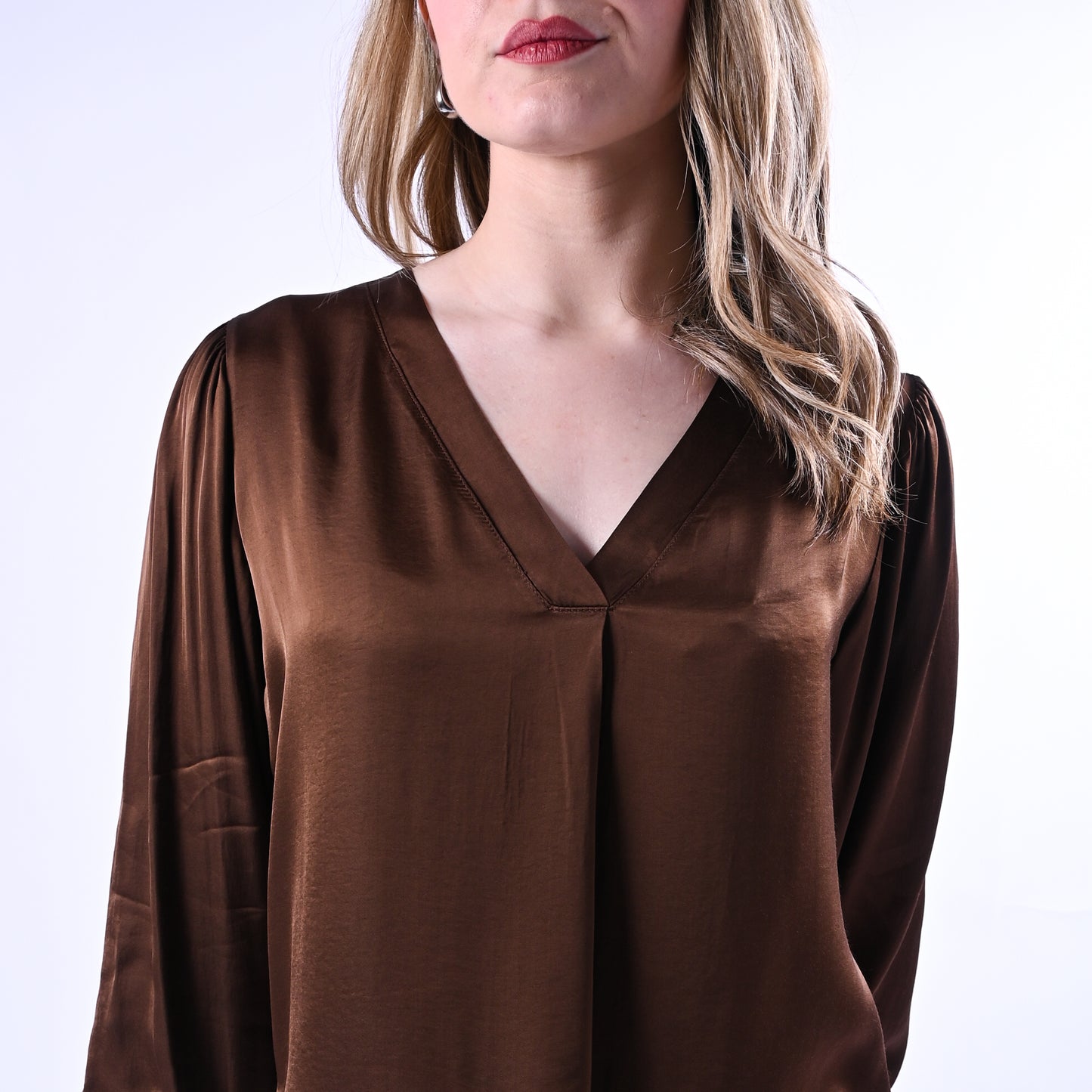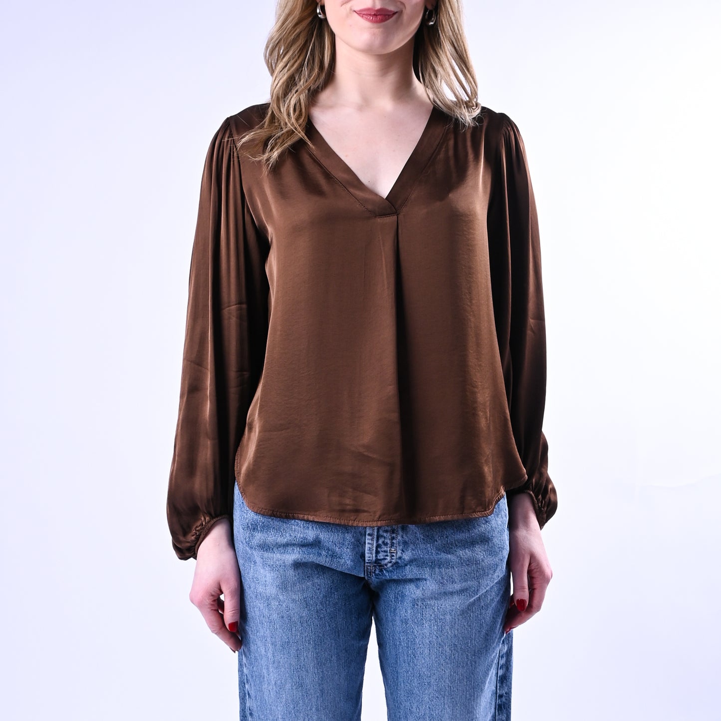 HAVEONE - BLUSA SCOLLO V IN VISCOSA ART.CWG-Q006 - MORO