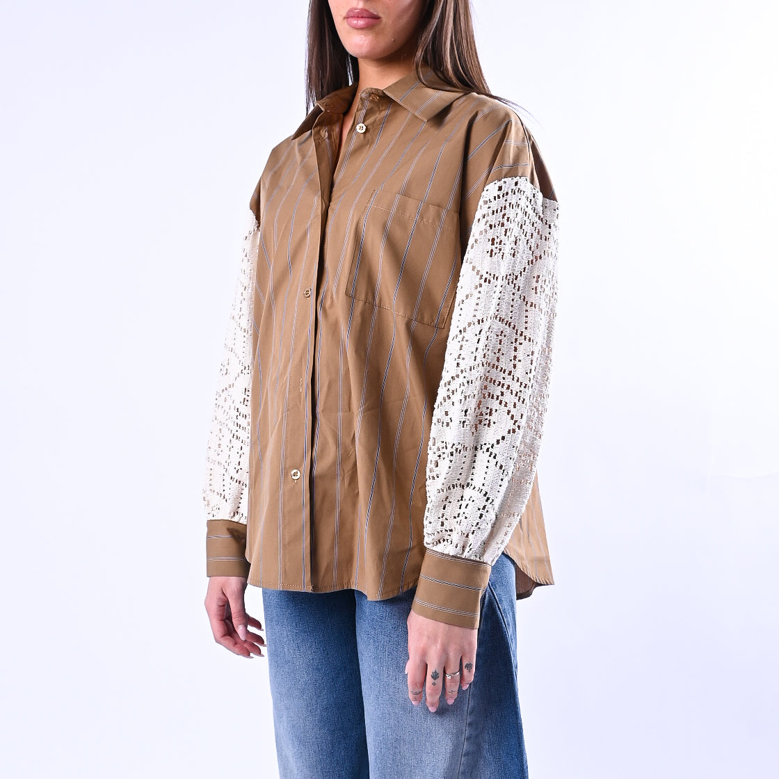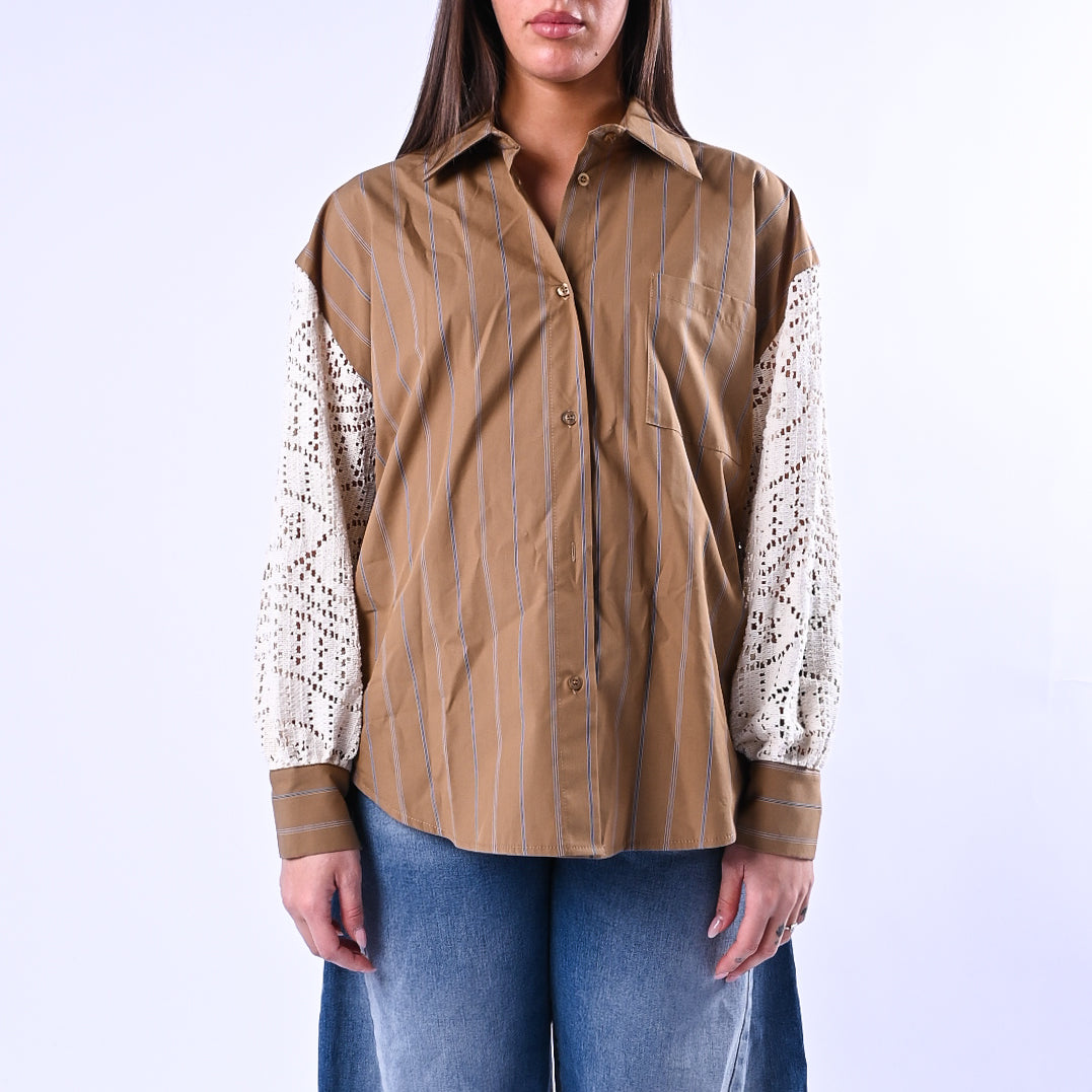 TENSIONE IN - CAMICIA CON INSERTI PIZZO ART.260059 - MORO/PANNA