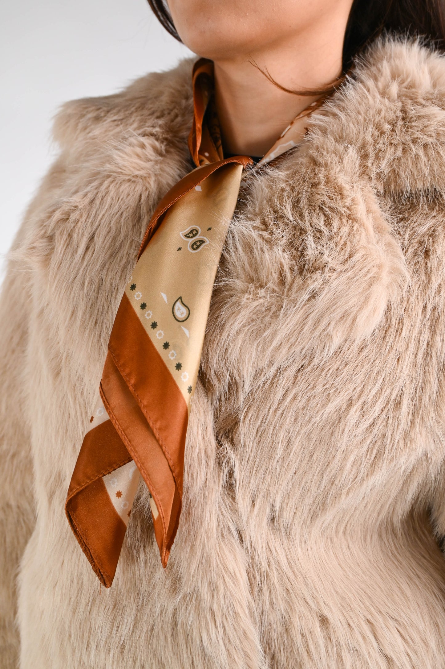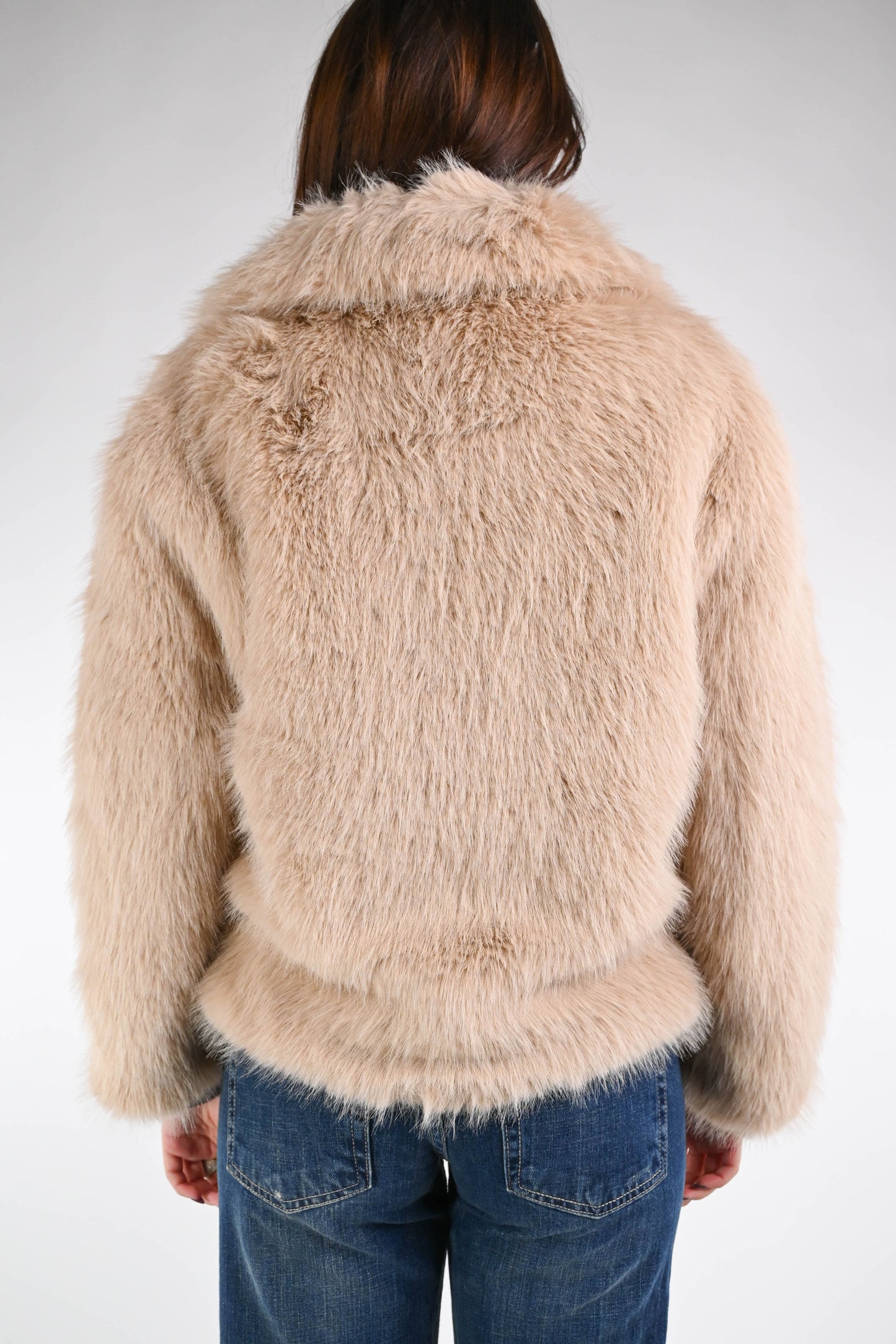 Ecopelliccia con collo a scialle, con tasche, foderata, colore Miele