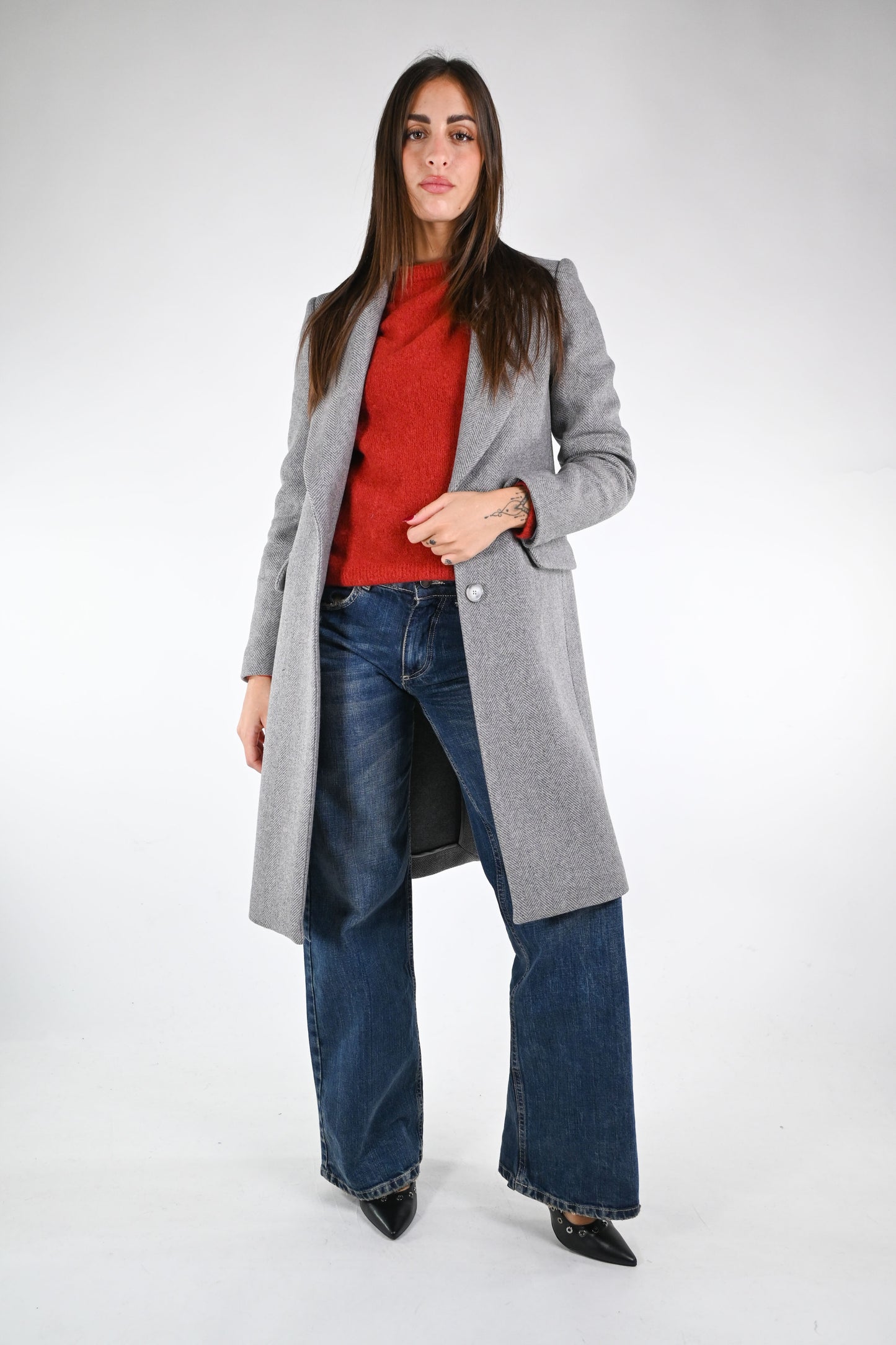 GOLD - CAPPOTTO DRITTO DUE BOTTONI IN LANA ART.86949/4231 - SPINATO GRIGIO