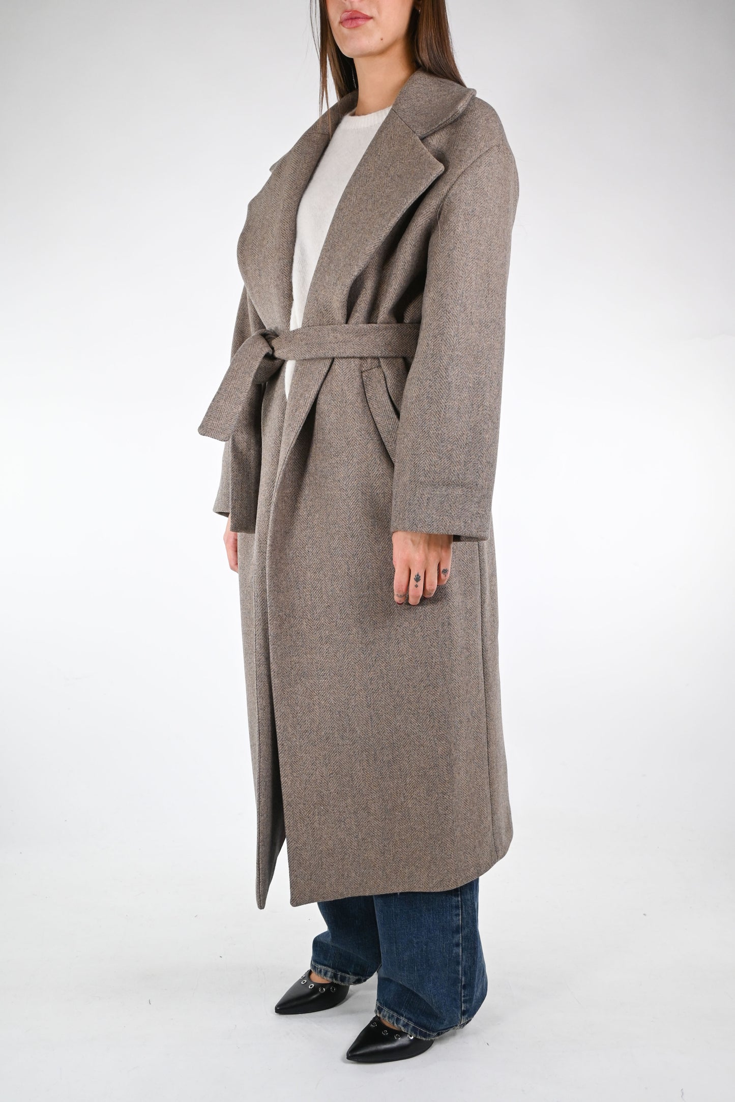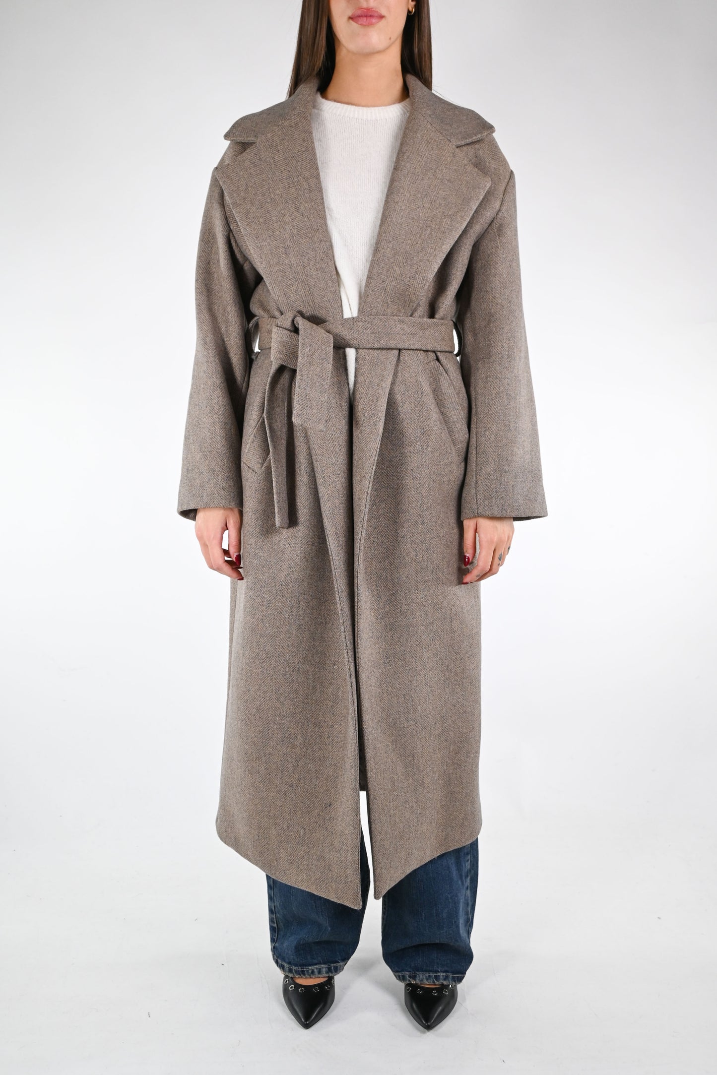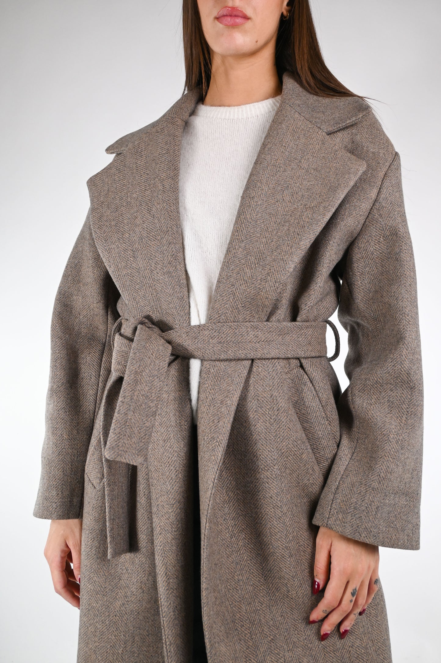 GOLD - CAPPOTTO VESTAGLIA IN LANA ART.87533/4231 - SPINATO BEIGE
