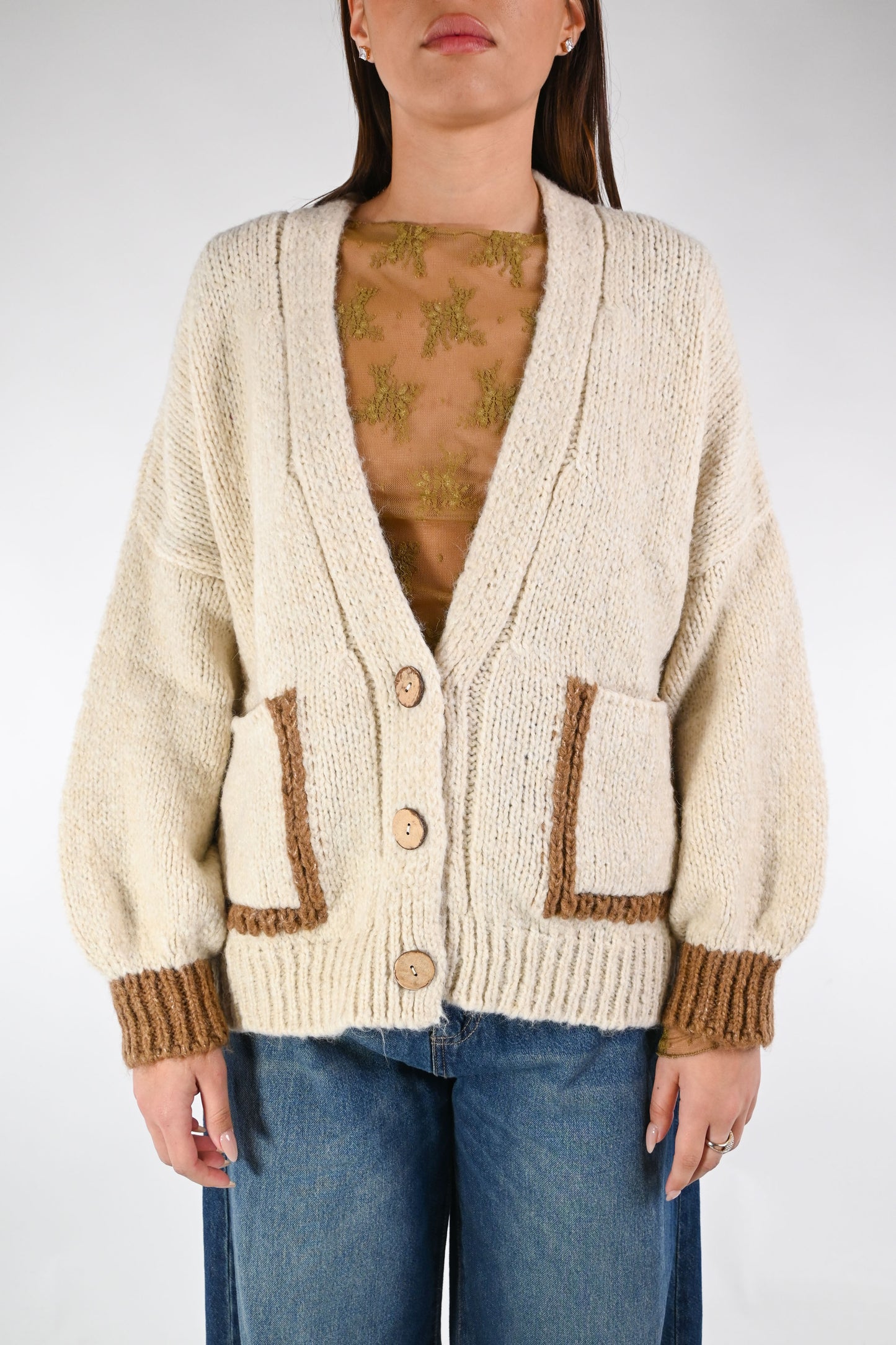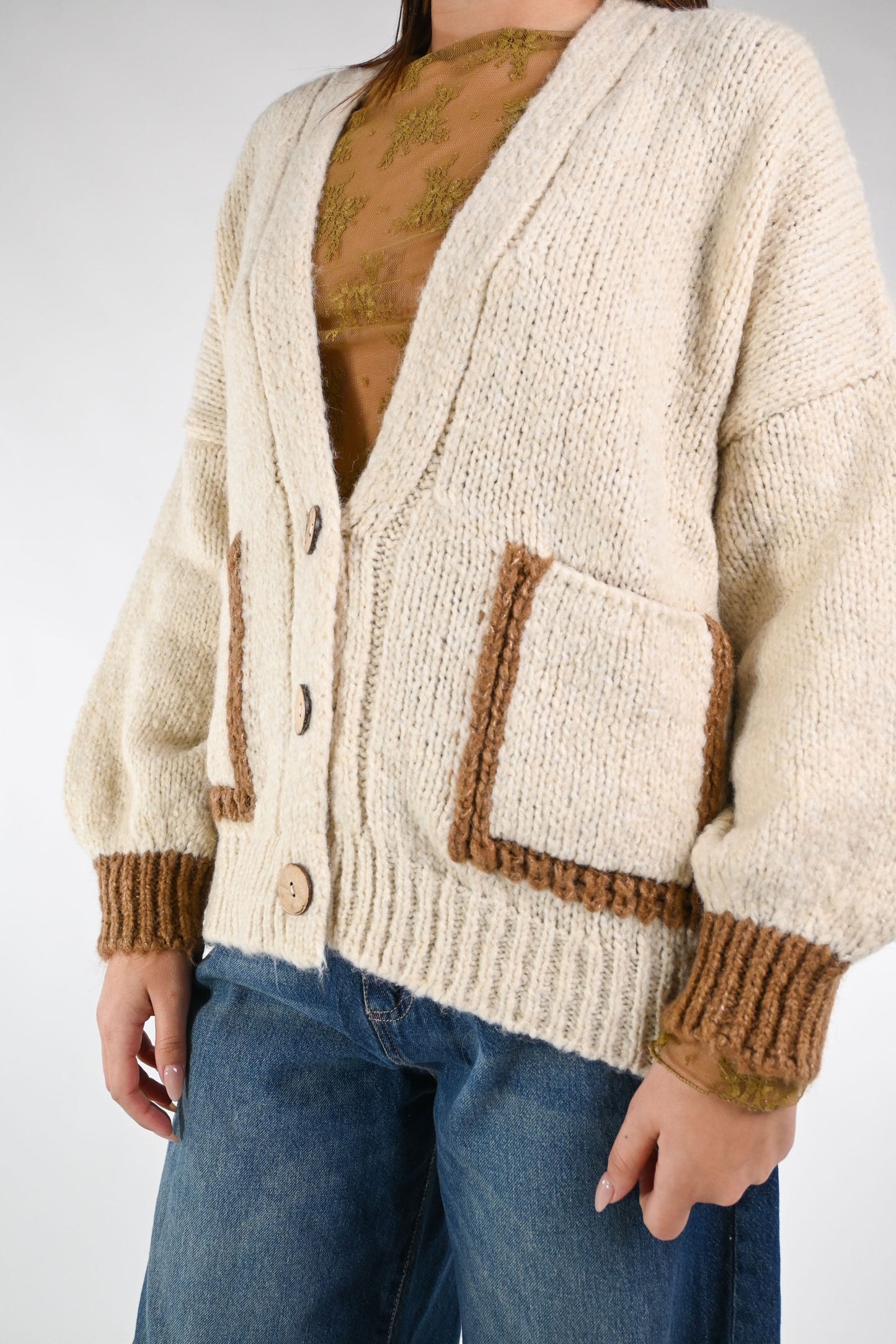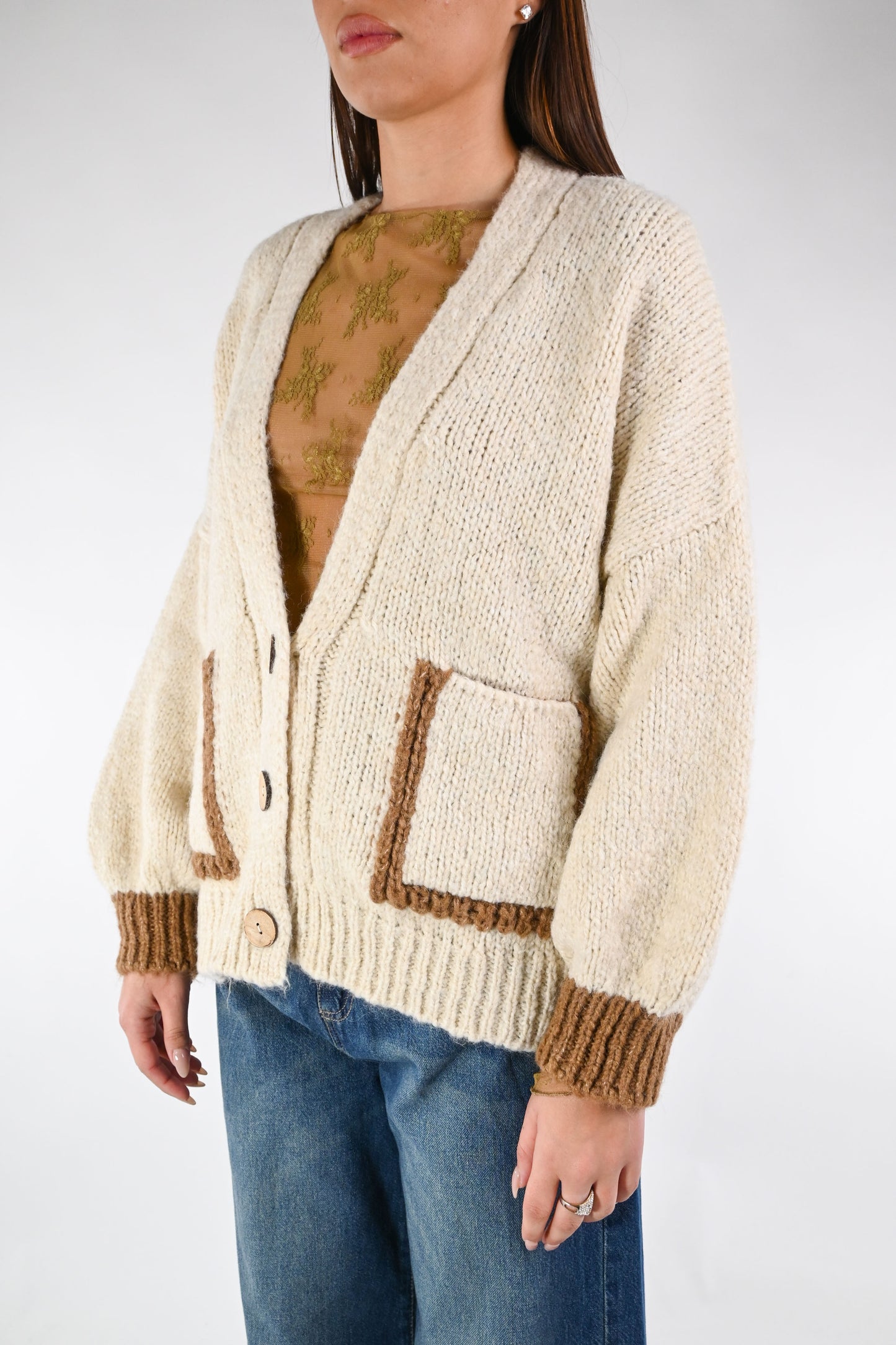 HAVEONE - CARDIGAN OVER CON TASCHE BICOLORE ART.JIT-P023 - CALCE
