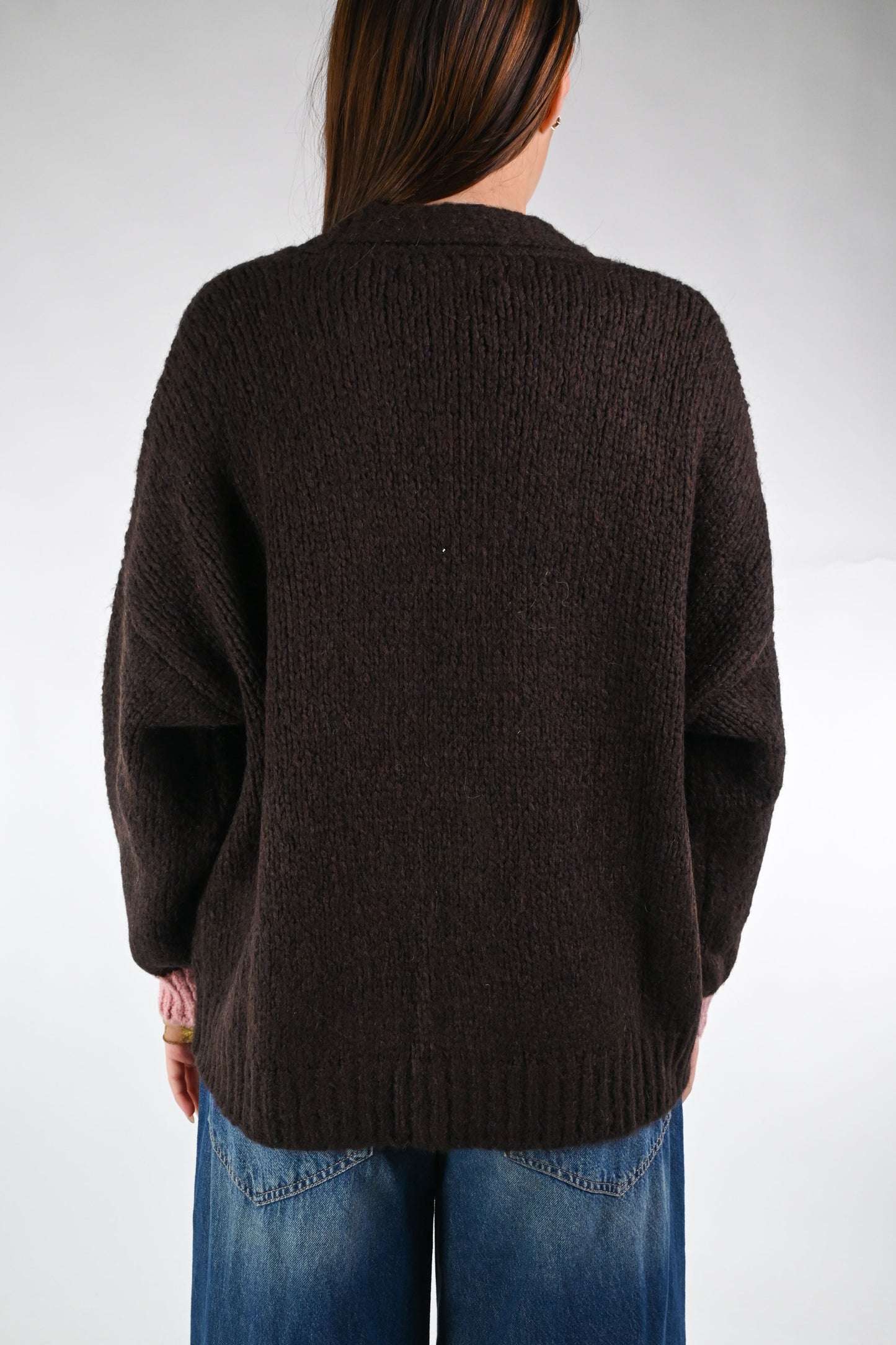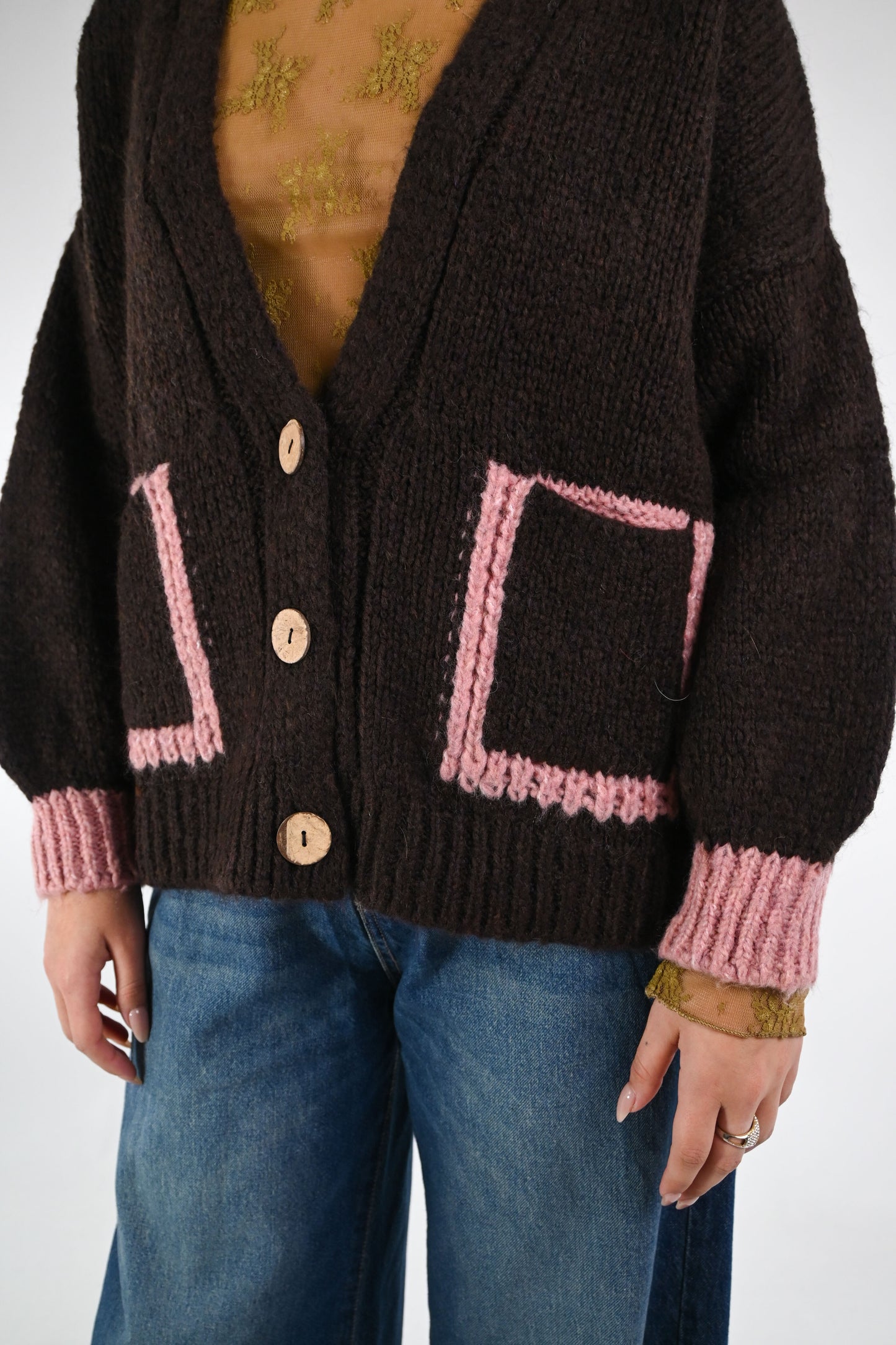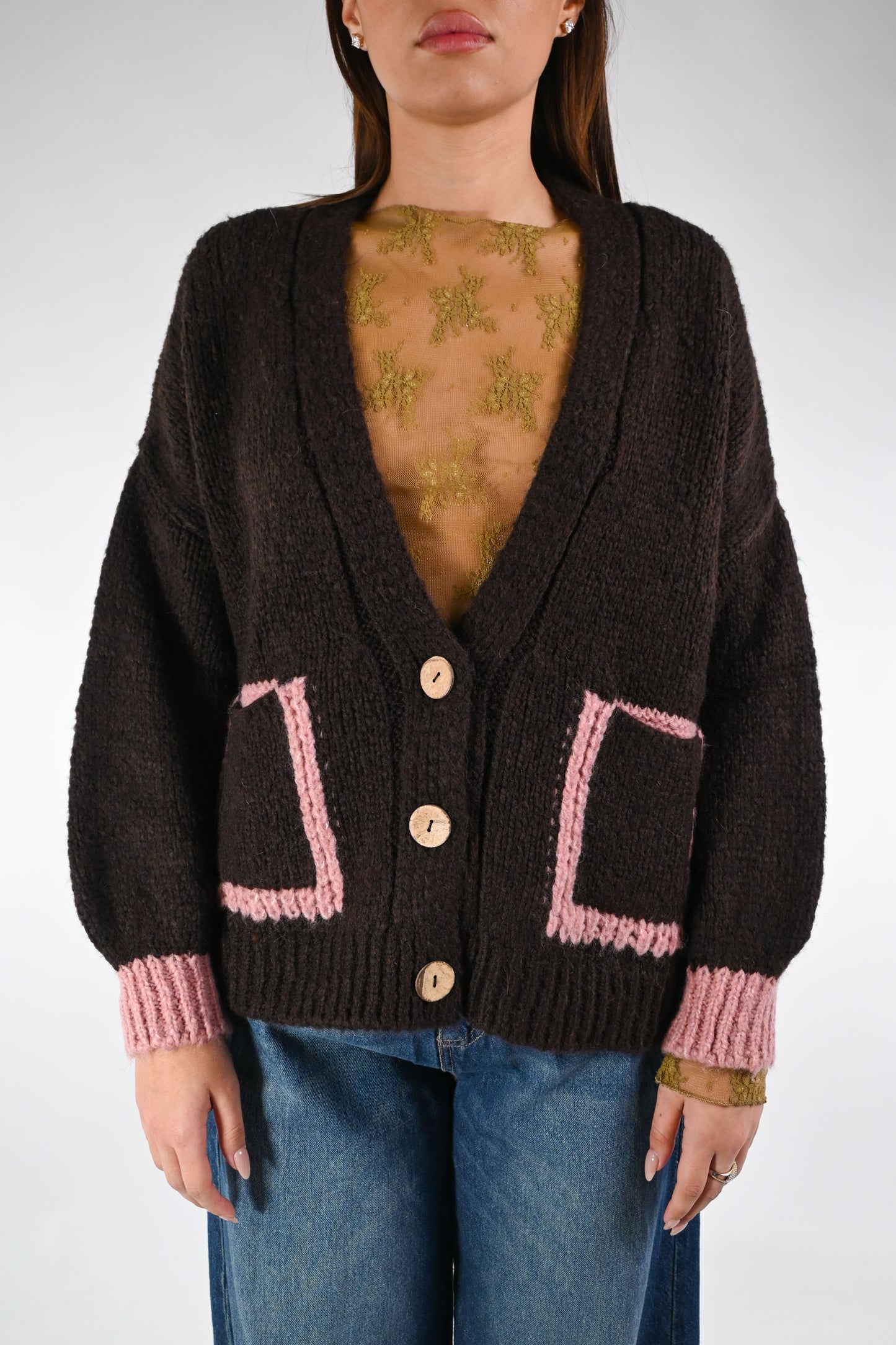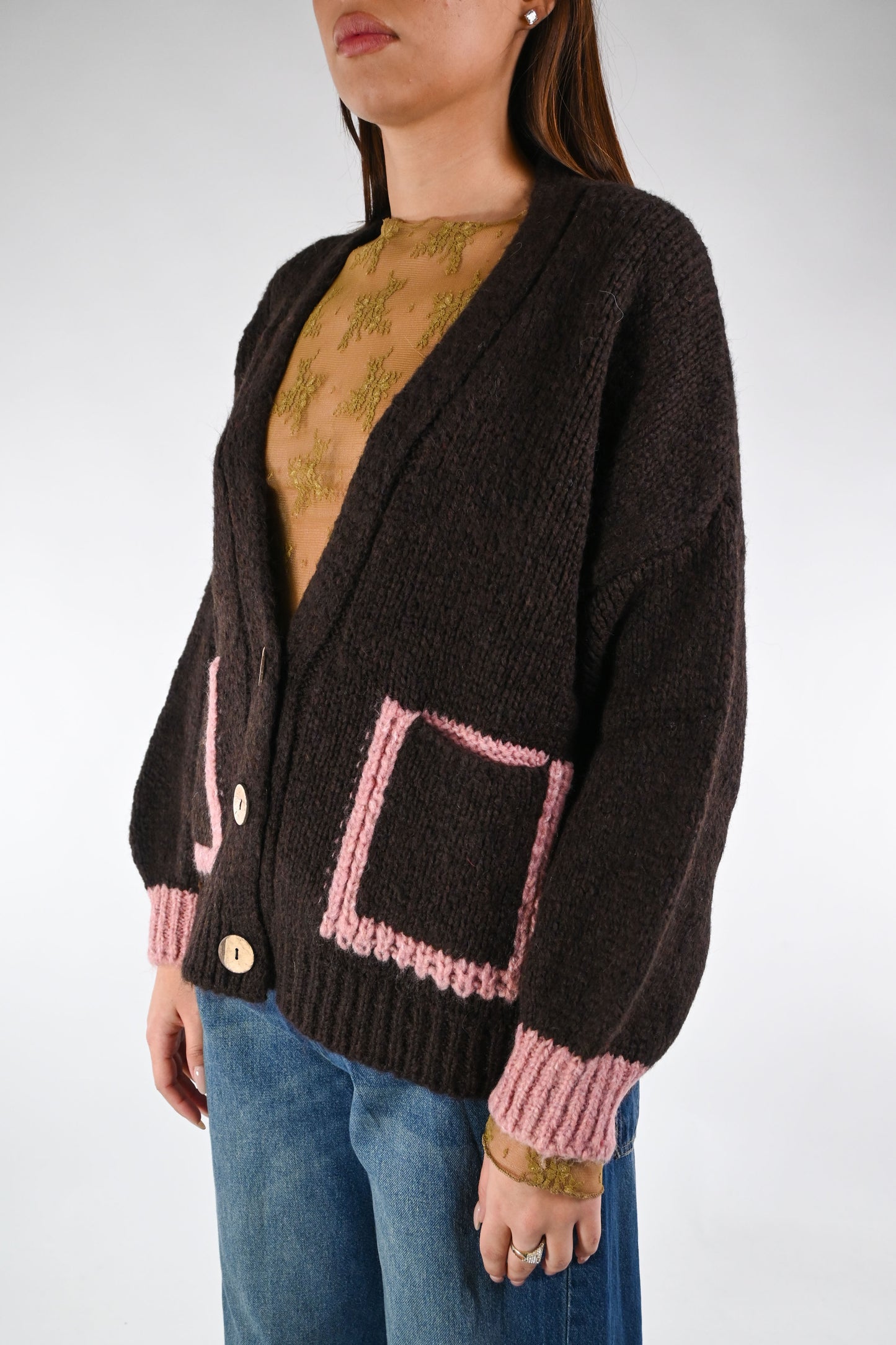 HAVEONE - CARDIGAN OVER CON TASCHE BICOLORE ART.JIT-P023 - MORO