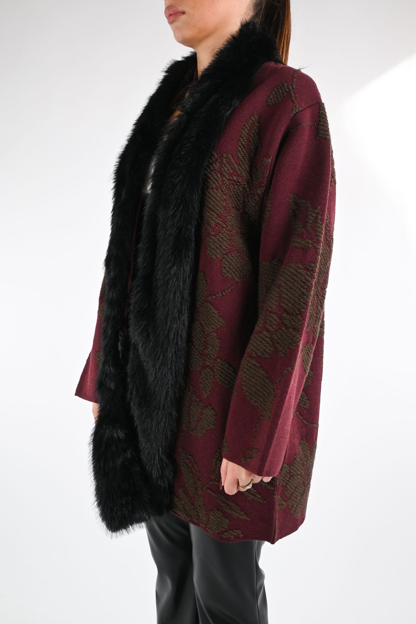 MOTEL - CARDIGAN JAQUARD COLLO ECOPELLICCIA ART.G89A400 - BORDEAUX/MORO