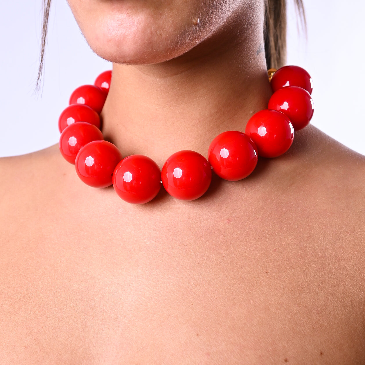 B LOVE - COLLANA GRANDE PERLE ART.BUPRGR - ROSSO