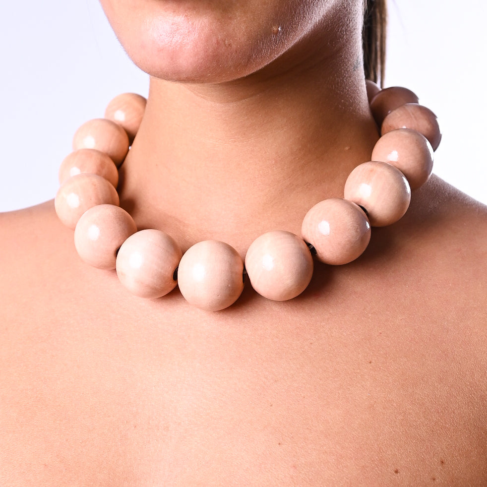 B LOVE - COLLANA GRANDI SFERE LEGNO ART.BULGGR - BEIGE