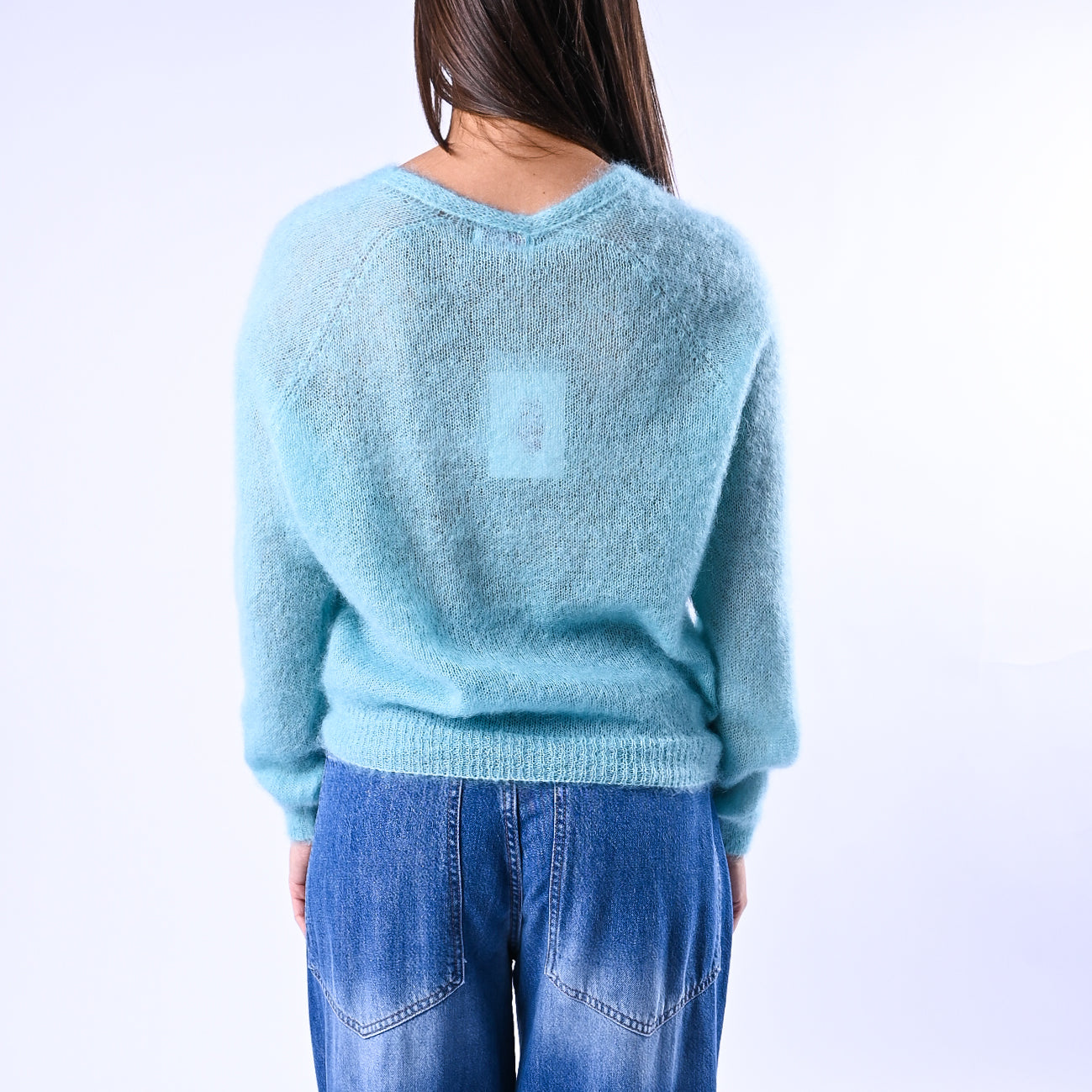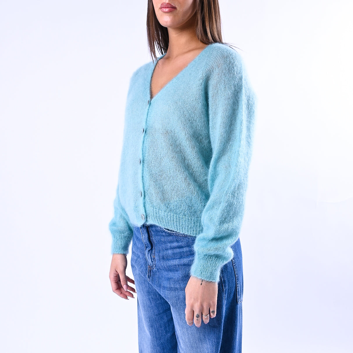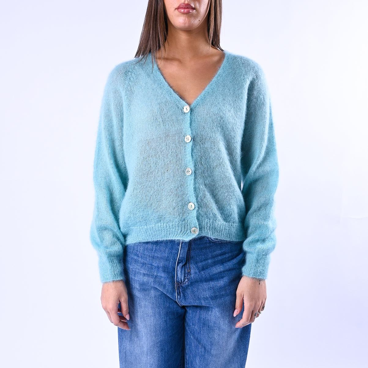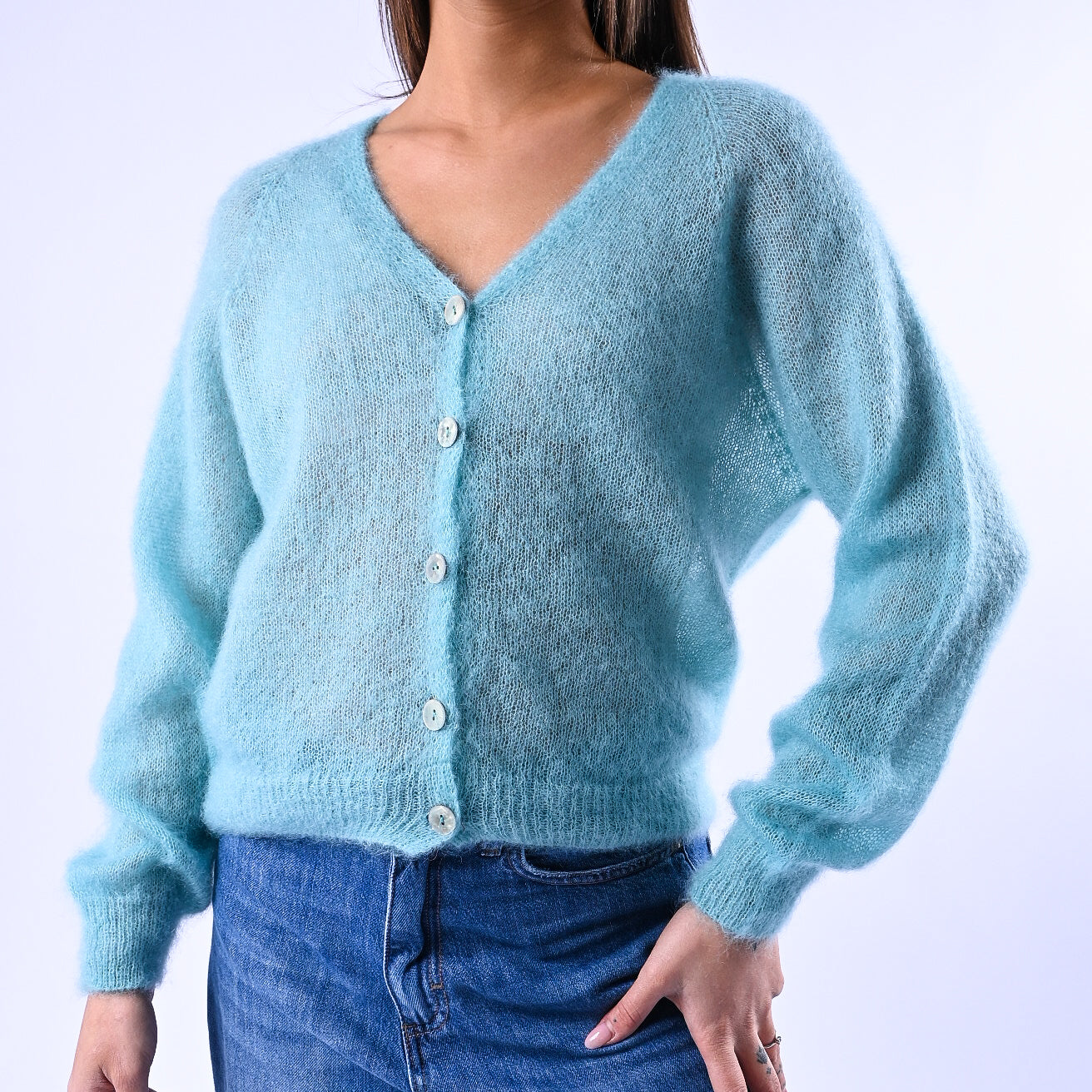 Prezzo normale €39,95Cardigan kid mohair extralight, con bottoni madre perla, colore acqua