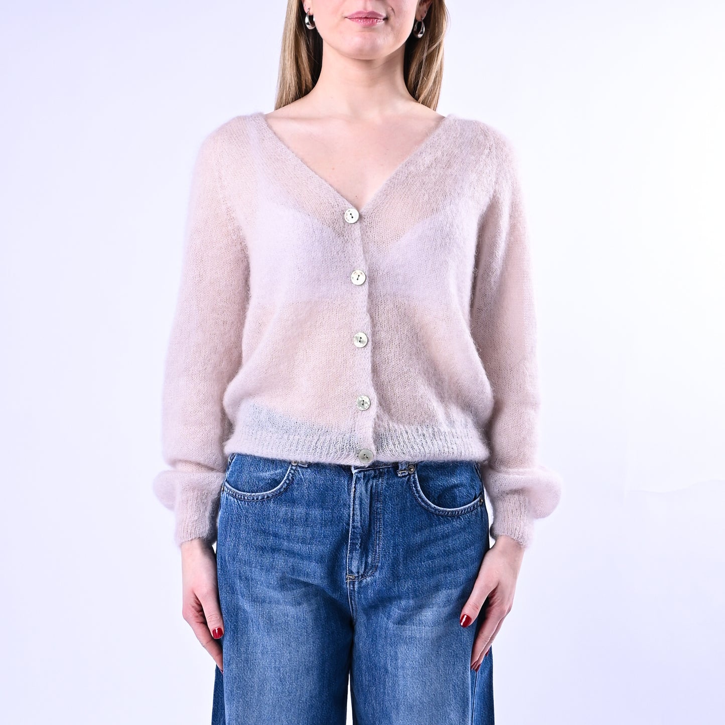 Prezzo normale €39,95Cardigan kid mohair extralight, con bottoni madre perla, colore beige