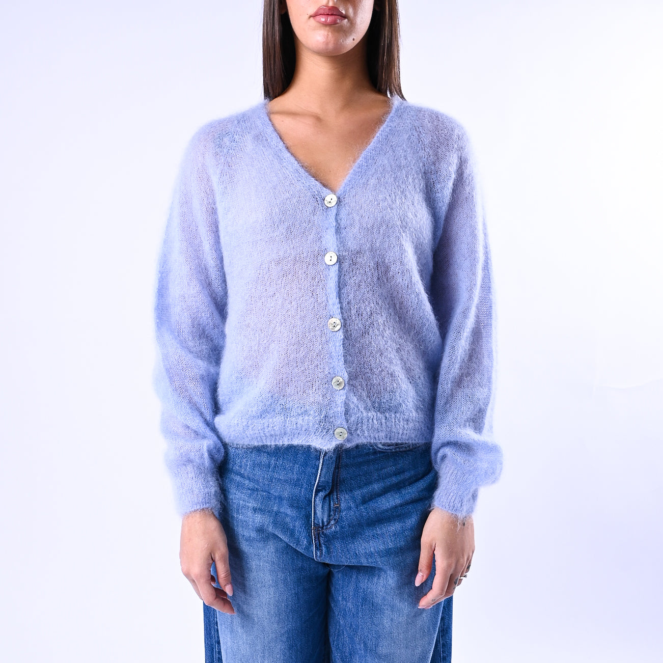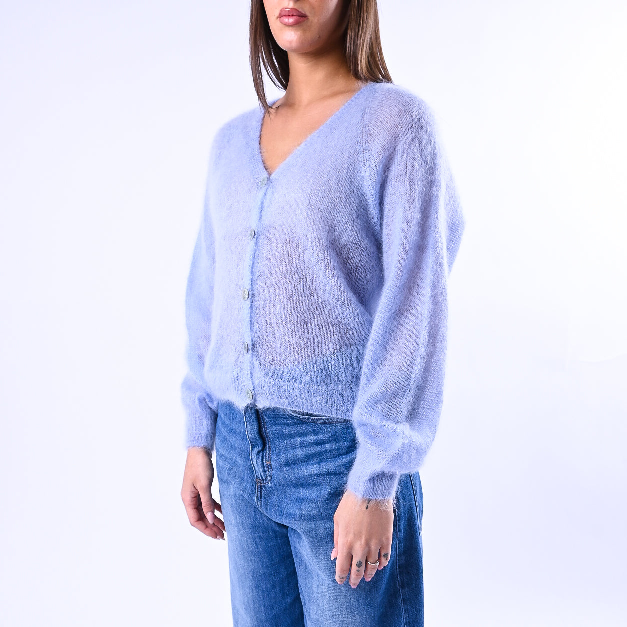 Prezzo normale €39,95Cardigan kid mohair extralight, con bottoni madre perla, colore celeste