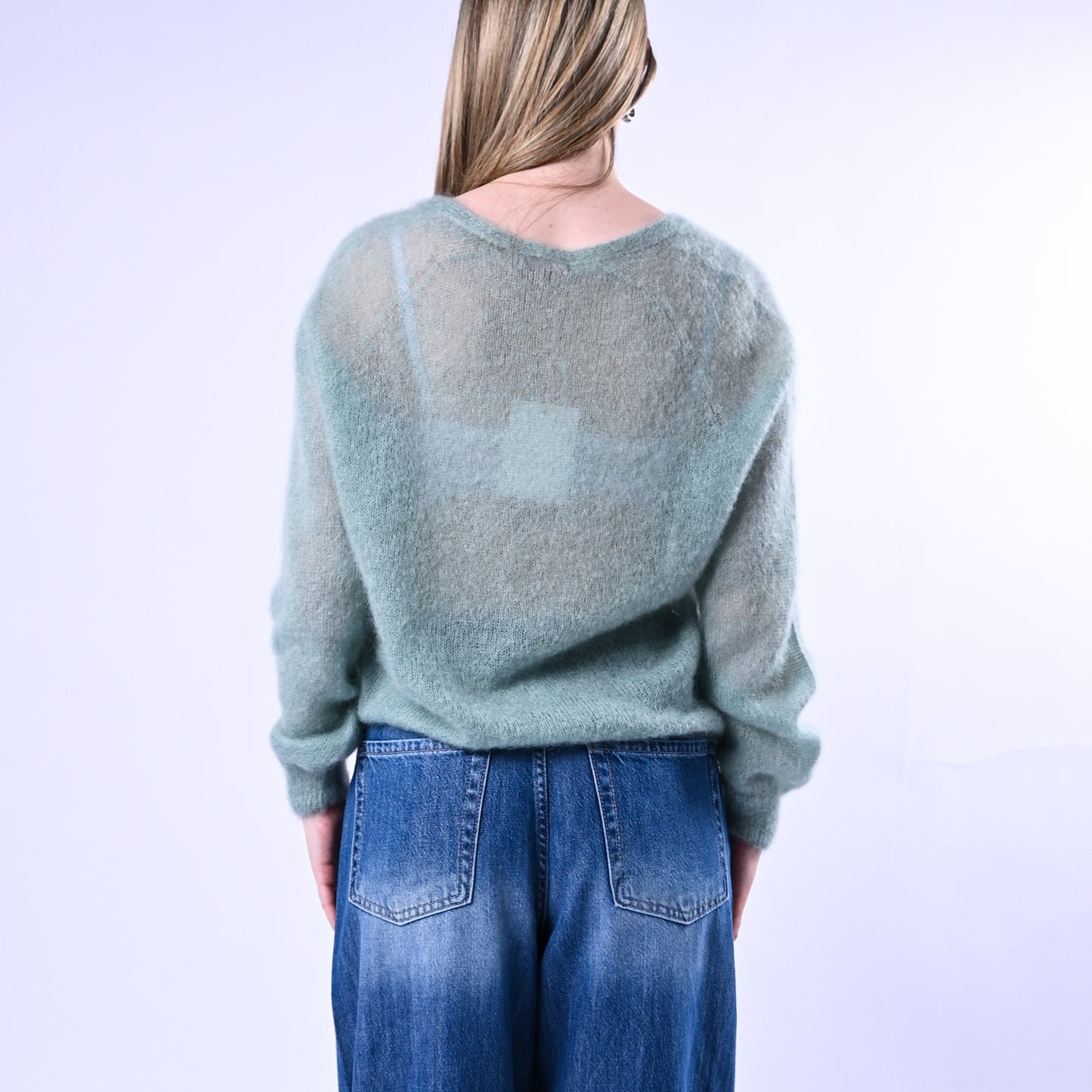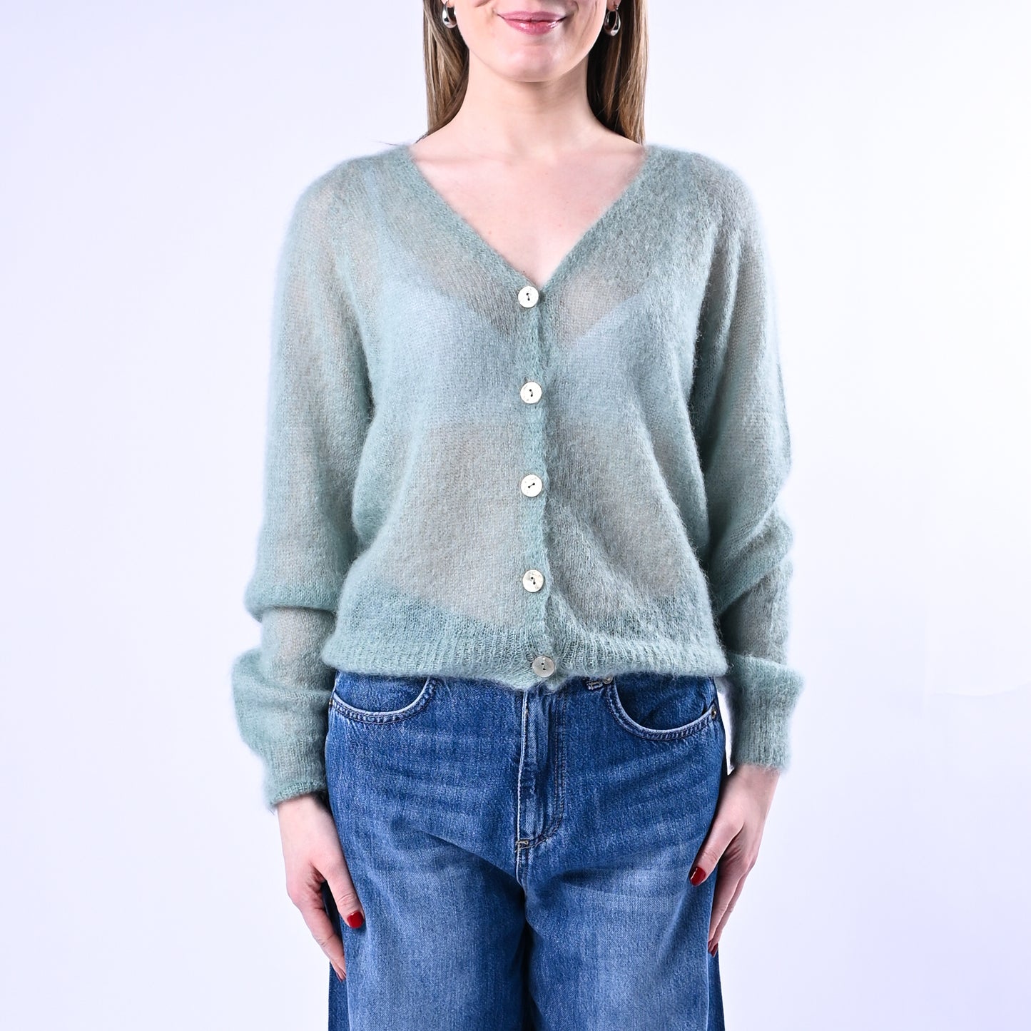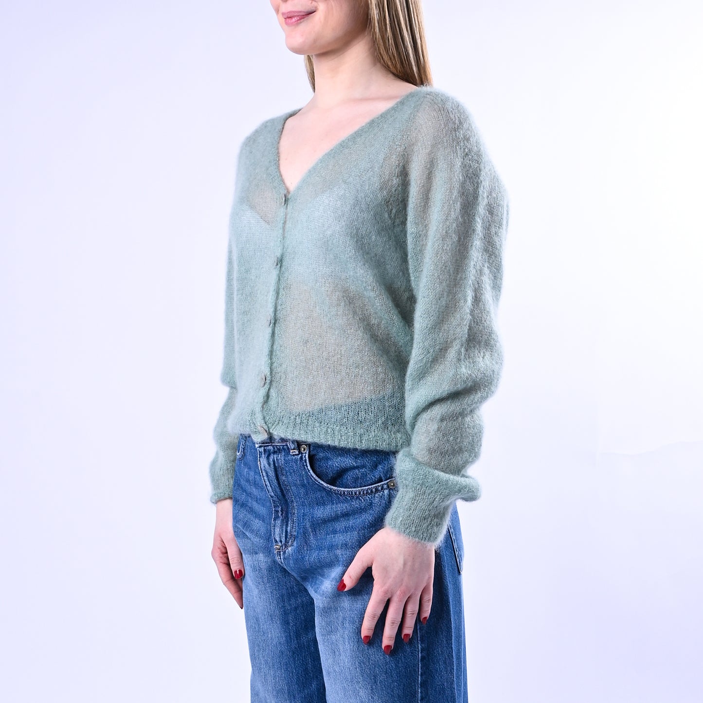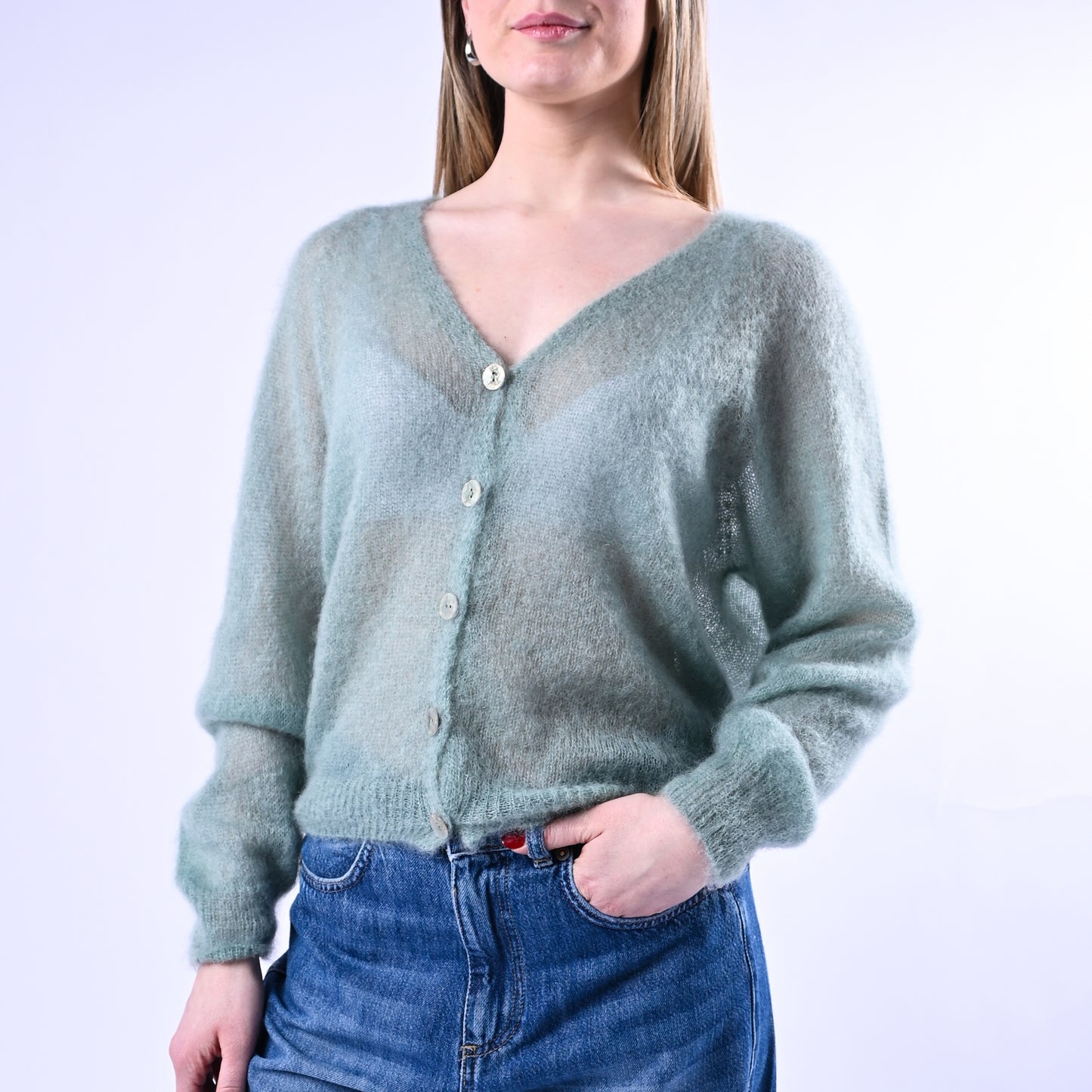 Prezzo normale €39,95Cardigan kid mohair extralight, con bottoni madre perla, colore salvia