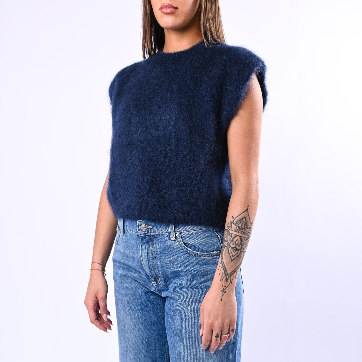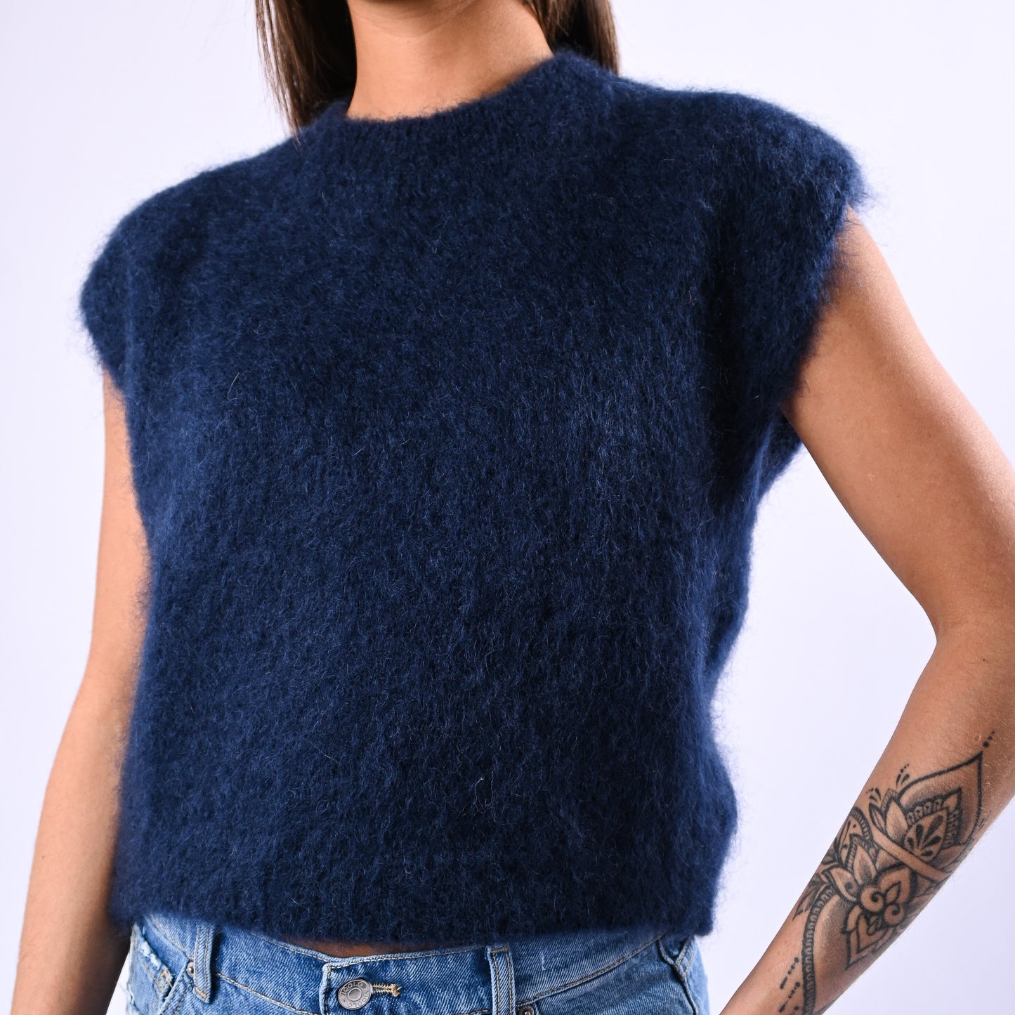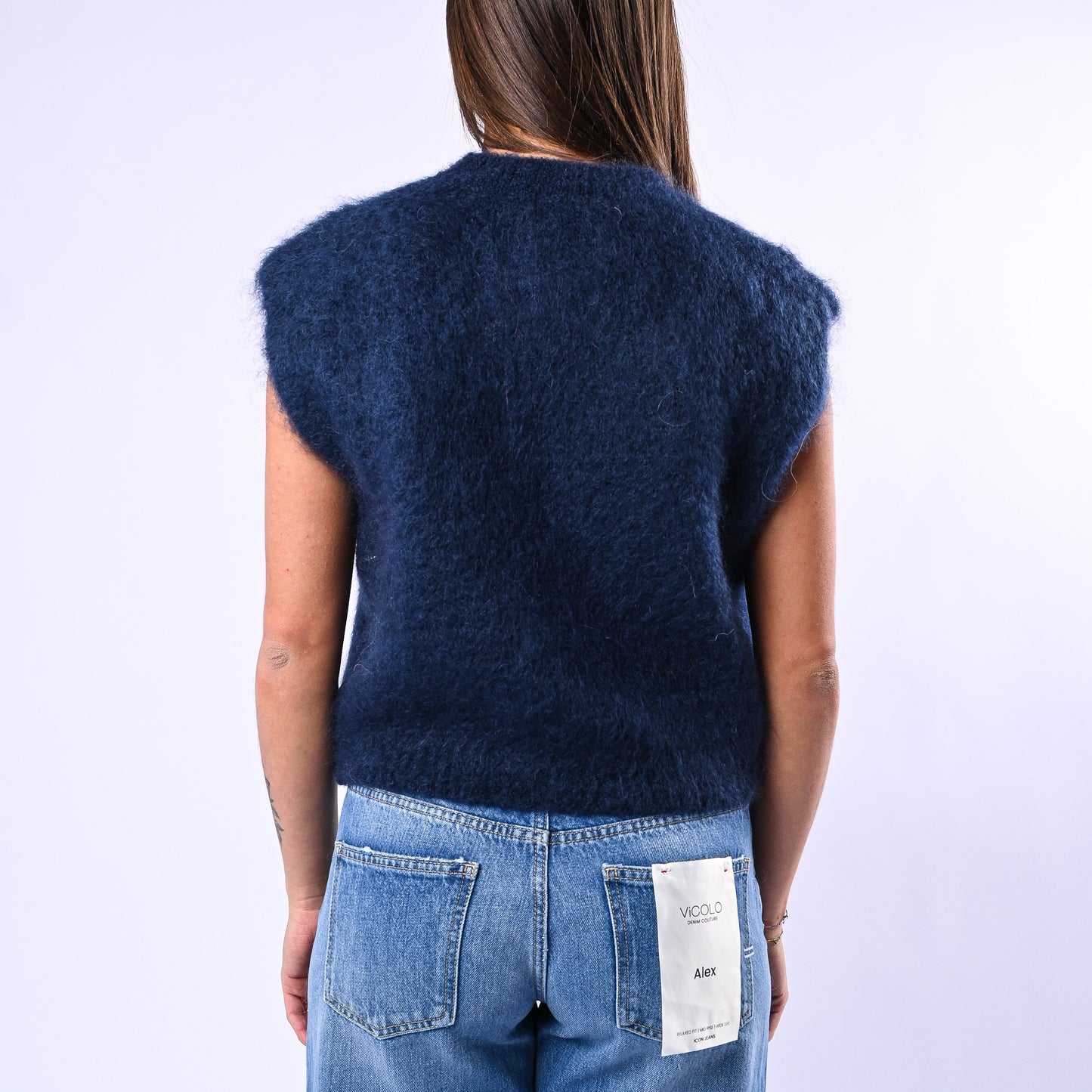 Prezzo normale €34,95Gilet over modello Chanel in kid mohair, a scatola, girocollo, color blu
