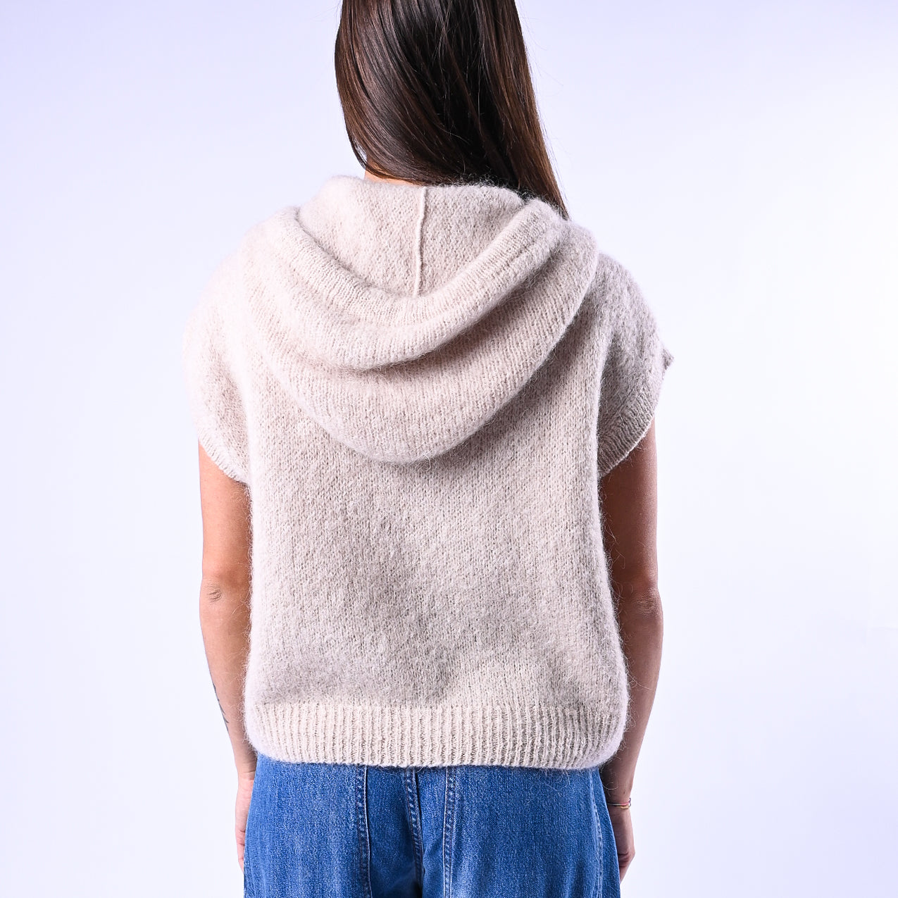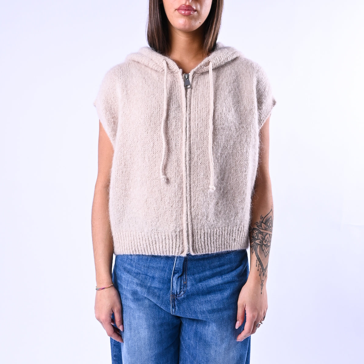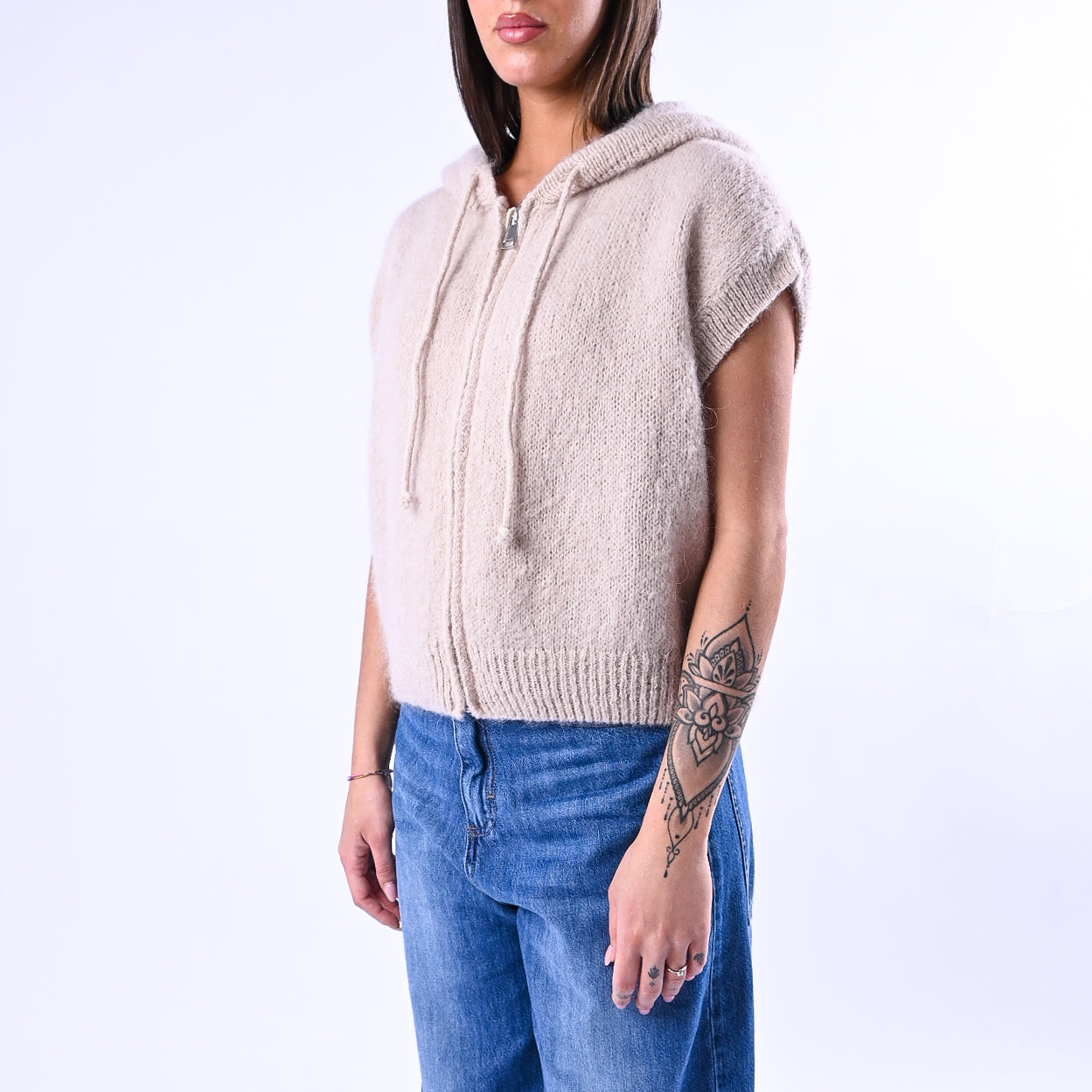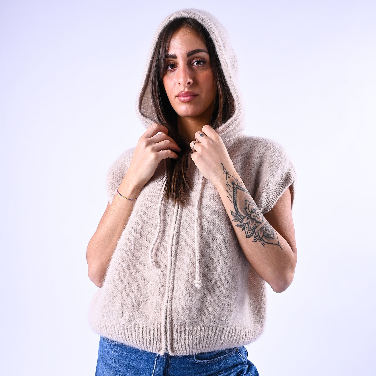 B LOVE - GILET SPORTY CON CAPUCCIO IN MOHAIR ART.8827 - BEIGE