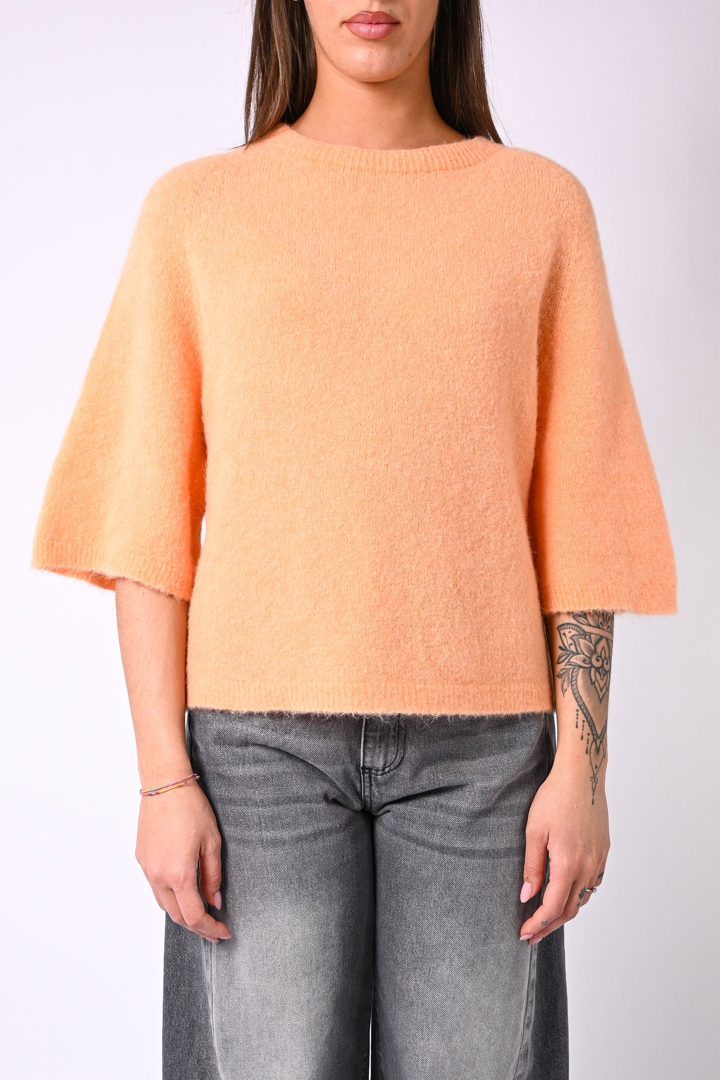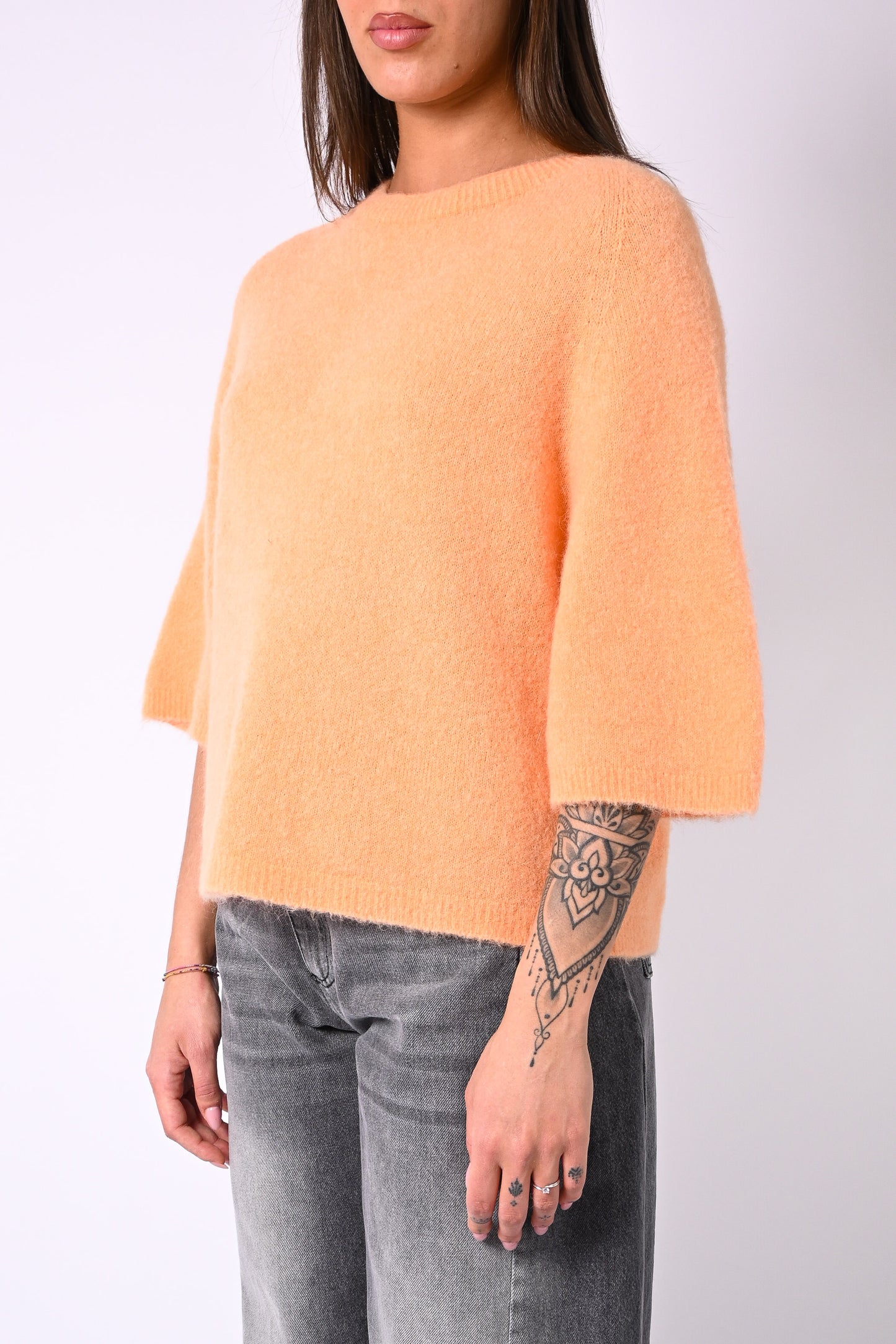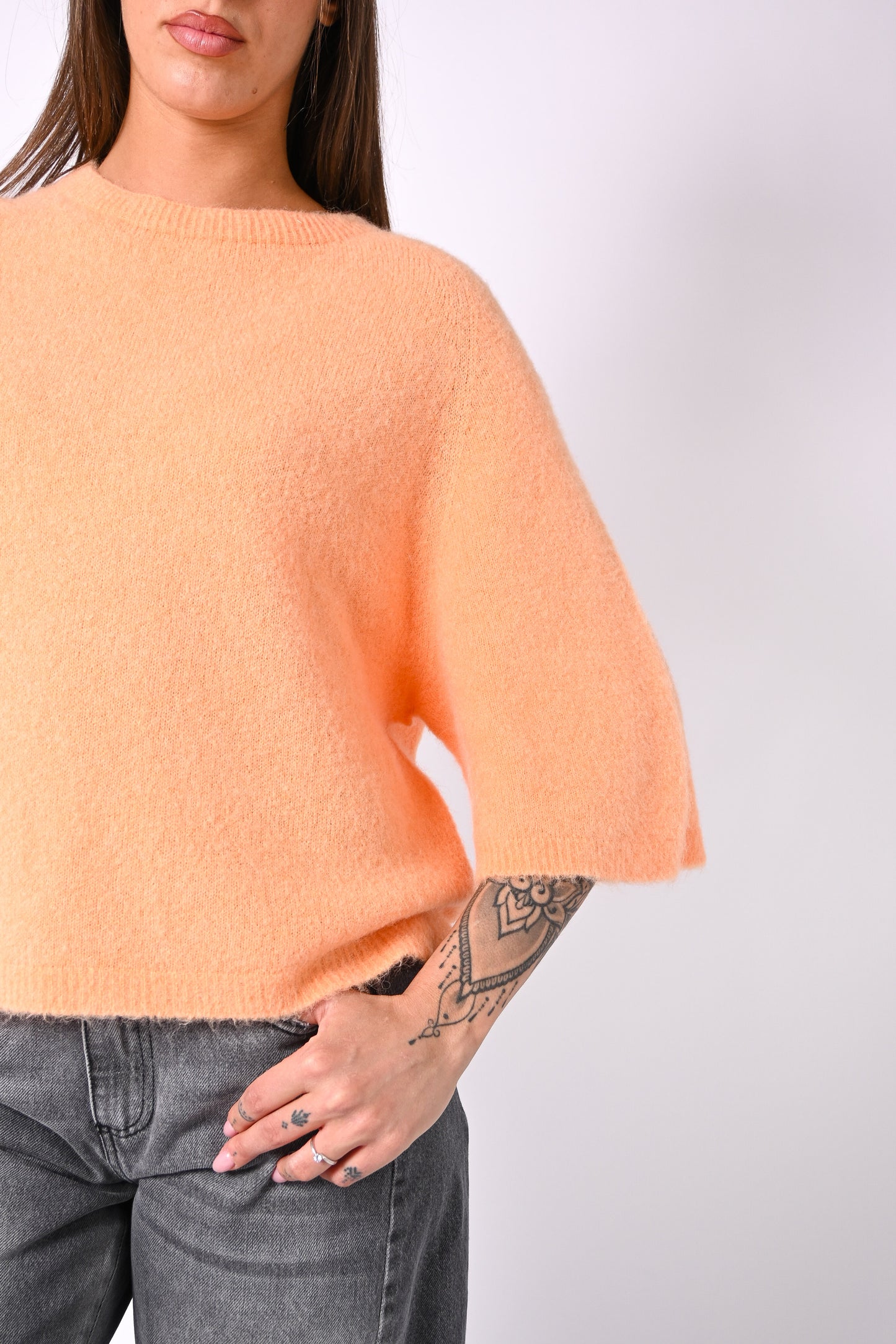 Prezzo normale €24,95Maglia over baby alpaca, manica ampia 3/4, girocollo, colore Arancione