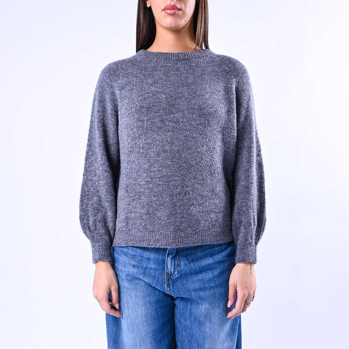 B LOVE - MAGLIA BABY ALPACA MANICA LUNGA ART.SOFT/1013 - GRIGIO MELANGE