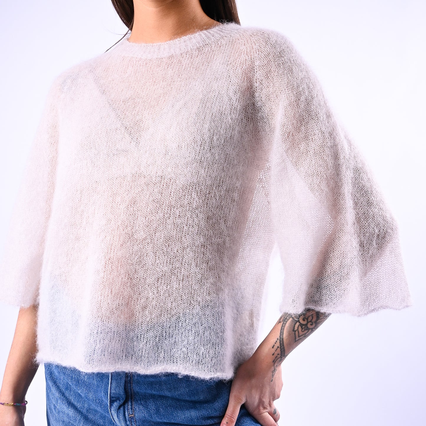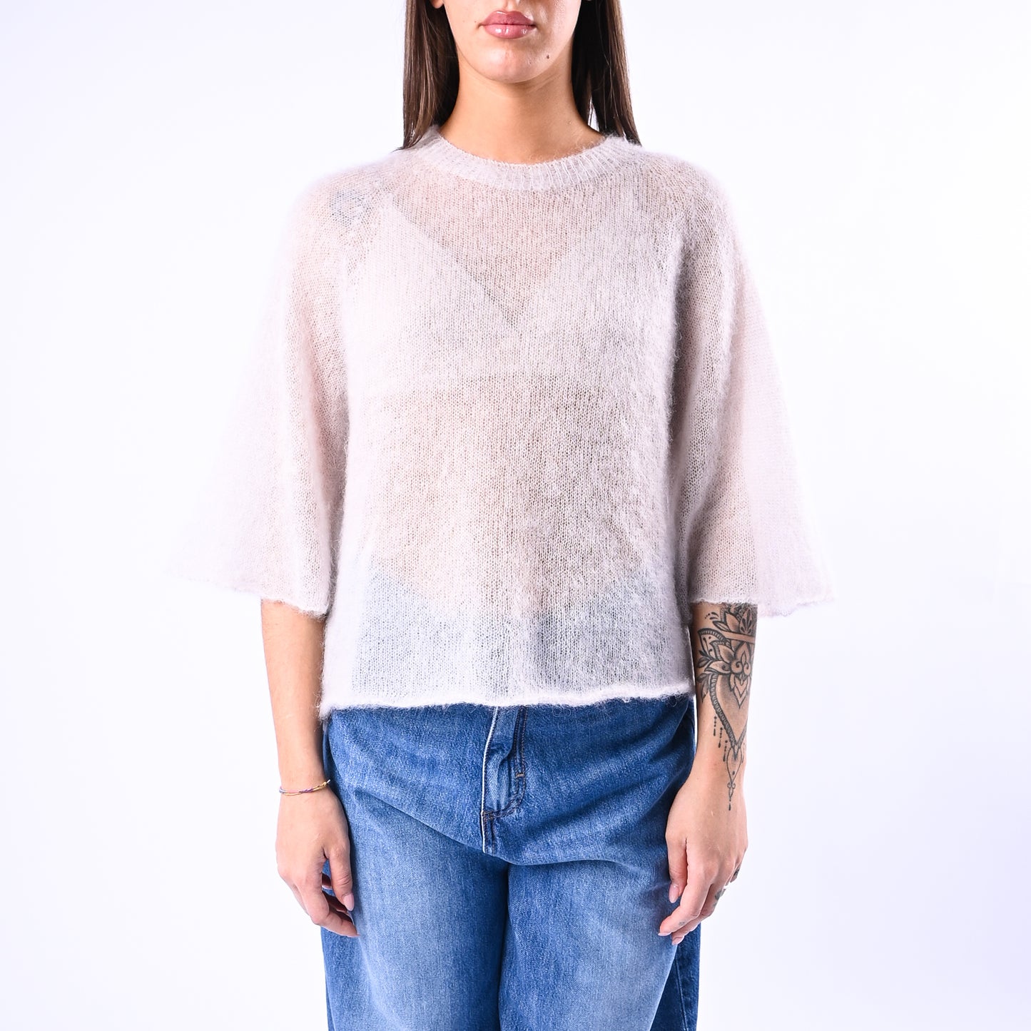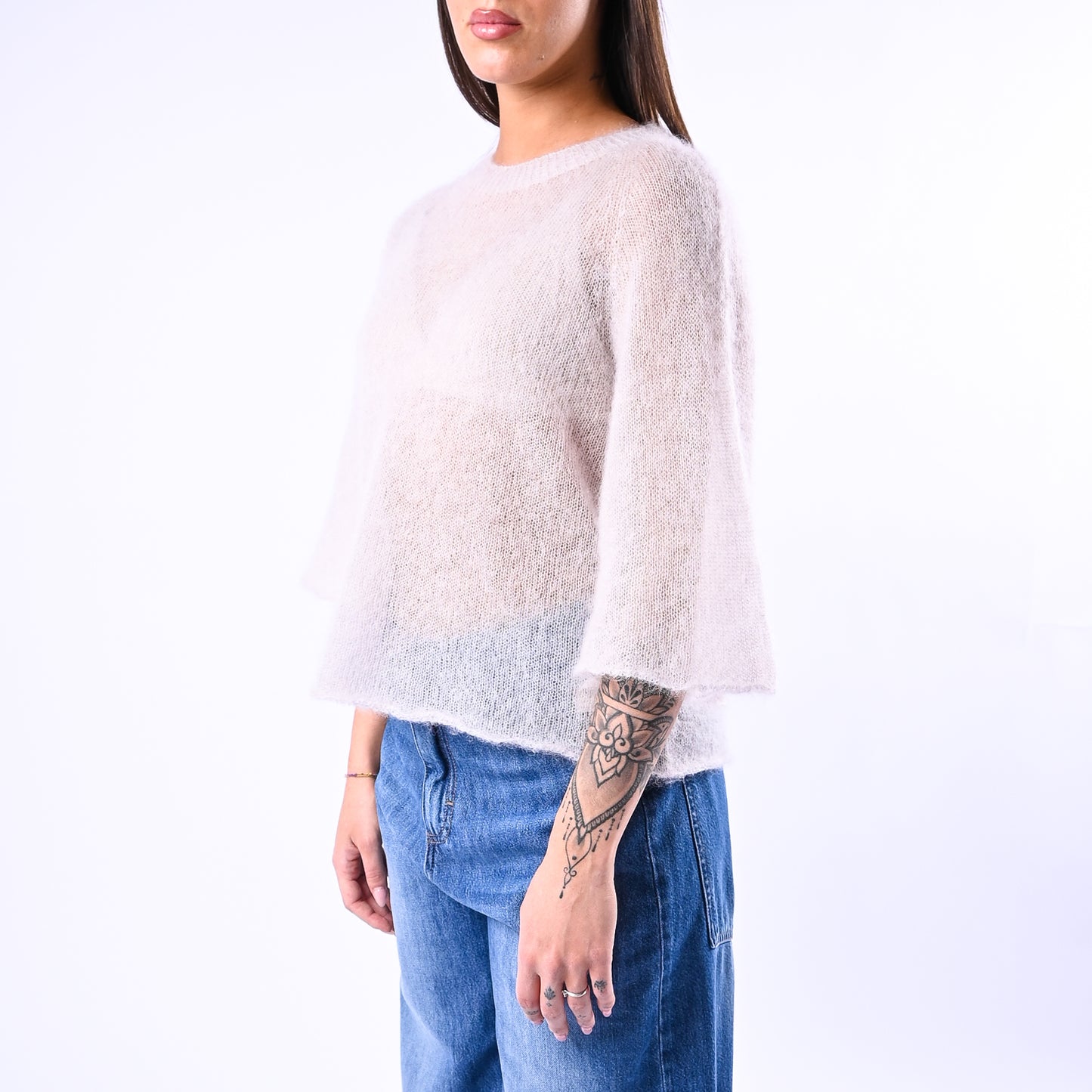 Prezzo normale €34,95Maglia kid mohair extralight, girocollo, con manica larga a gomito, colore beige