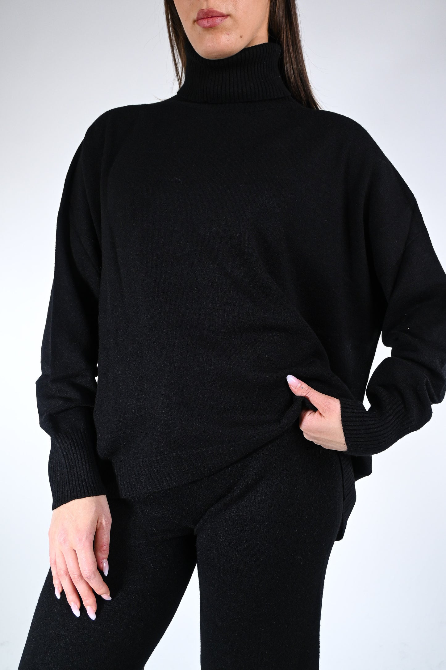 HAVEONE - COMPLETO MAGLIA DOLCEVITA+PANTALONE ART.HNC-P027 - NERO