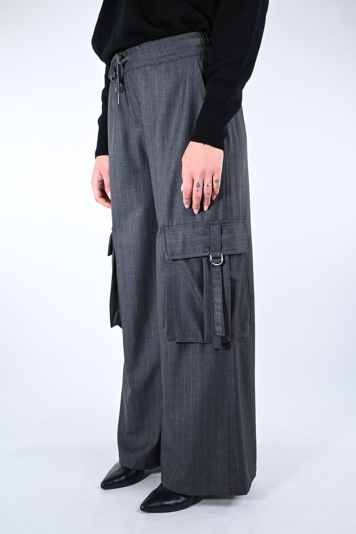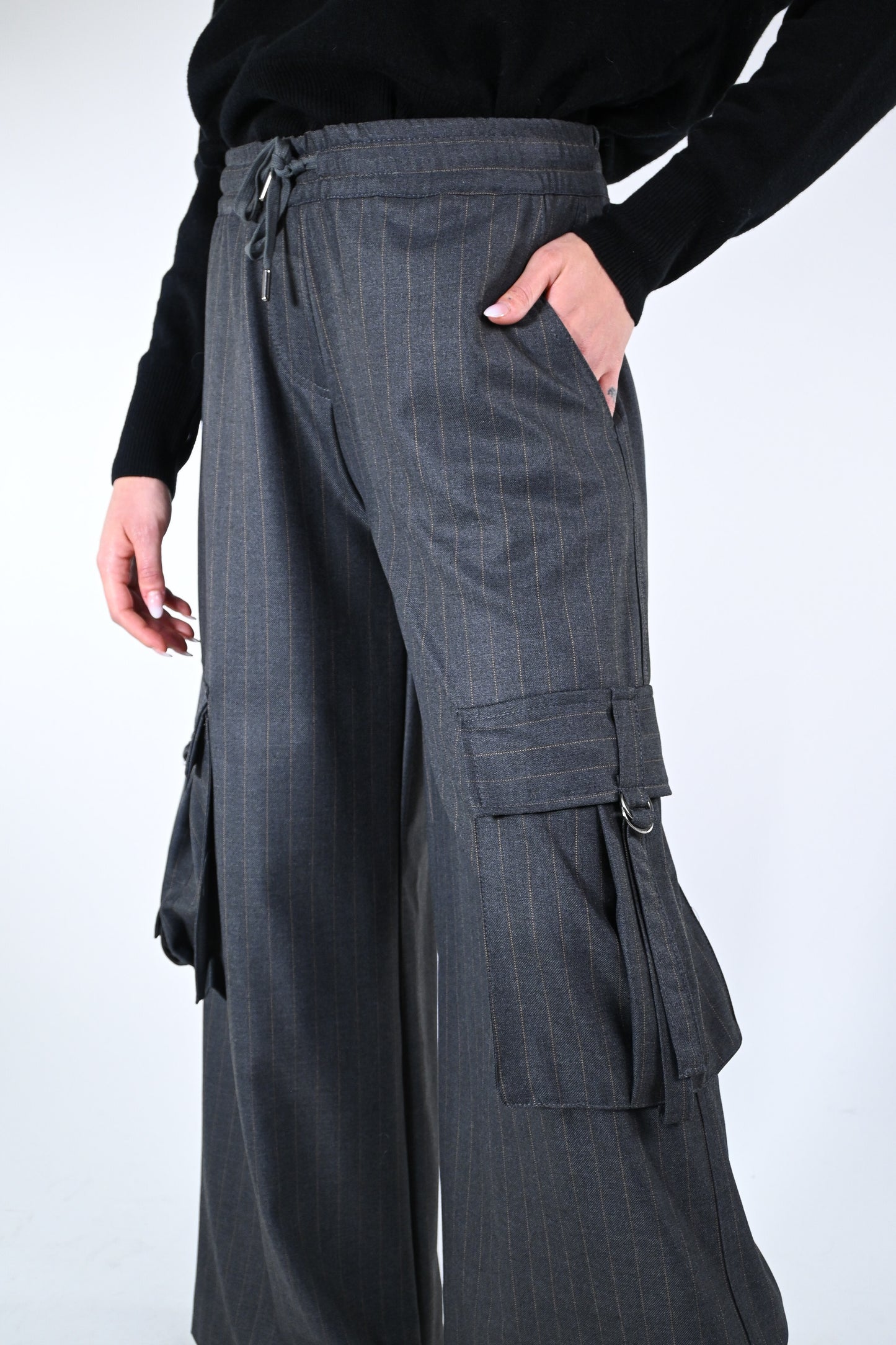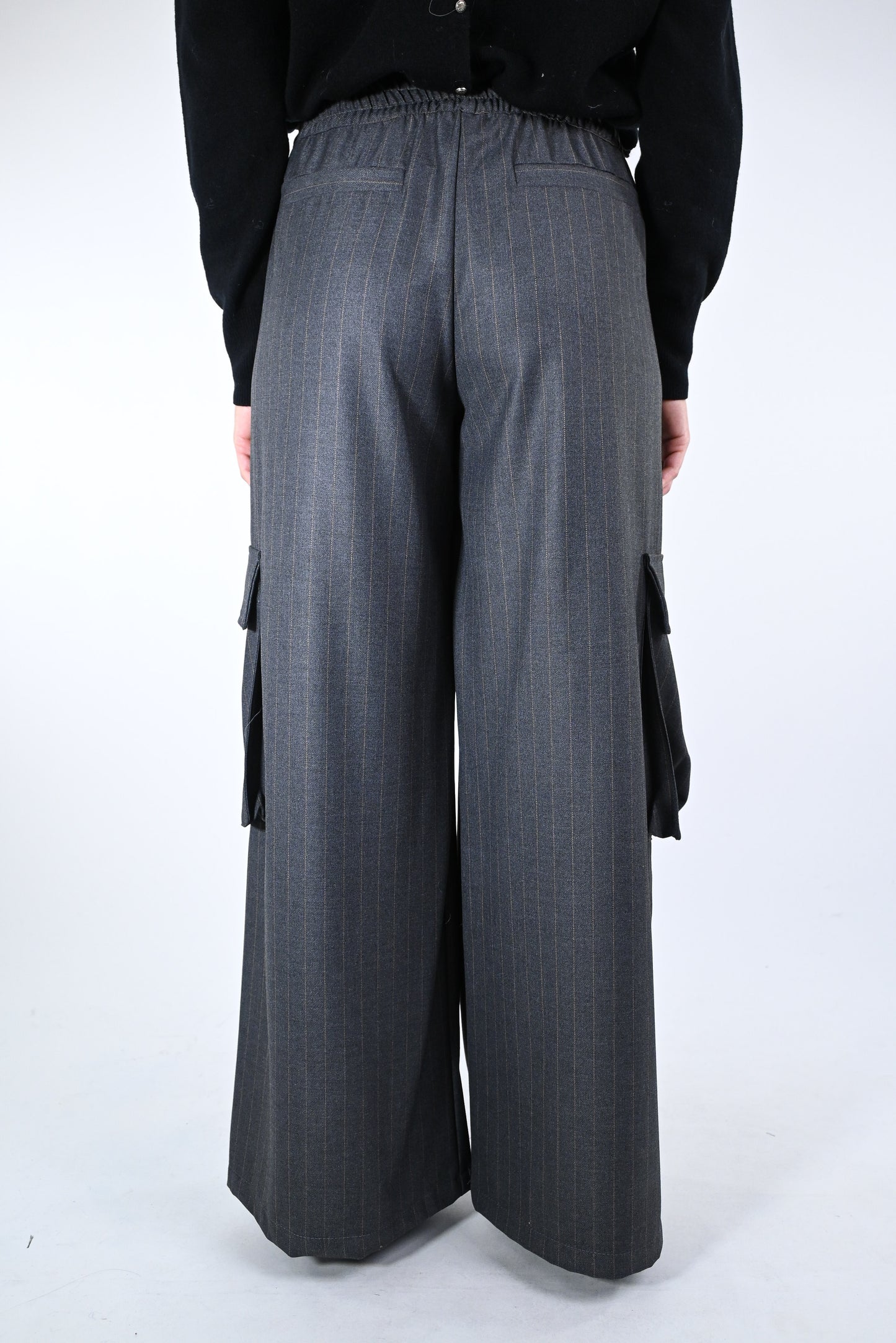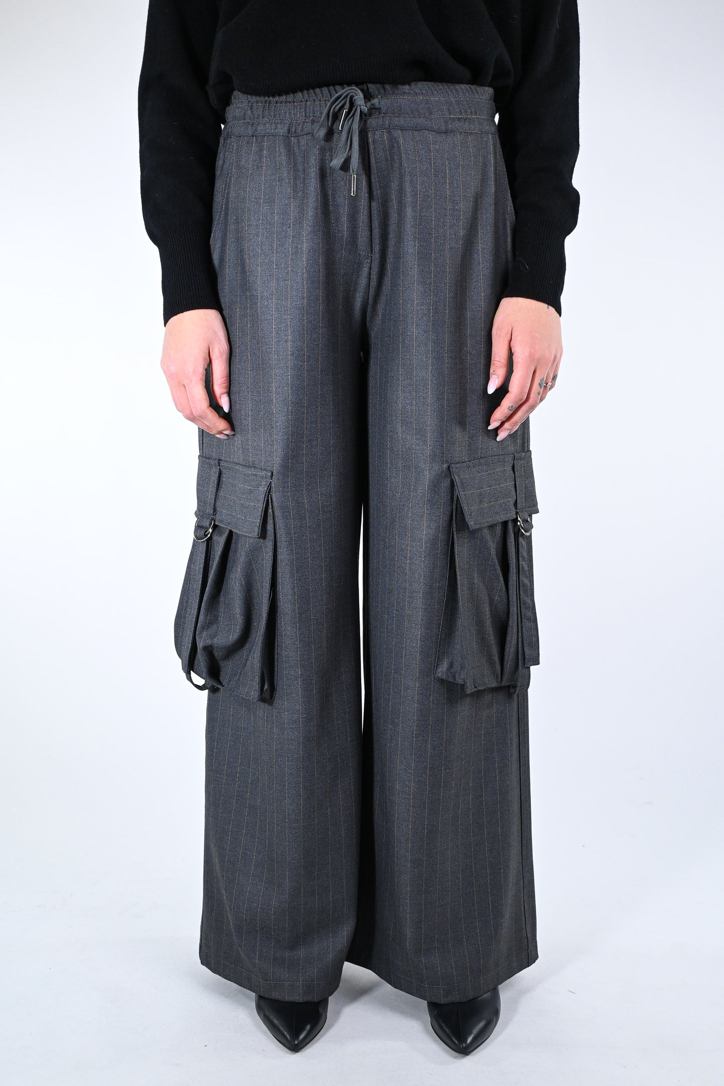 Prezzo normale €50,80Pantalone gessato palazzo cargo, con elastico e coulisse in vita, colore grigio