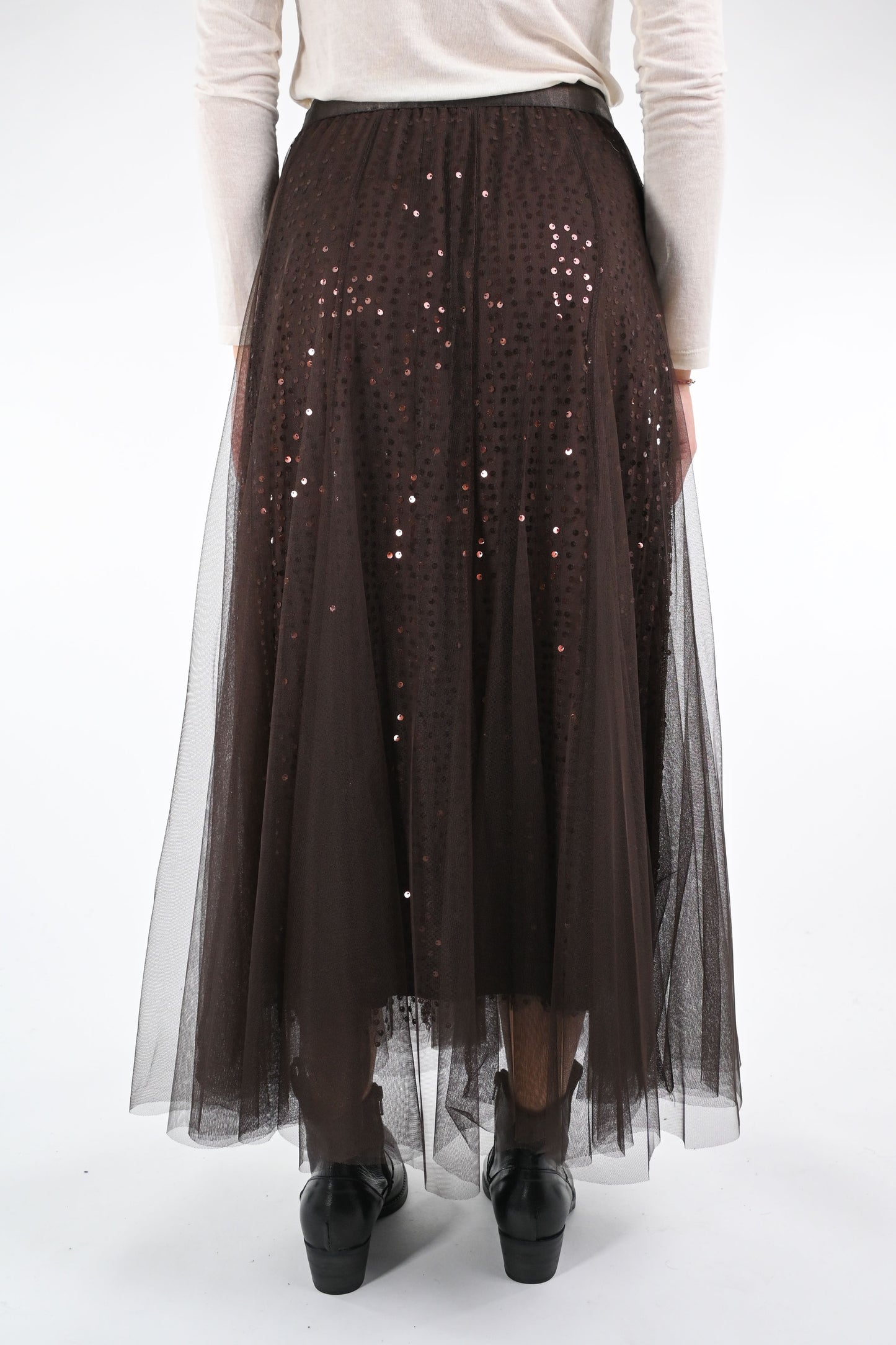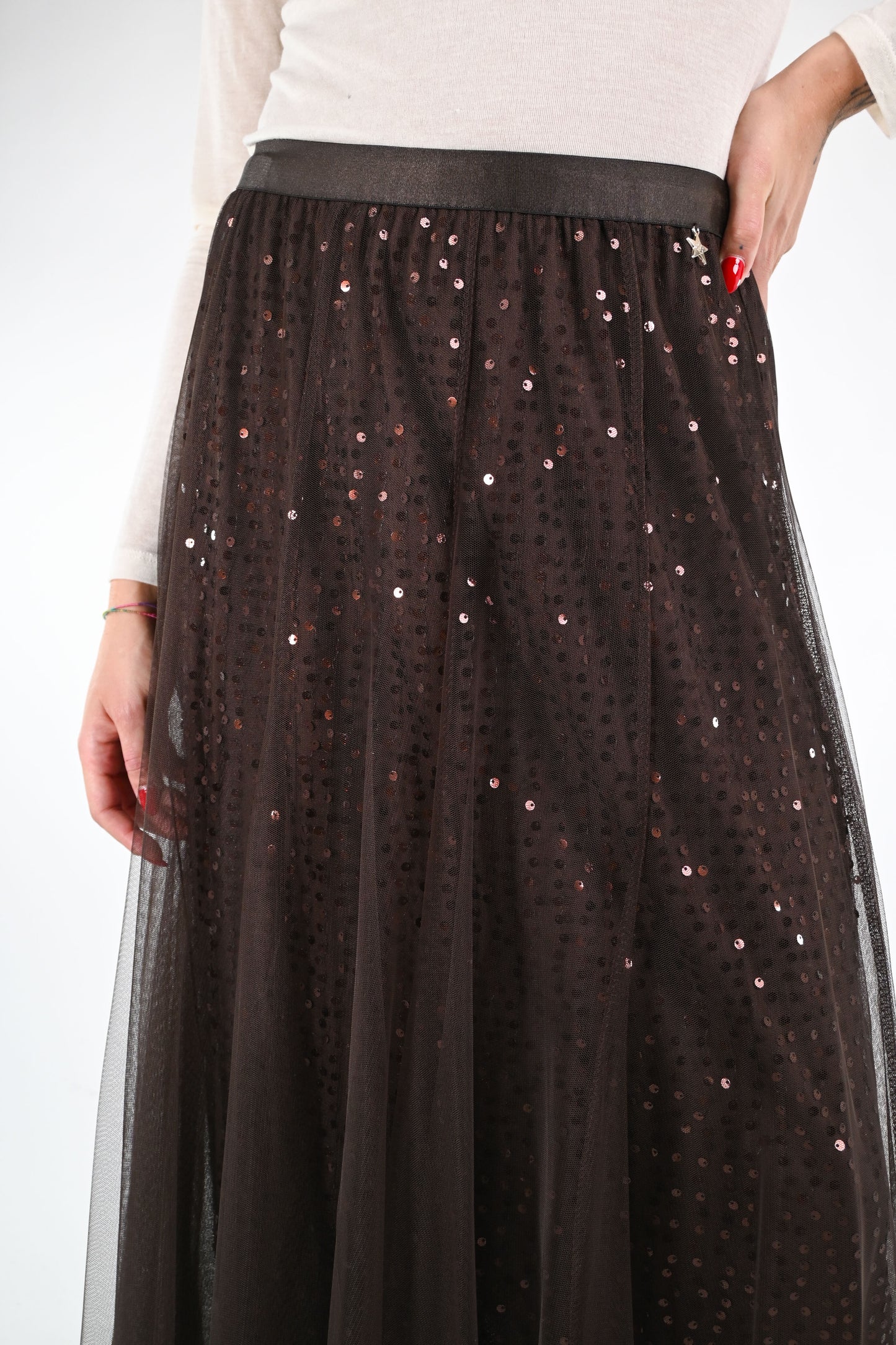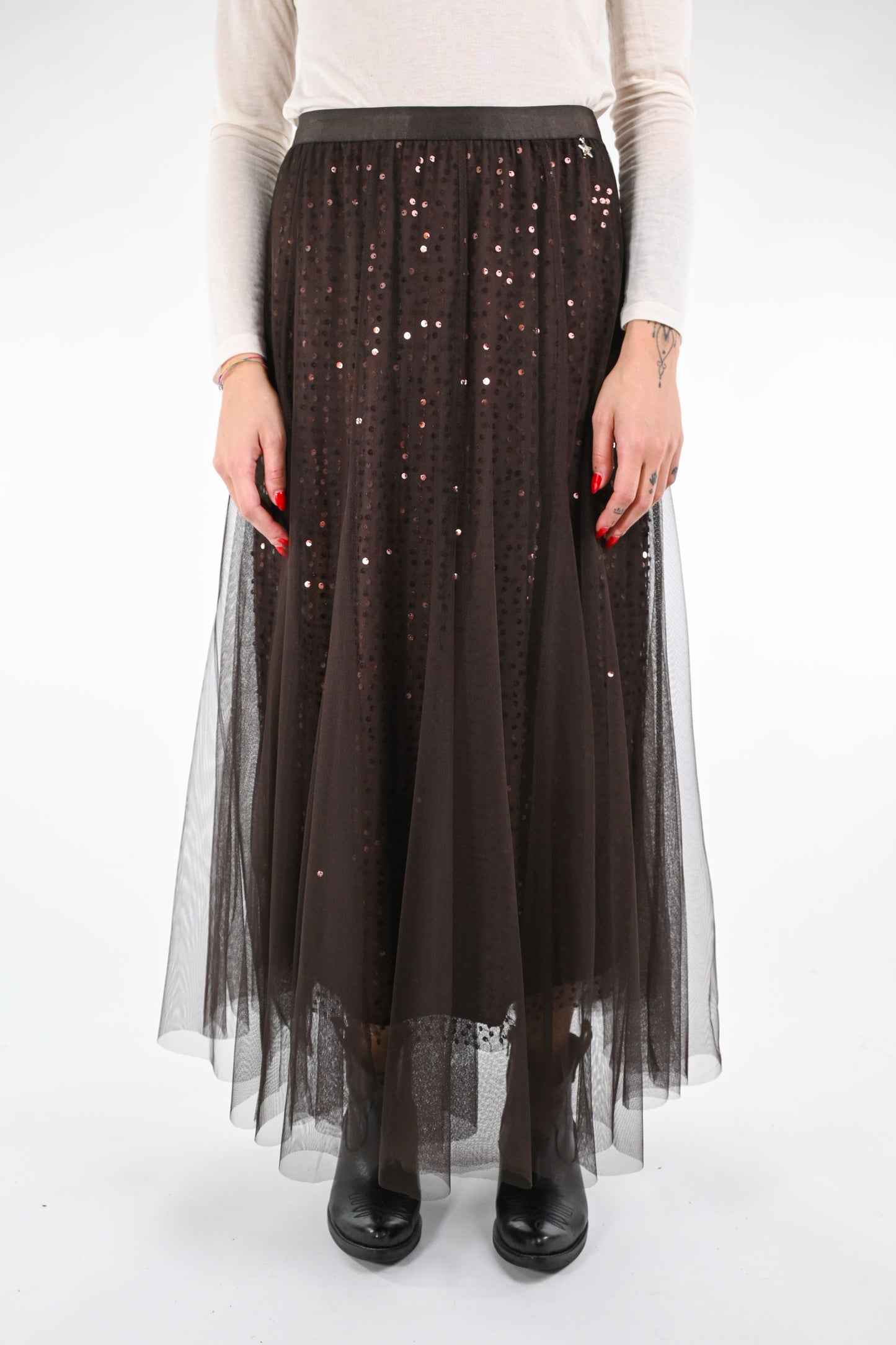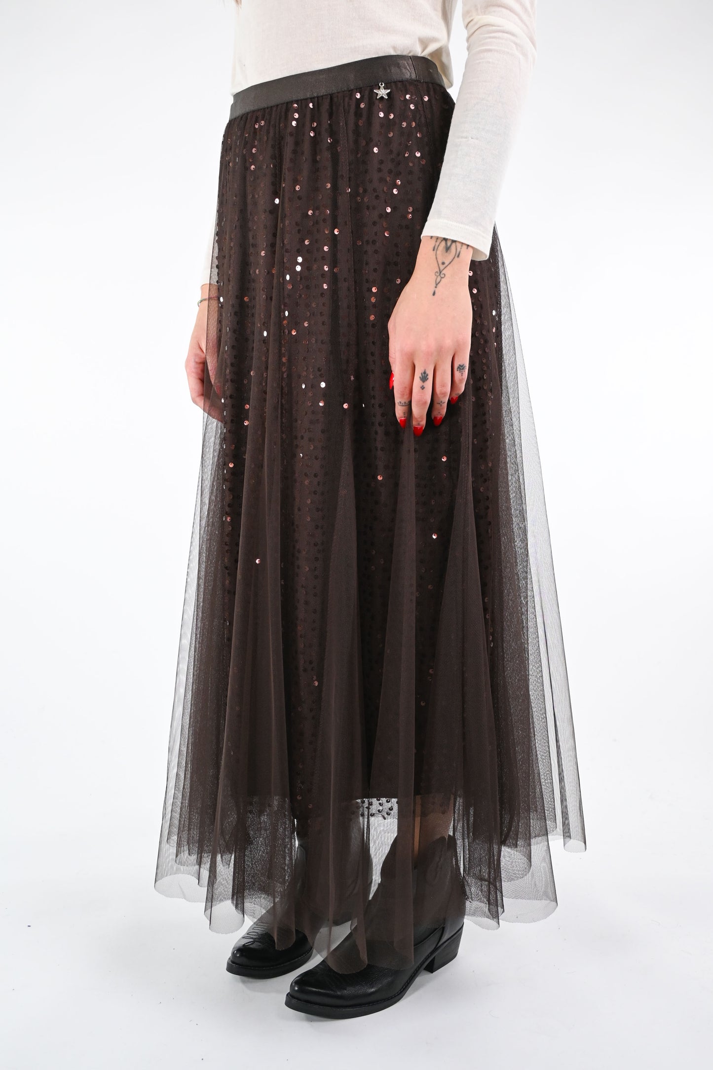 SOUVENIR - GONNA LUNGA IN TULLE CON PAILLETES ART.S38M1511 - MORO