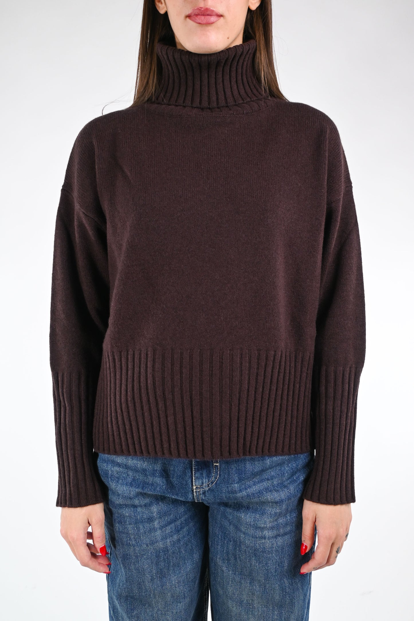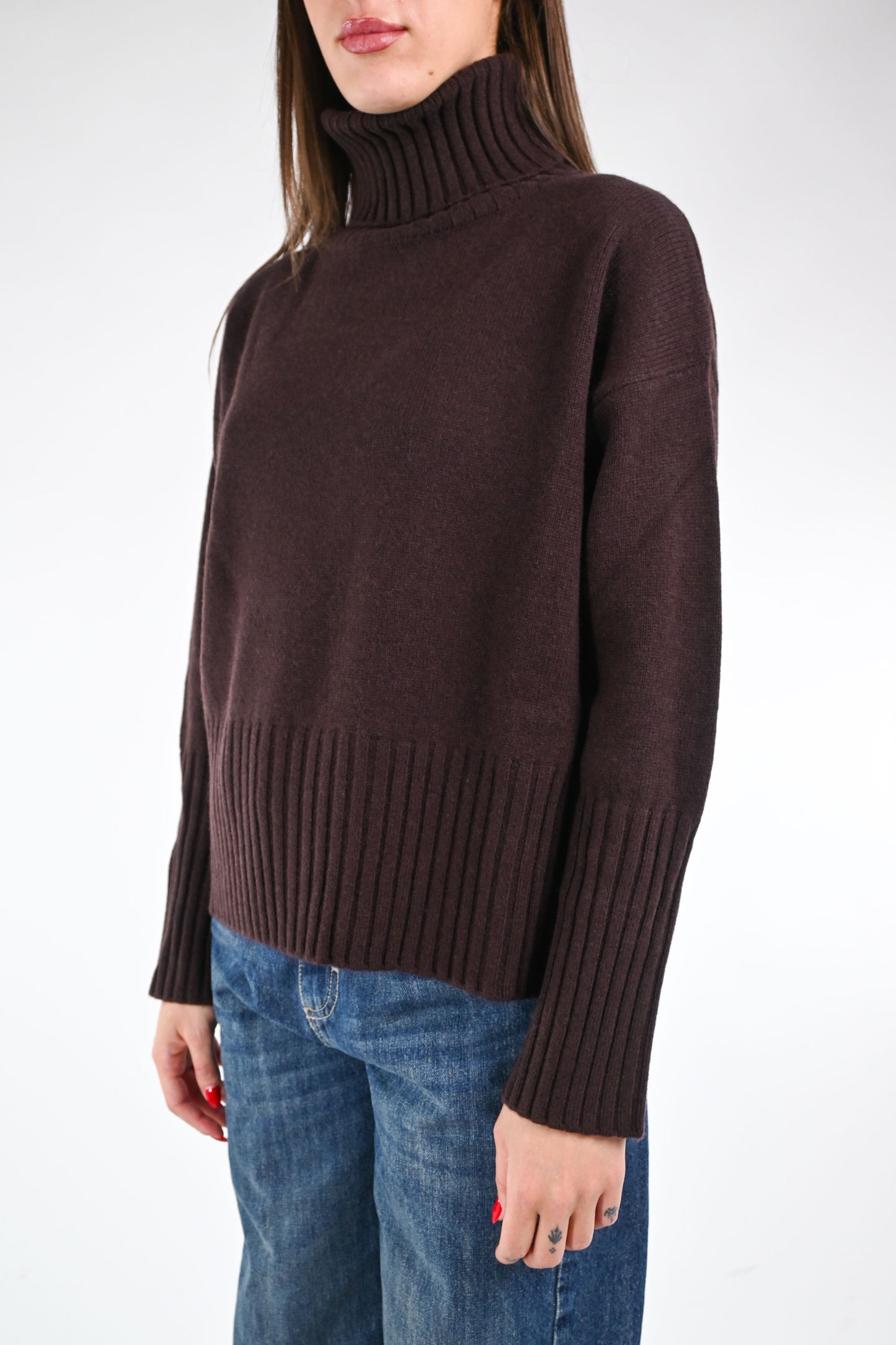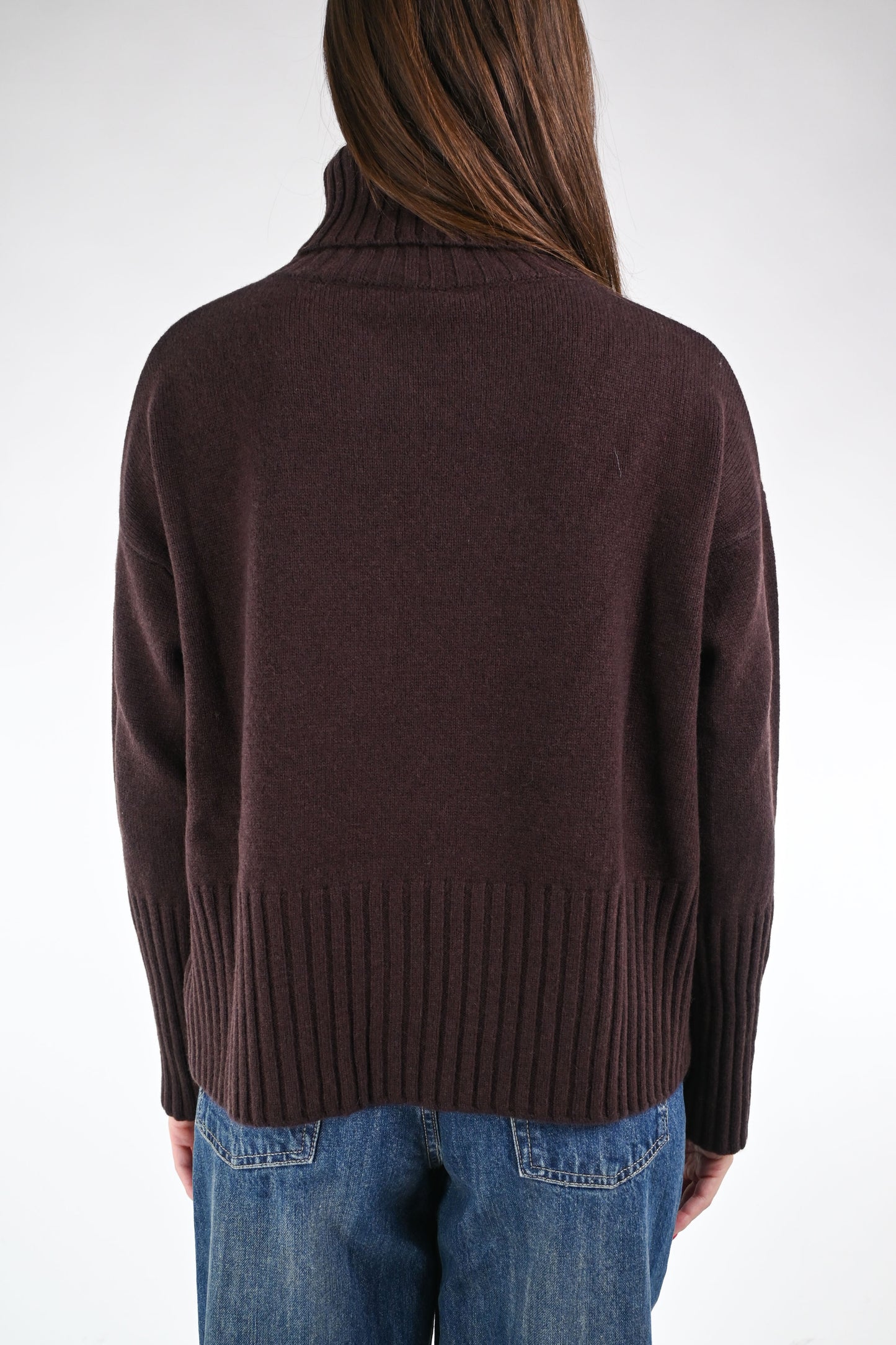 Dolcevita over pura lana, con collo e polsi a coste, colore castoro
