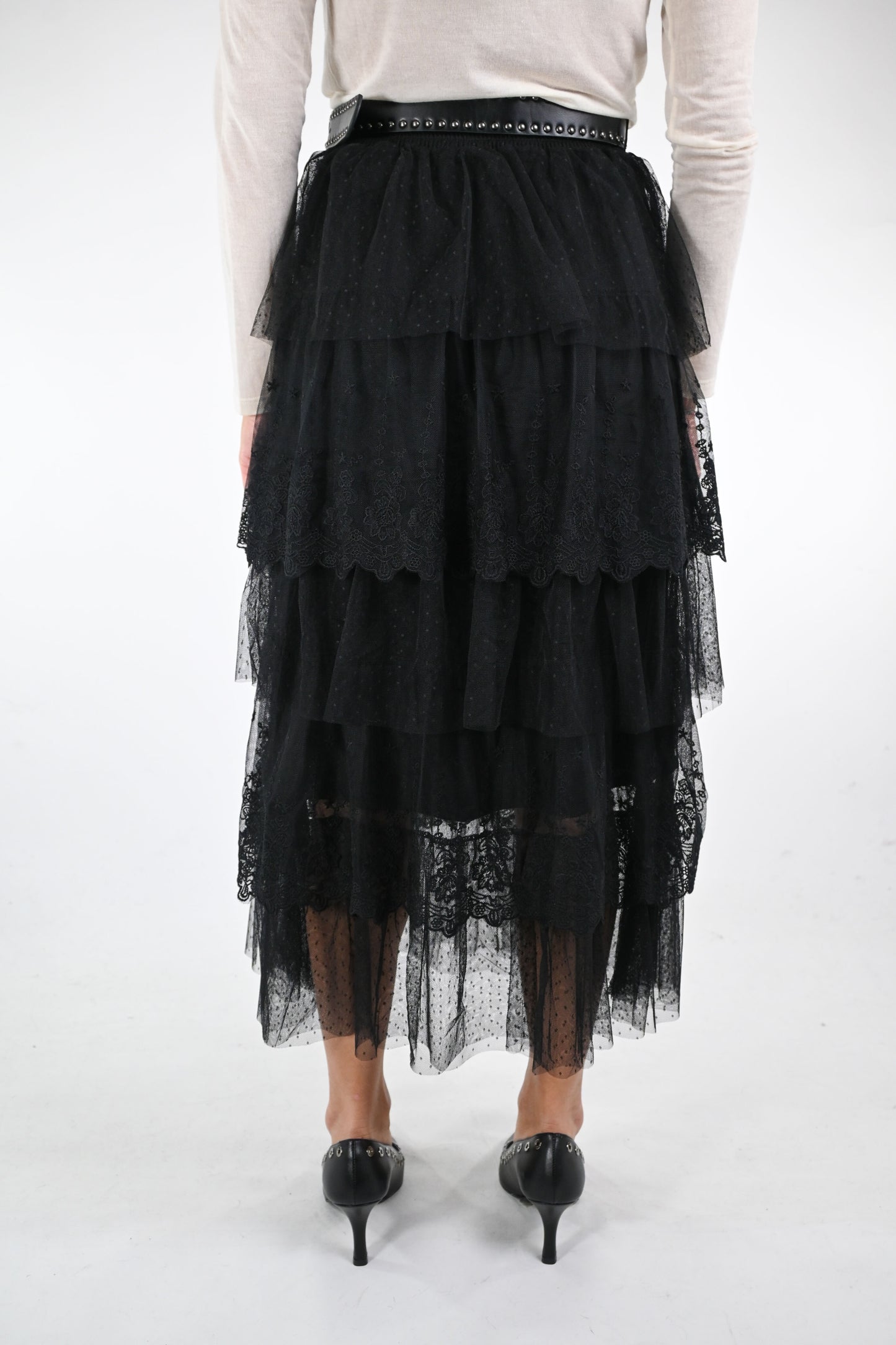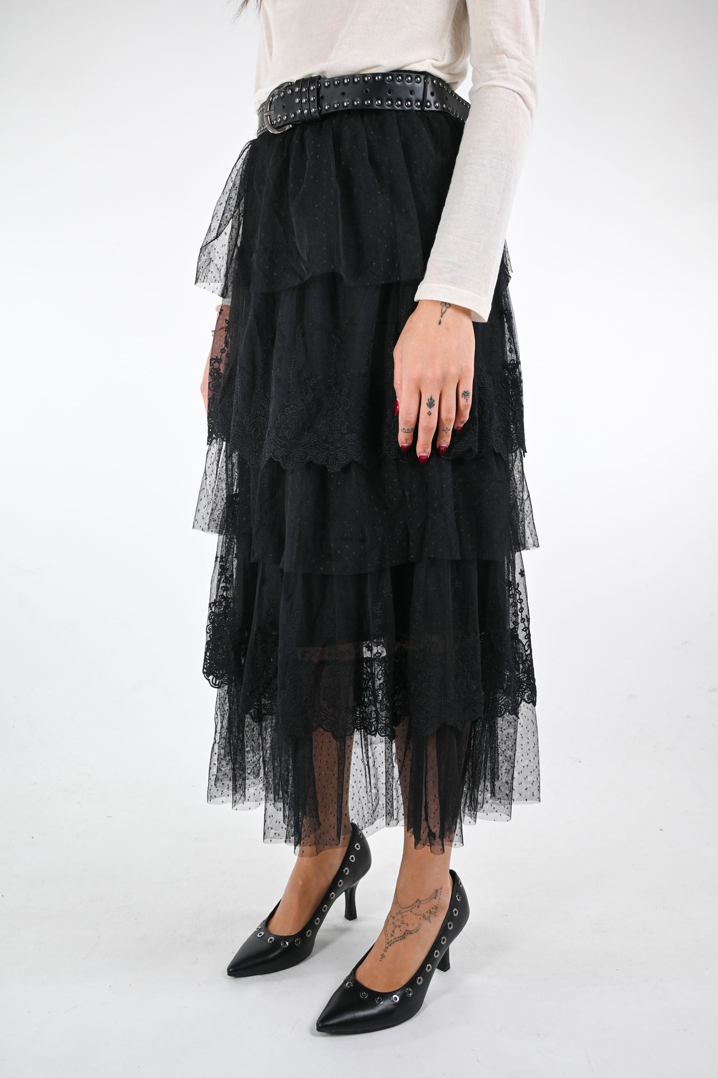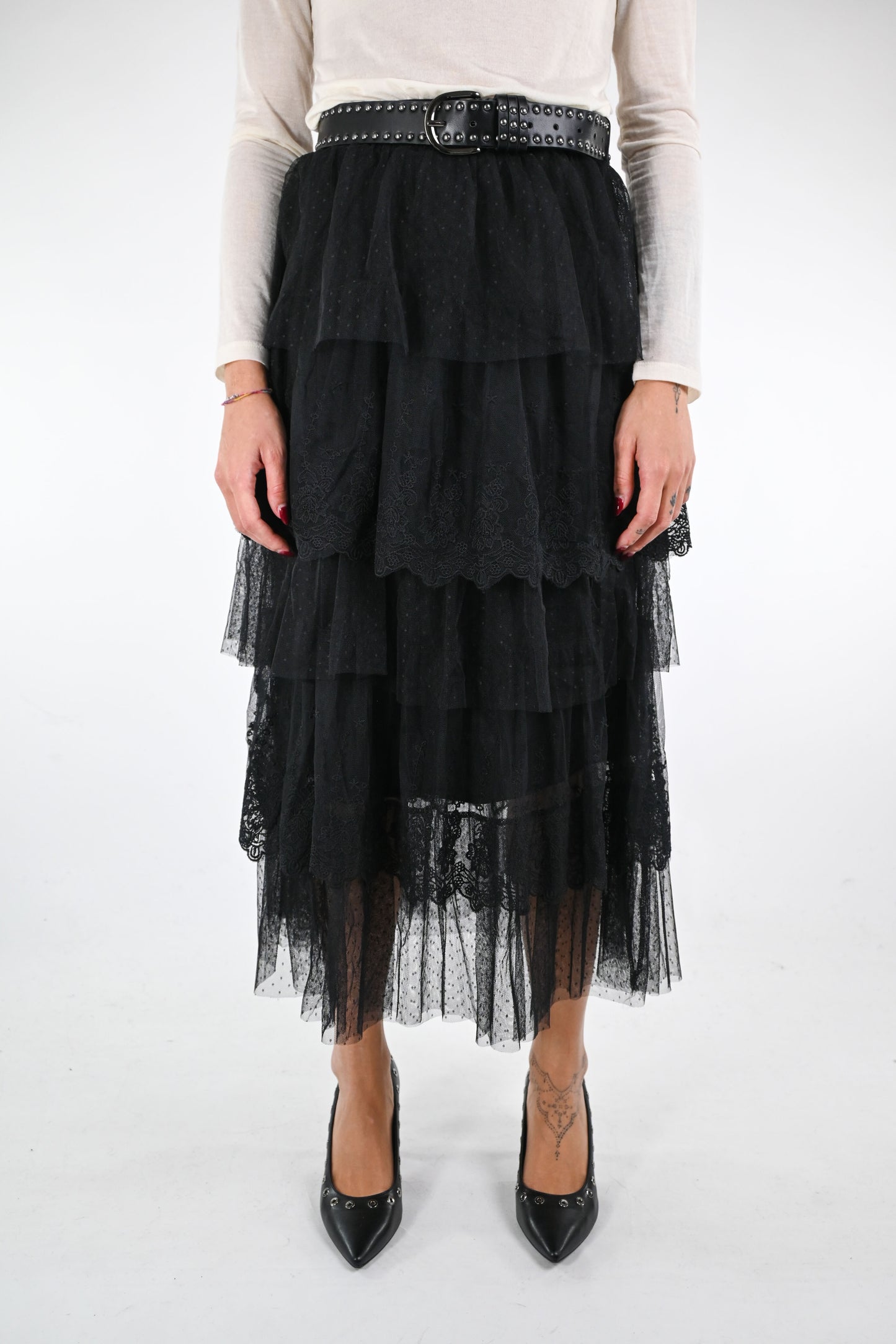 TENSIONE IN - GONNA IN TULLE E PIZZO ART.37984 - NERO