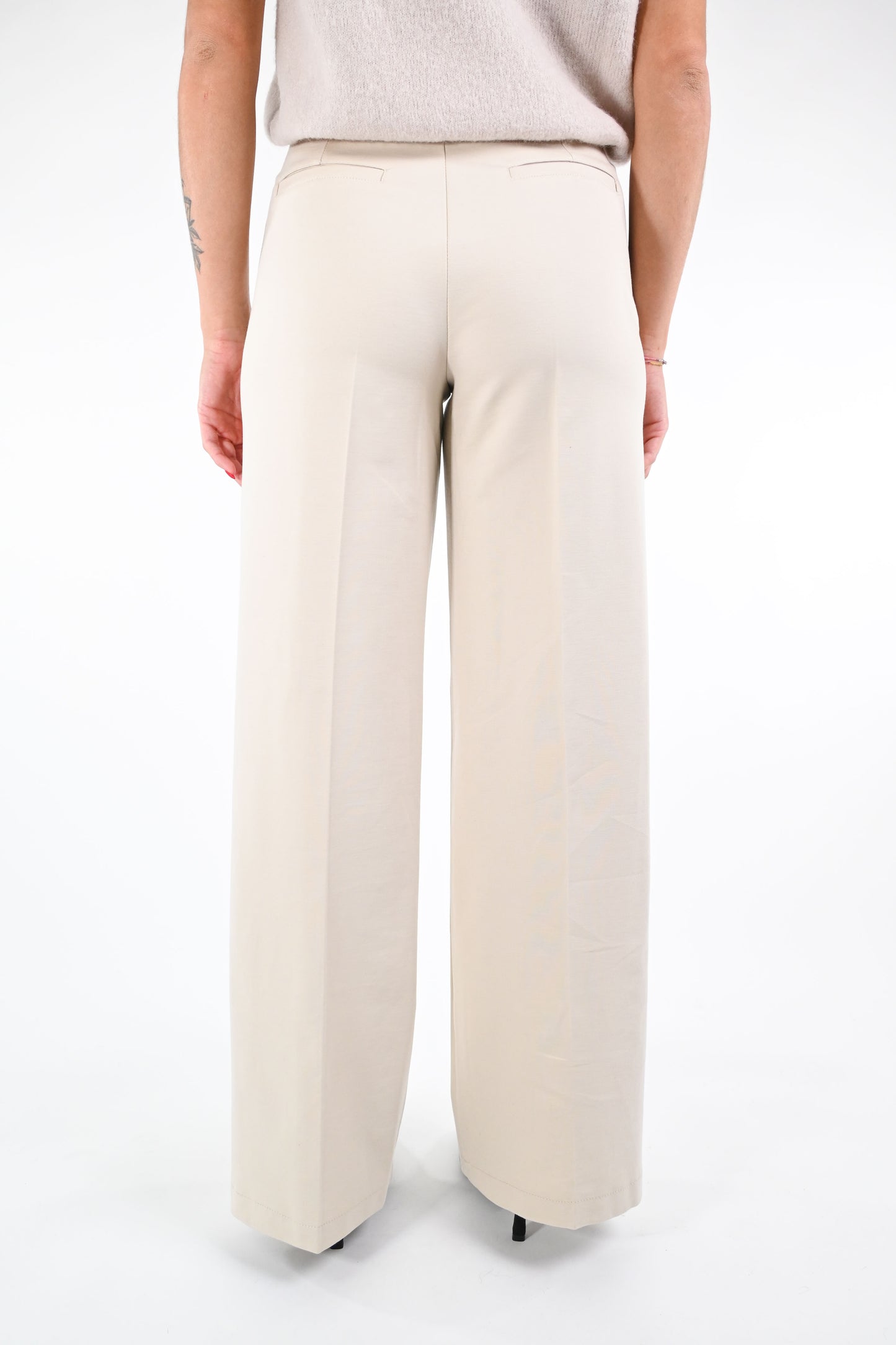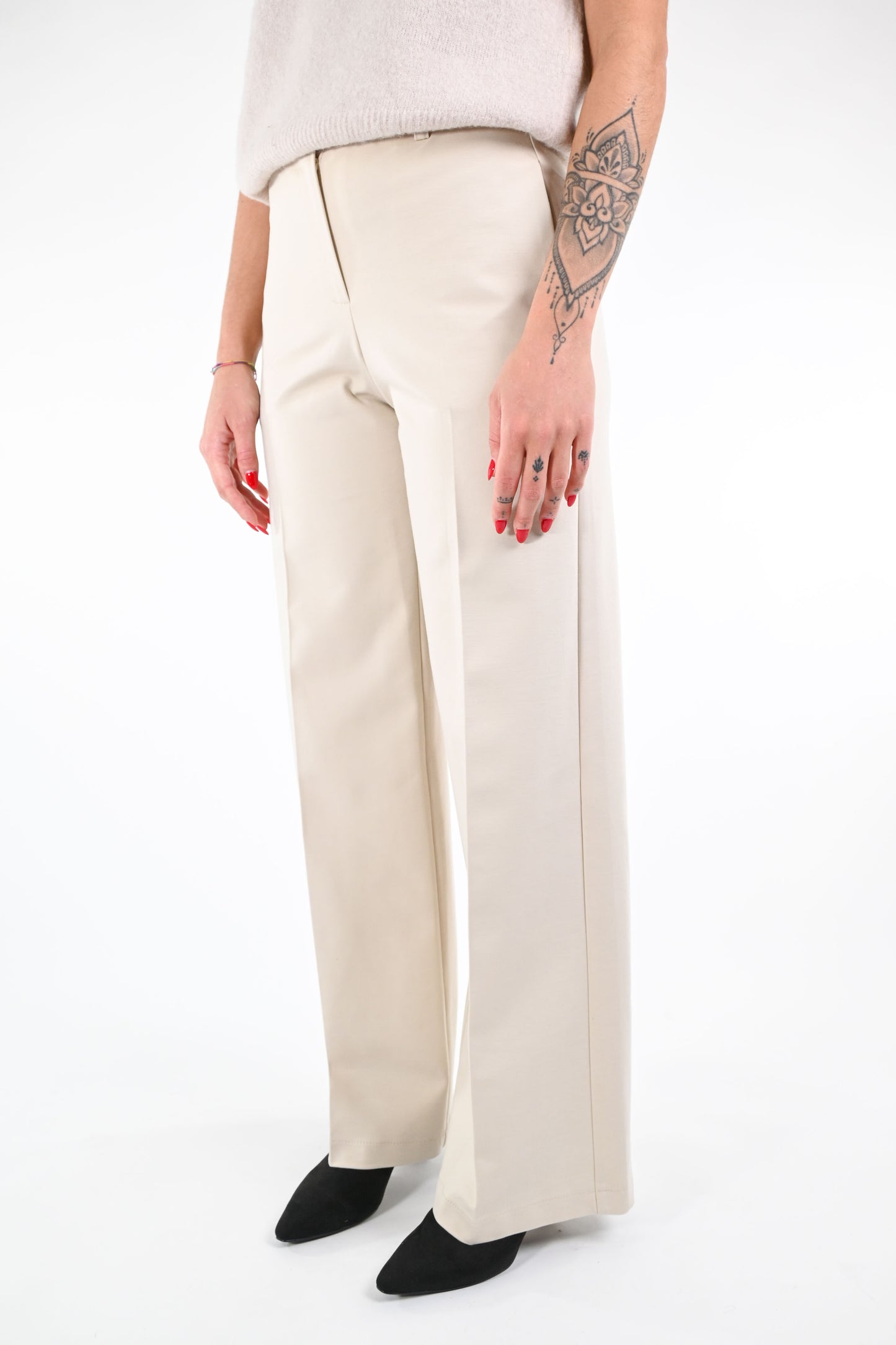 Pantalone palazzo in punto milano, con tasche a filo, colore panna