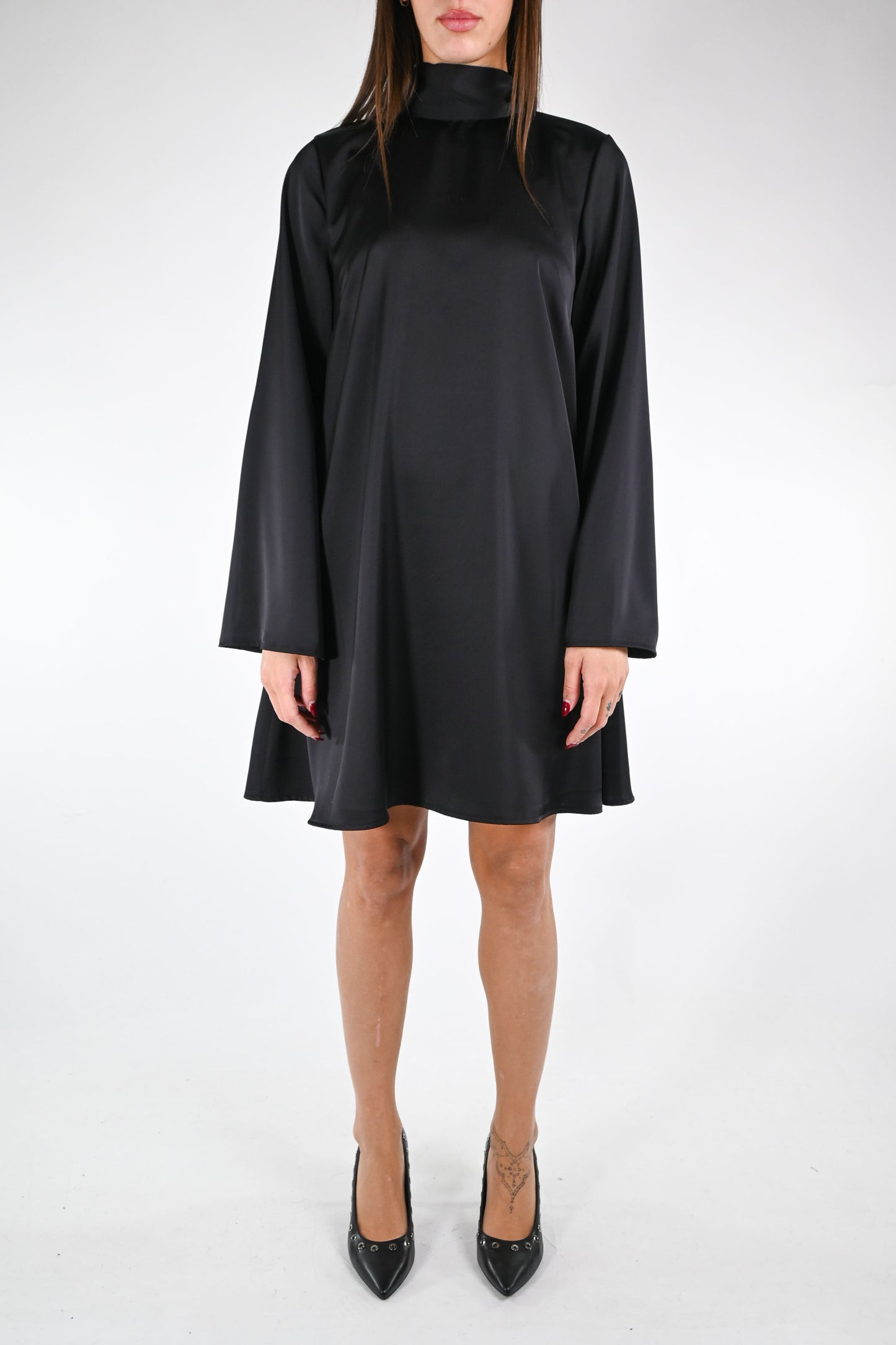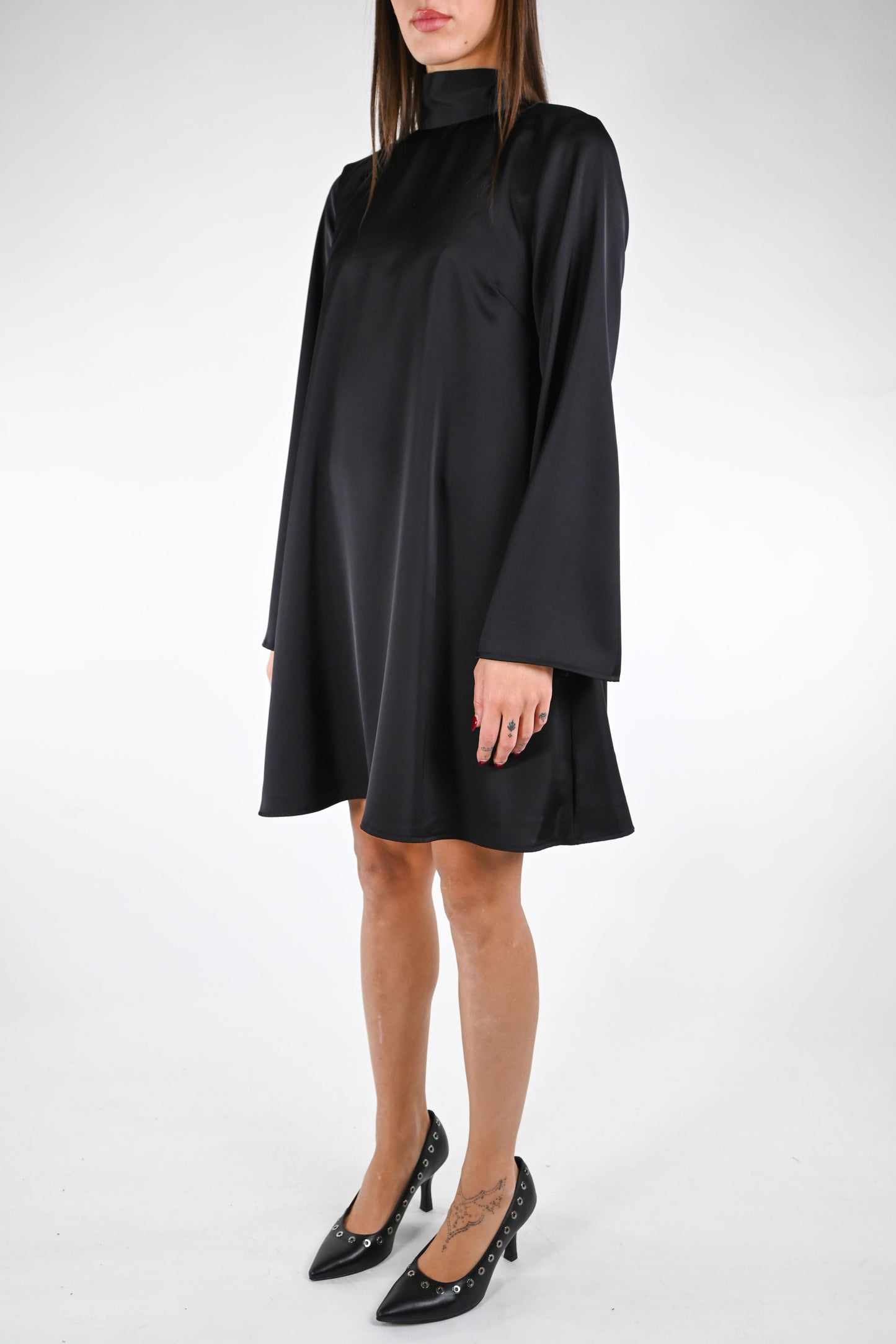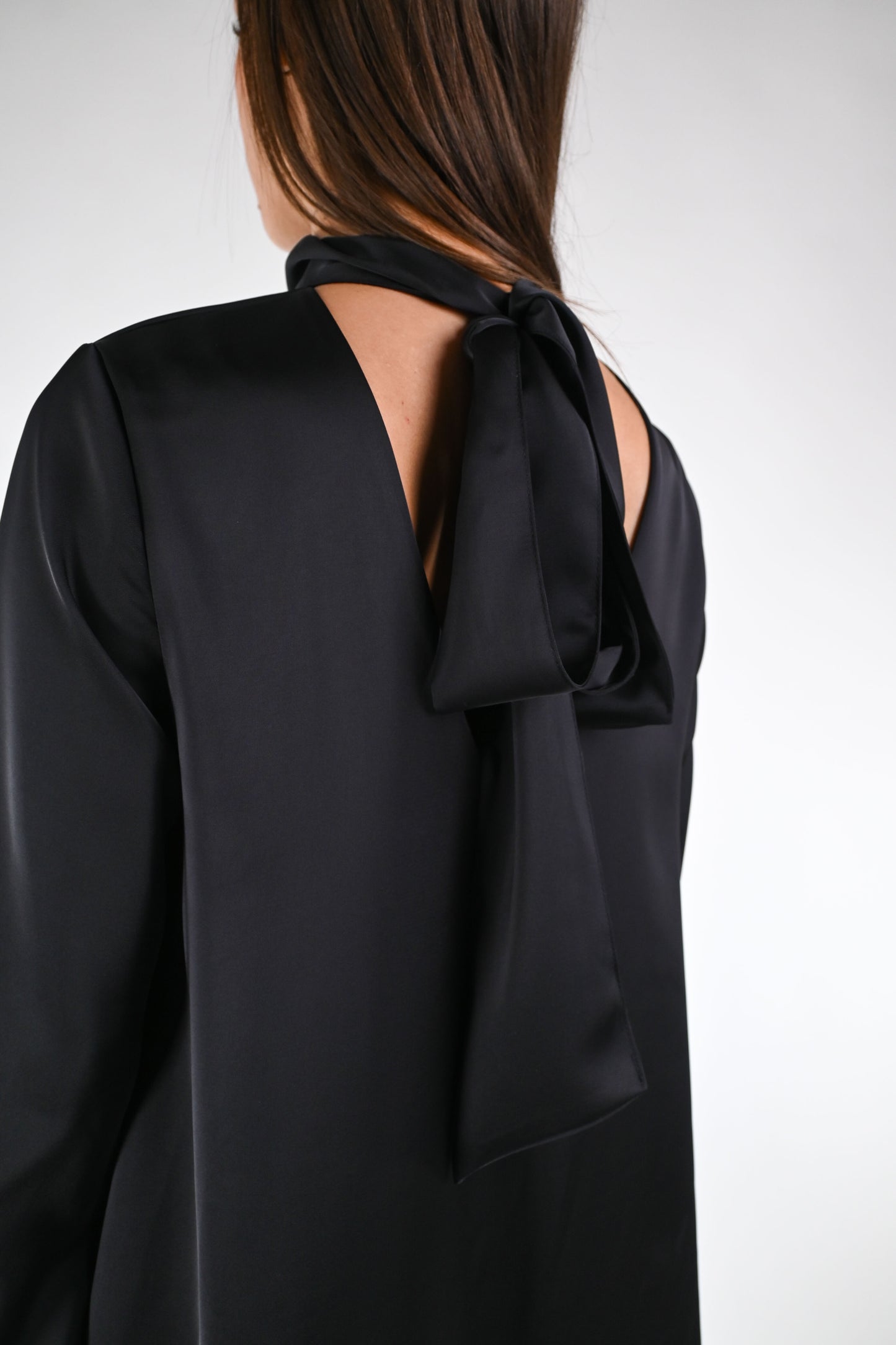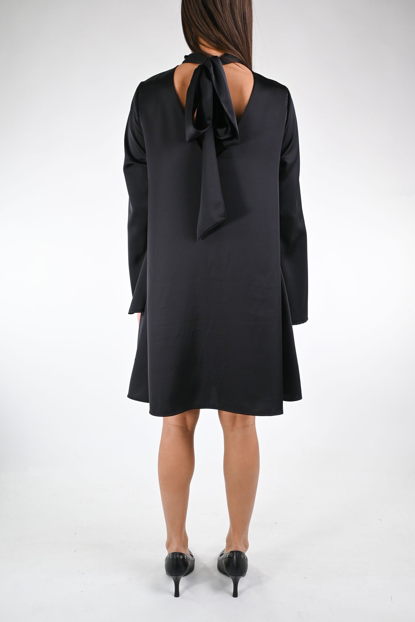 Abito svasato con fiocco e scollo a V dietro, manica larga, colore Nero.