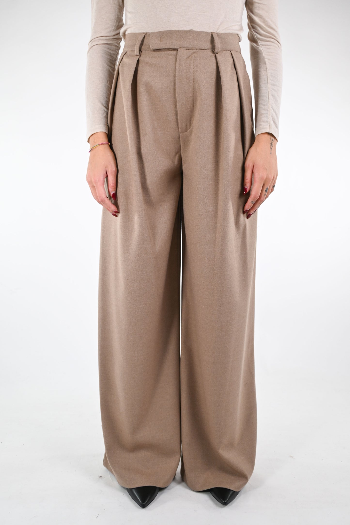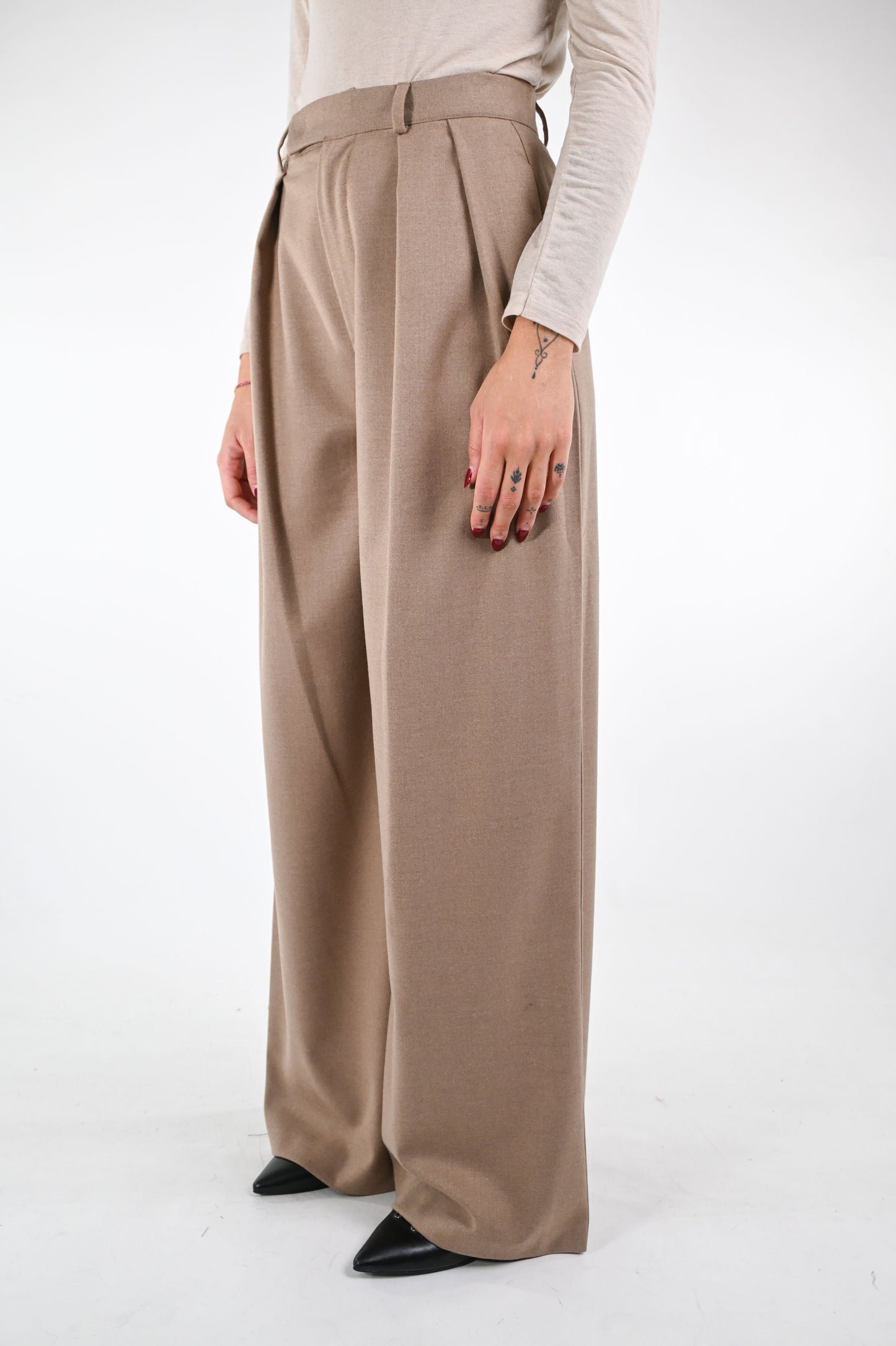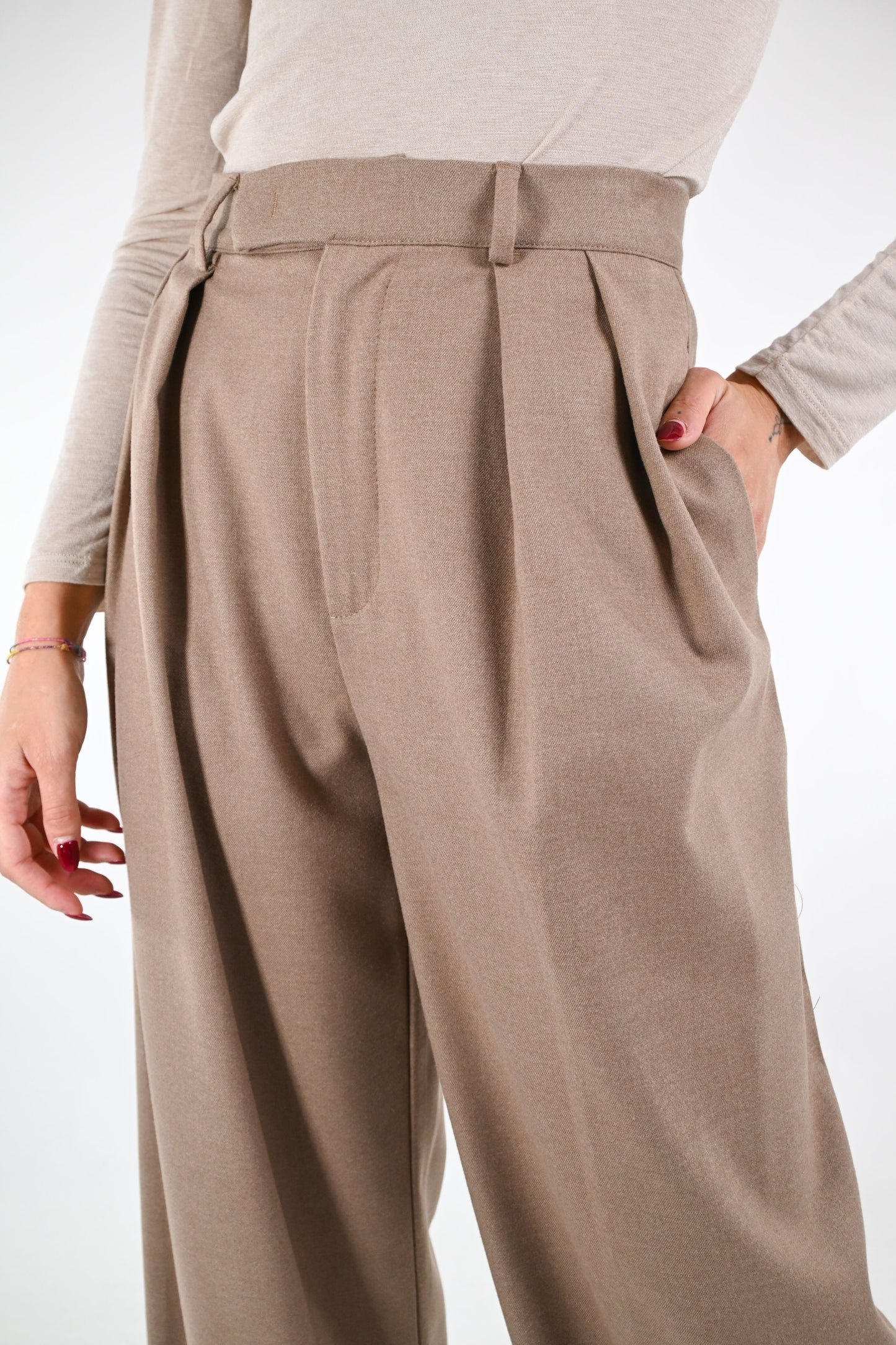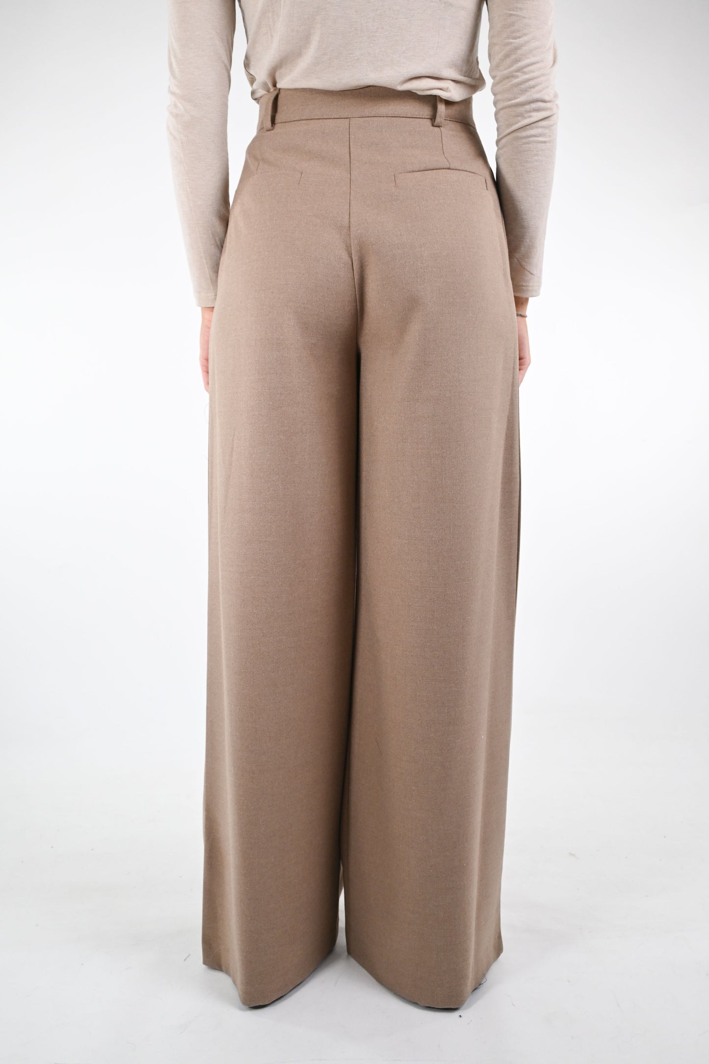 Pantalone palazzo in flanella, con doppia pinces, tasca a filo, colore Kasha.