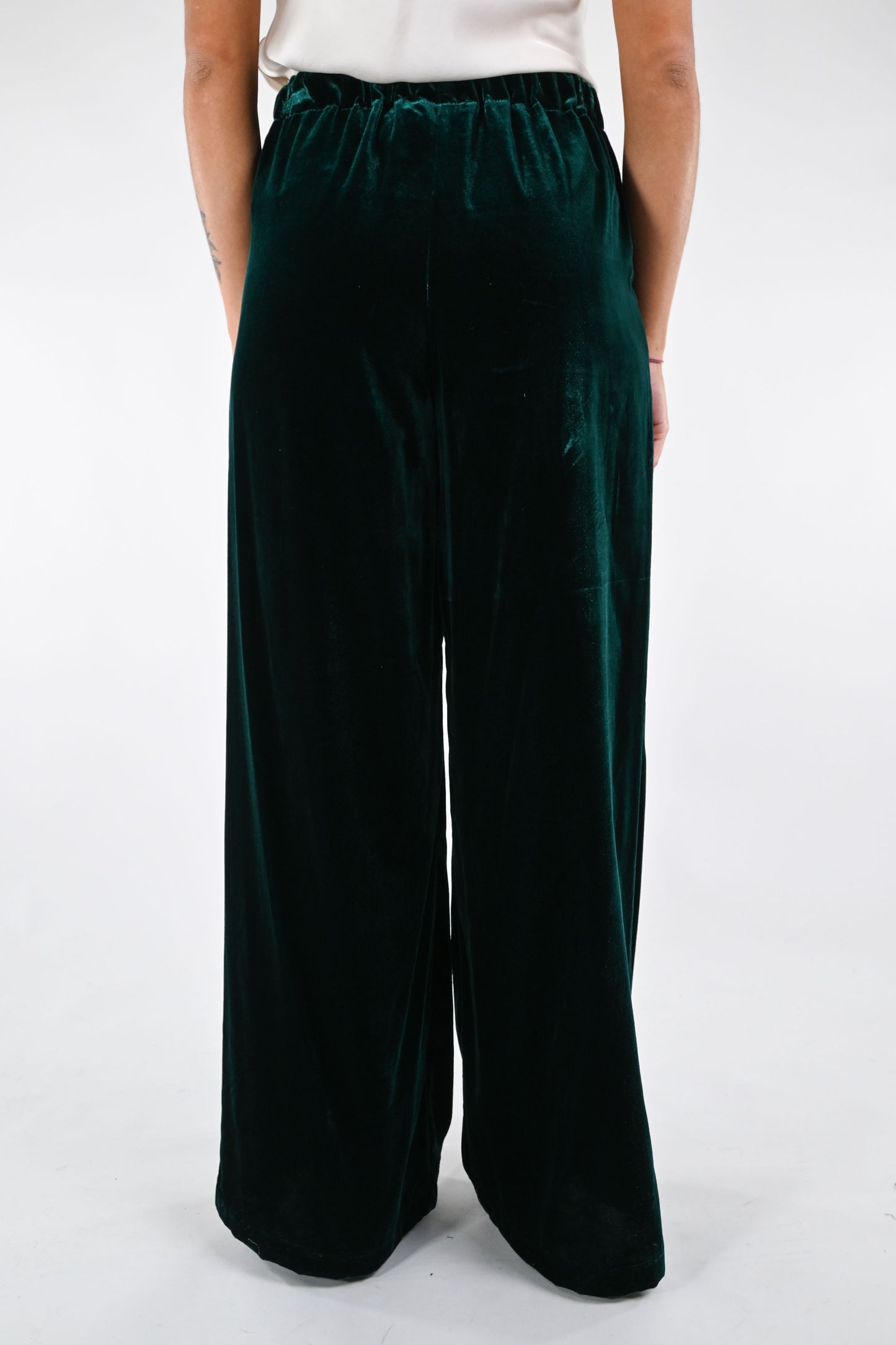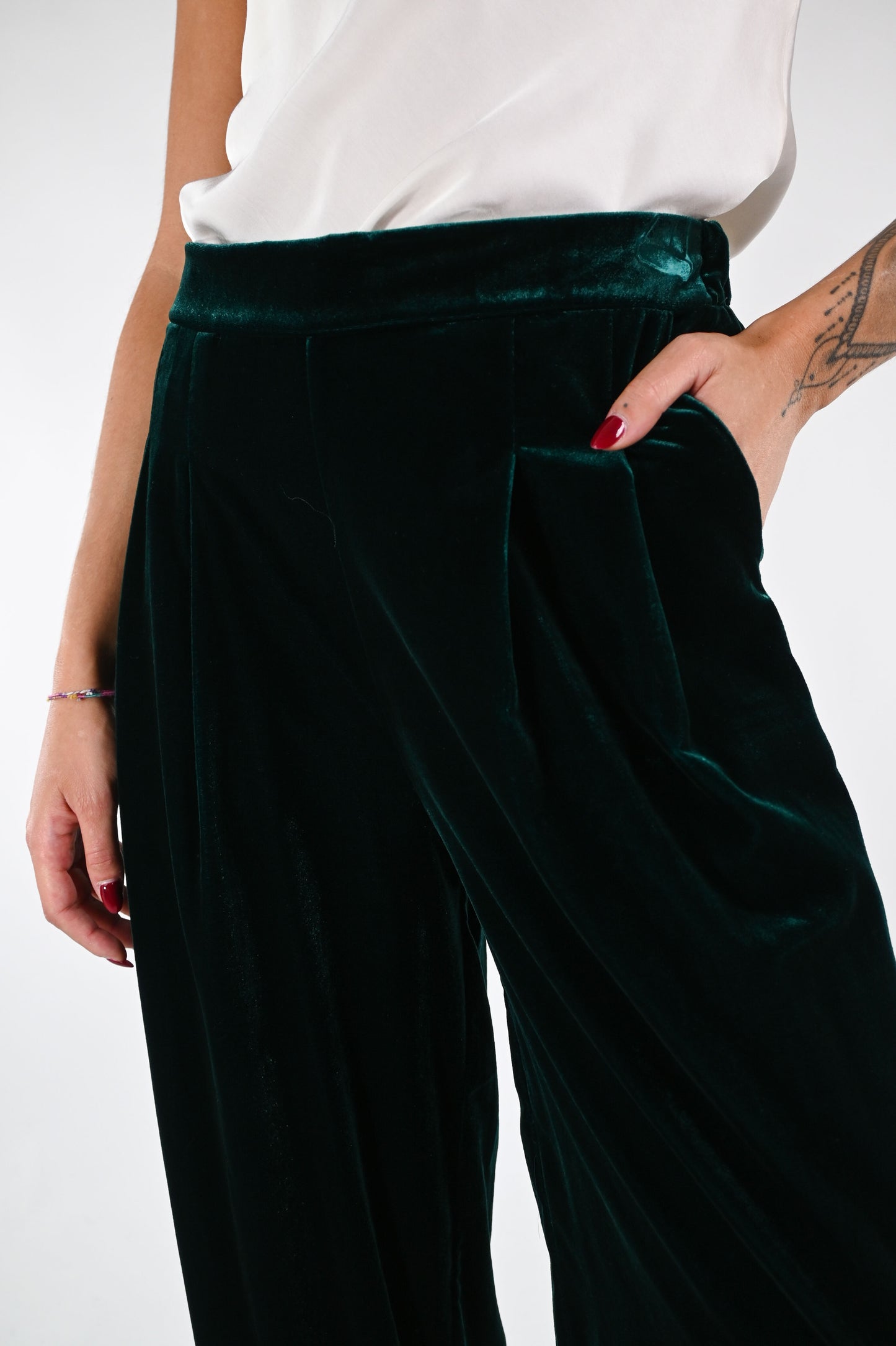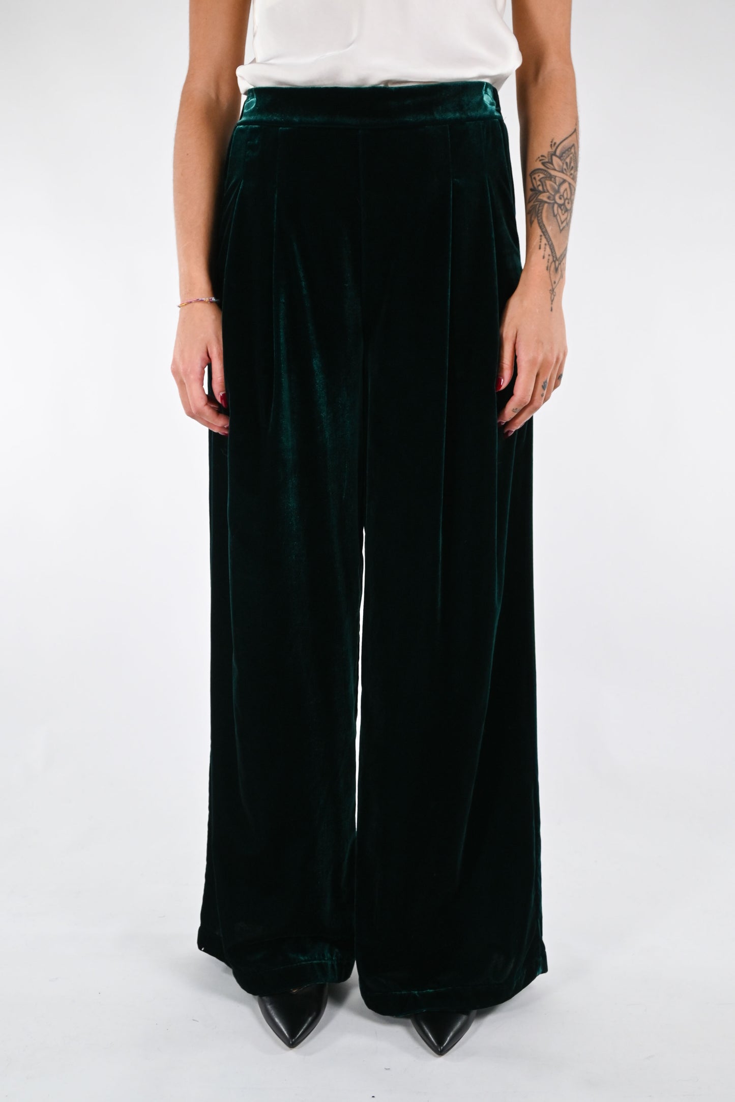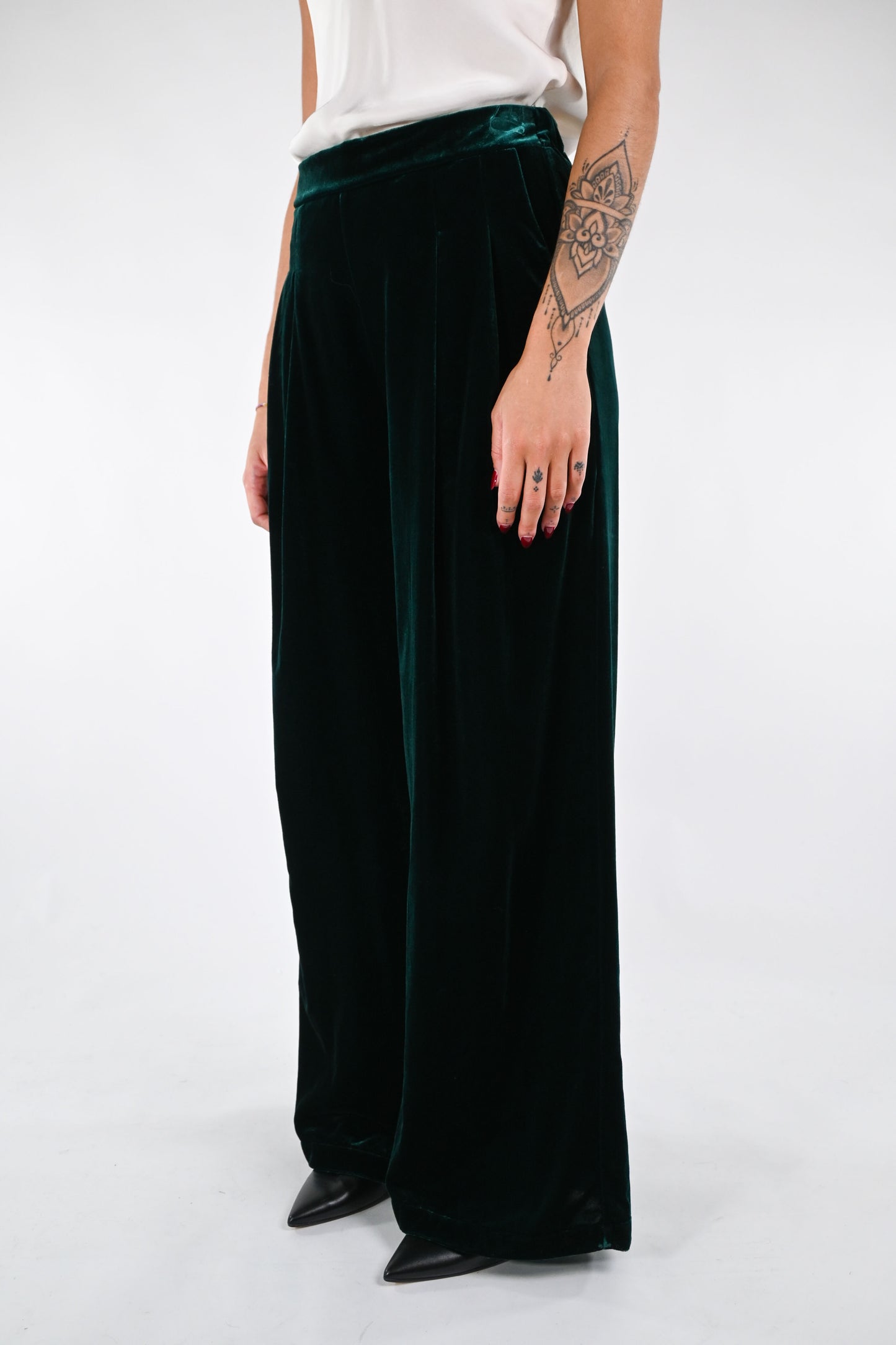 WU'SIDE - PANATALONE PALAZZO VELLUTO LISCIO ART.25606 - SMERALDO