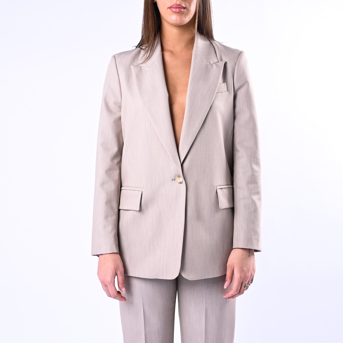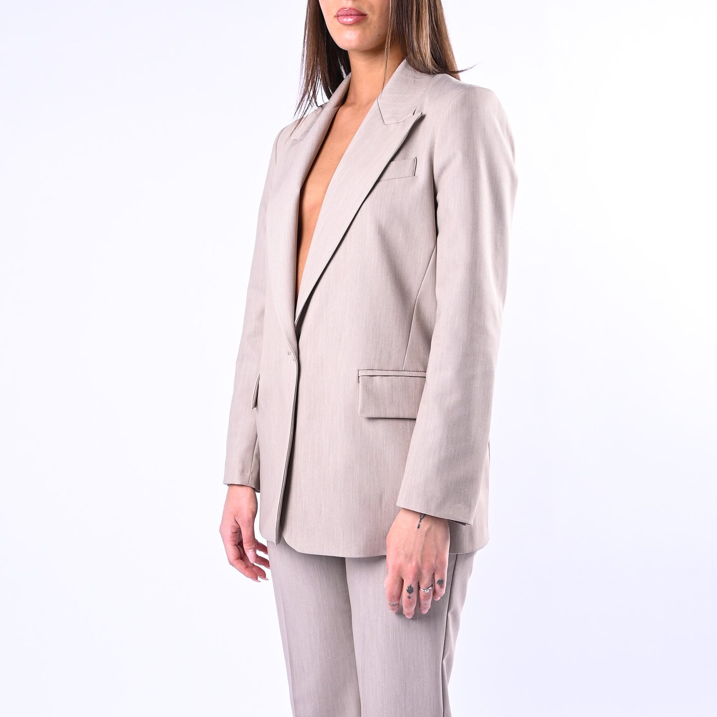 Giacca over in poliviscosa melange dal taglio generoso e versatile, perfetta per uno stile contemporaneo e sofisticato. Abbinala ai suoi pantaloni coordinati della collezione per un look completo e armonioso.