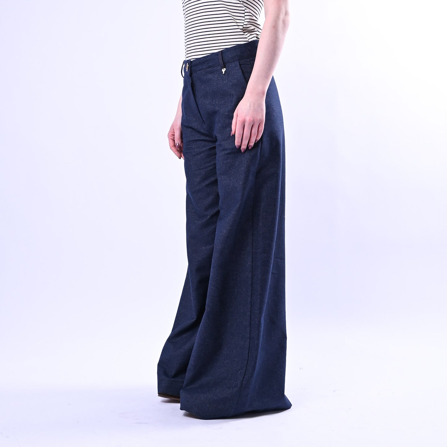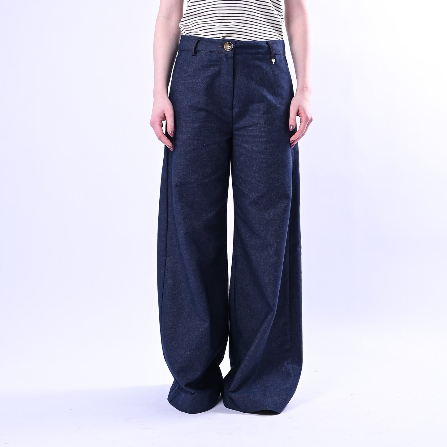 PHILIA LOFT - PANTALONE PALAZZO CHAMBRAY ART.V02F0675 - DENIM SCURO