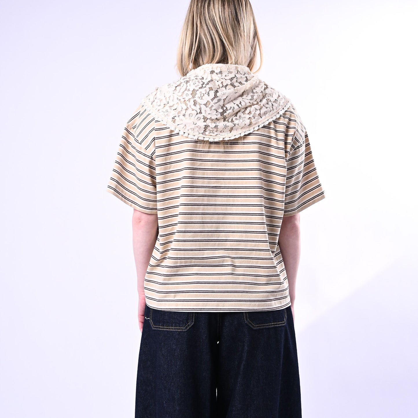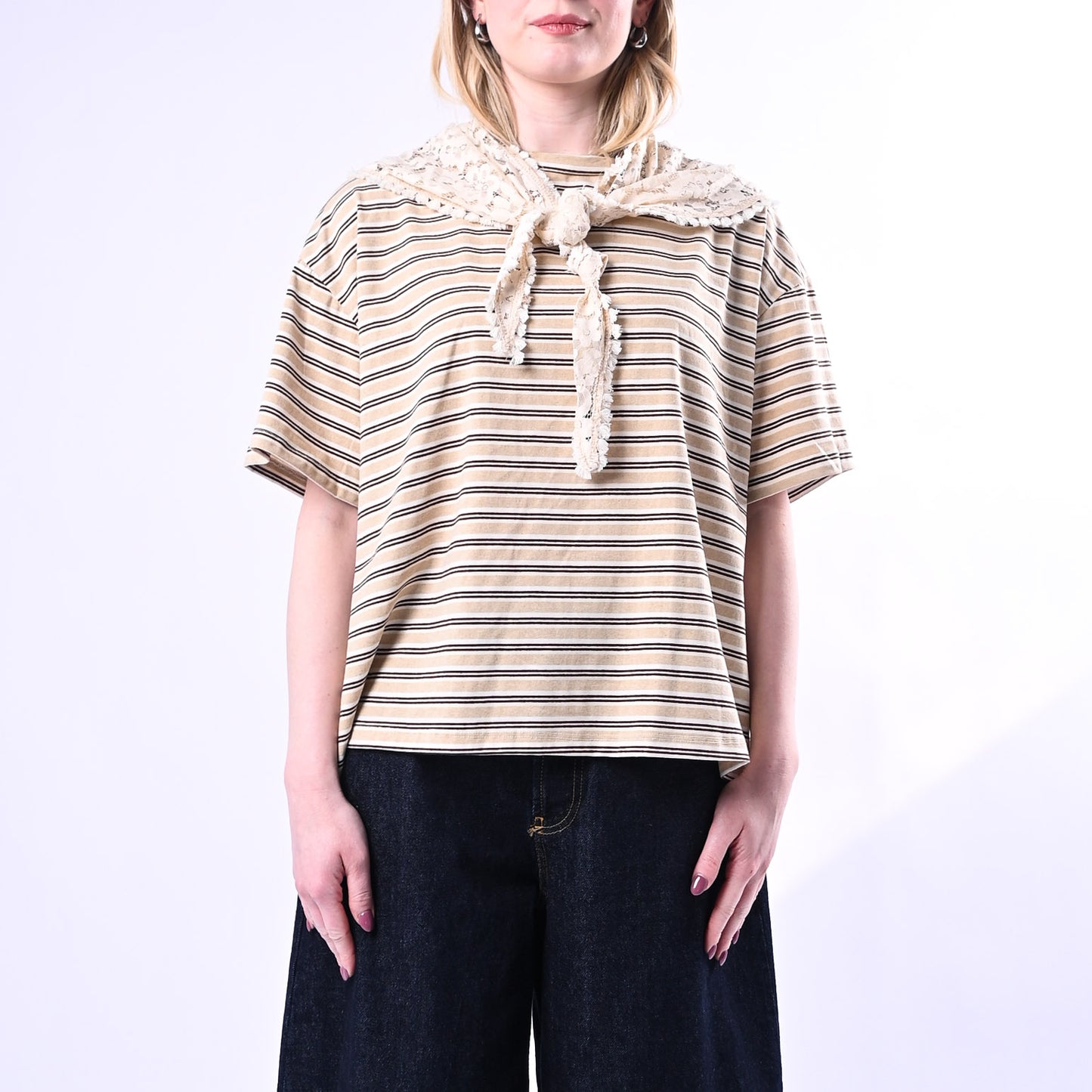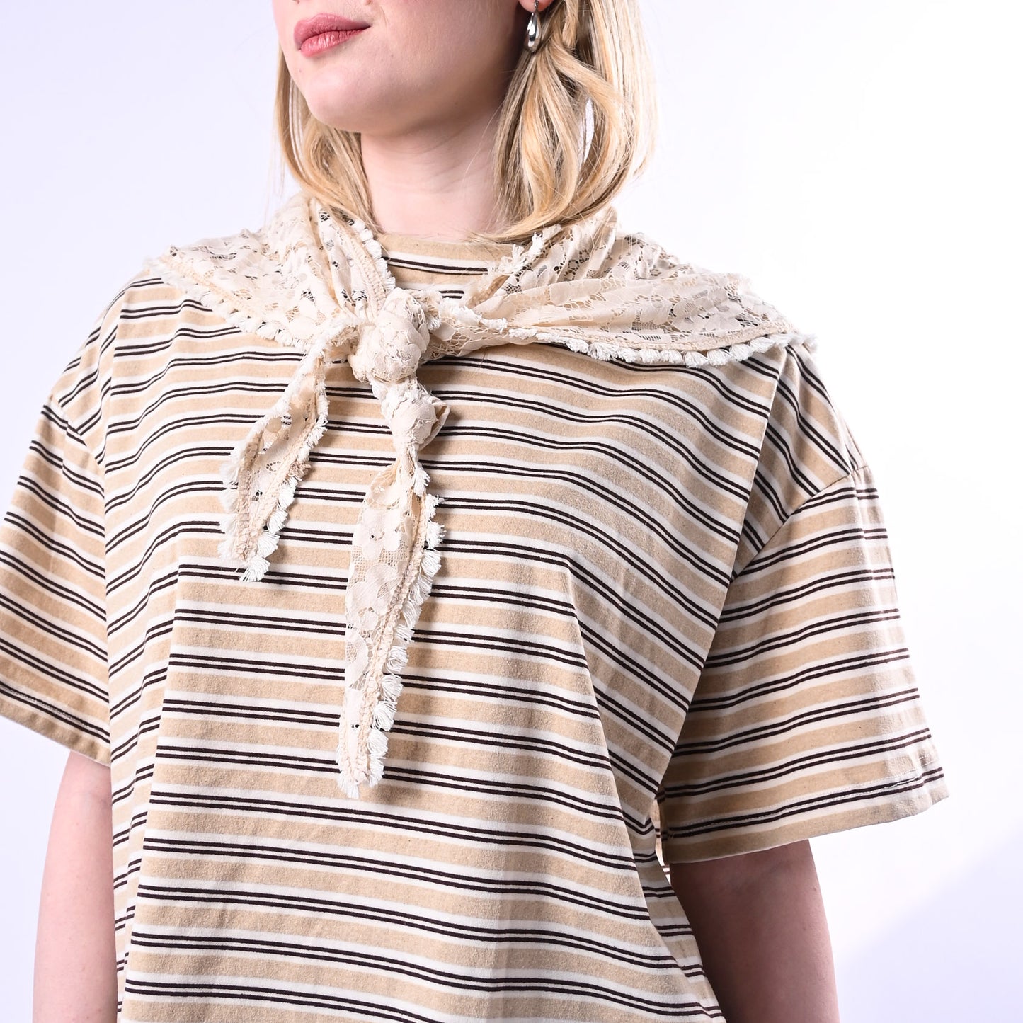 PHILIA LOFT - T-SHIRT A RIGHE CON FOULARD PIZZO ART.D02N0653 - BEIGE