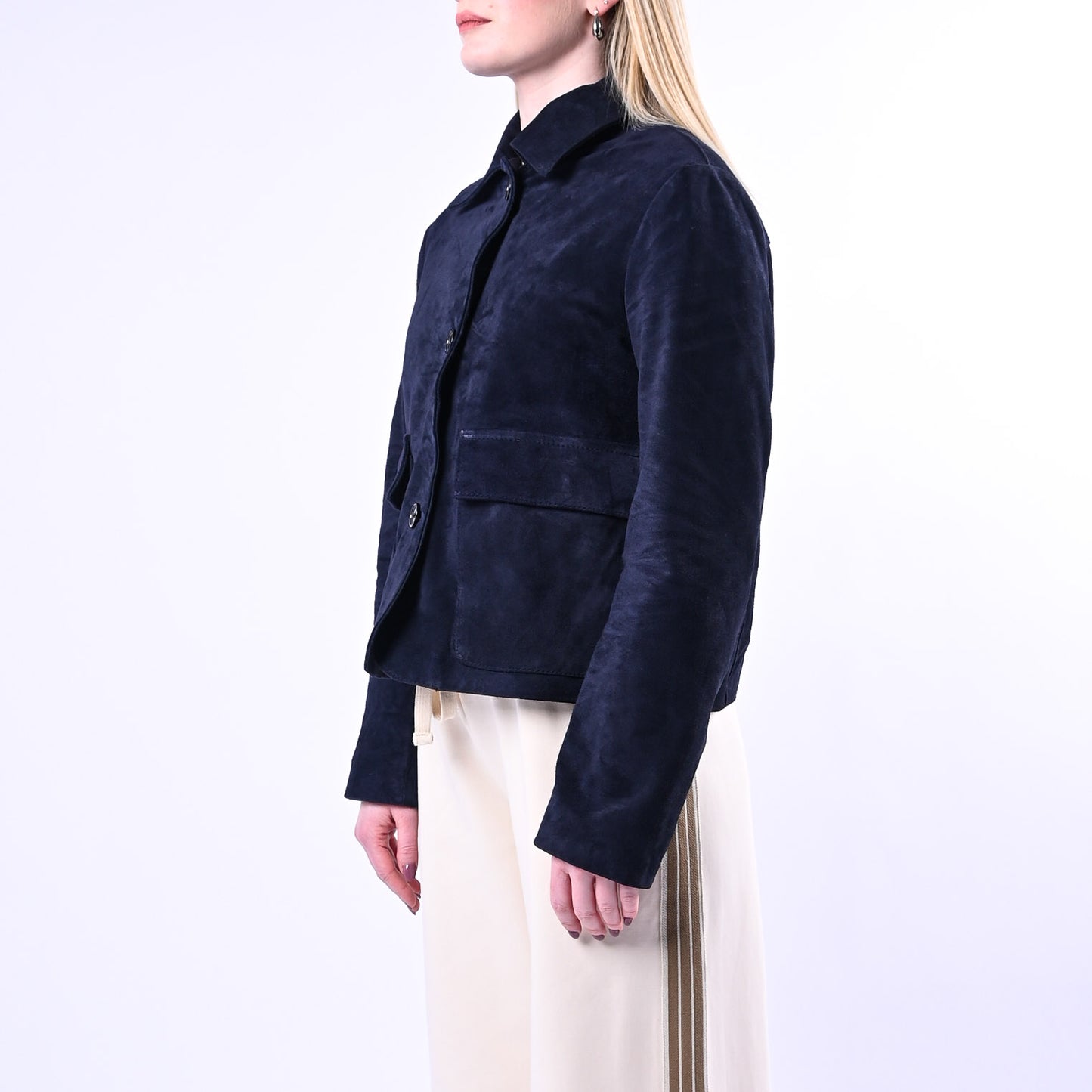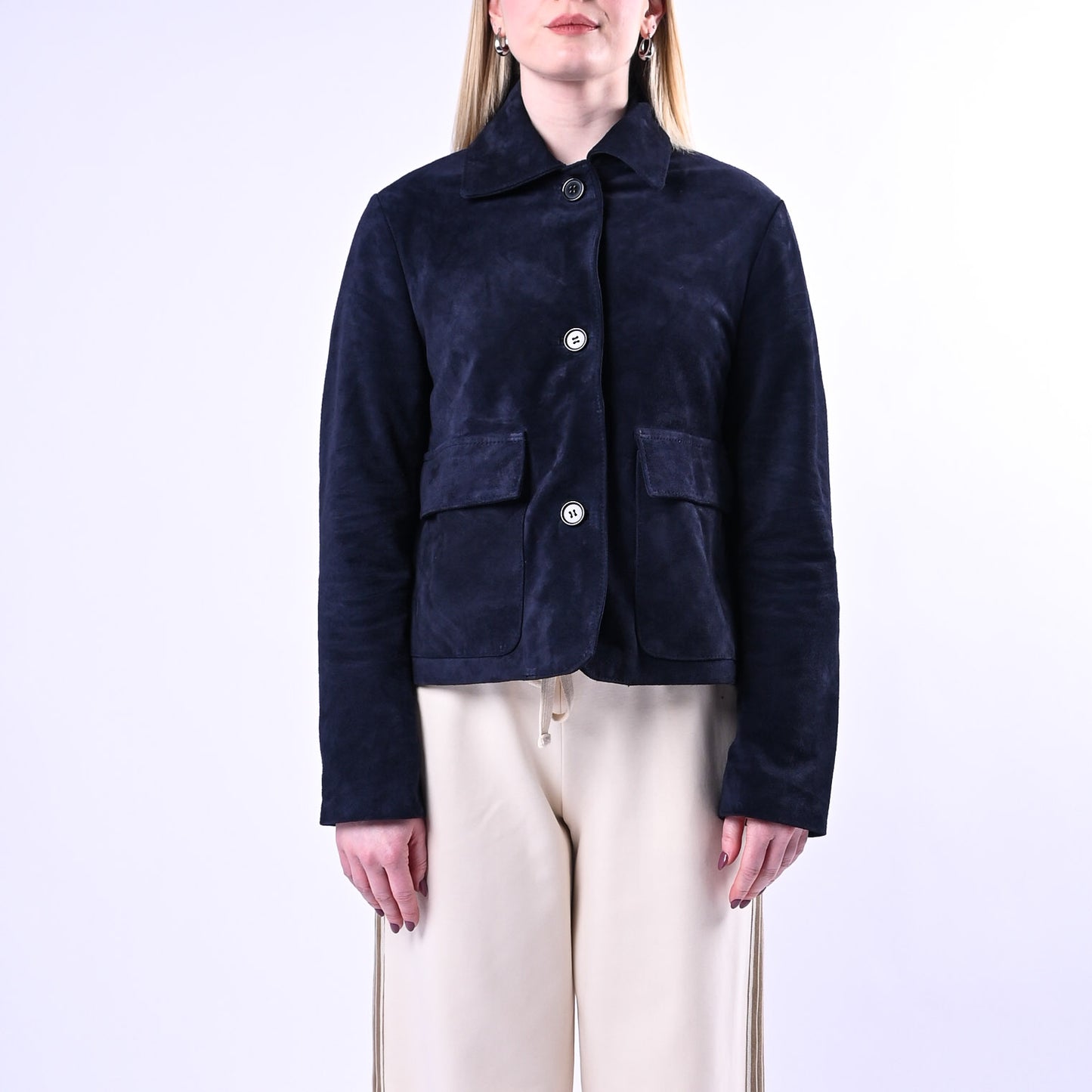 Giacca in morbida pelle scamosciata dal taglio a scatola, dotata di colletto strutturato e tasche applicate funzionali. Completamente foderata e chiusa da 3 bottoni, è il capo ideale per uno stile raffinato e duraturo nel tempo.