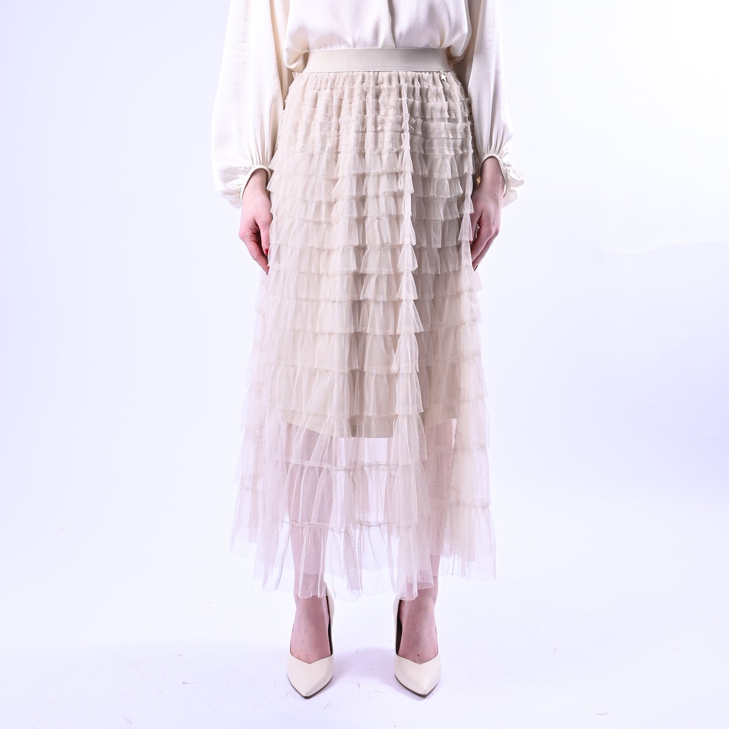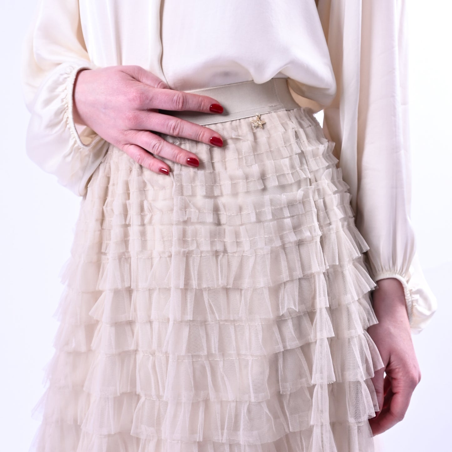 SOUVENIR - GONNA LUNGA IN TULLE A BALZE ART.S39M0744 - SABBIA