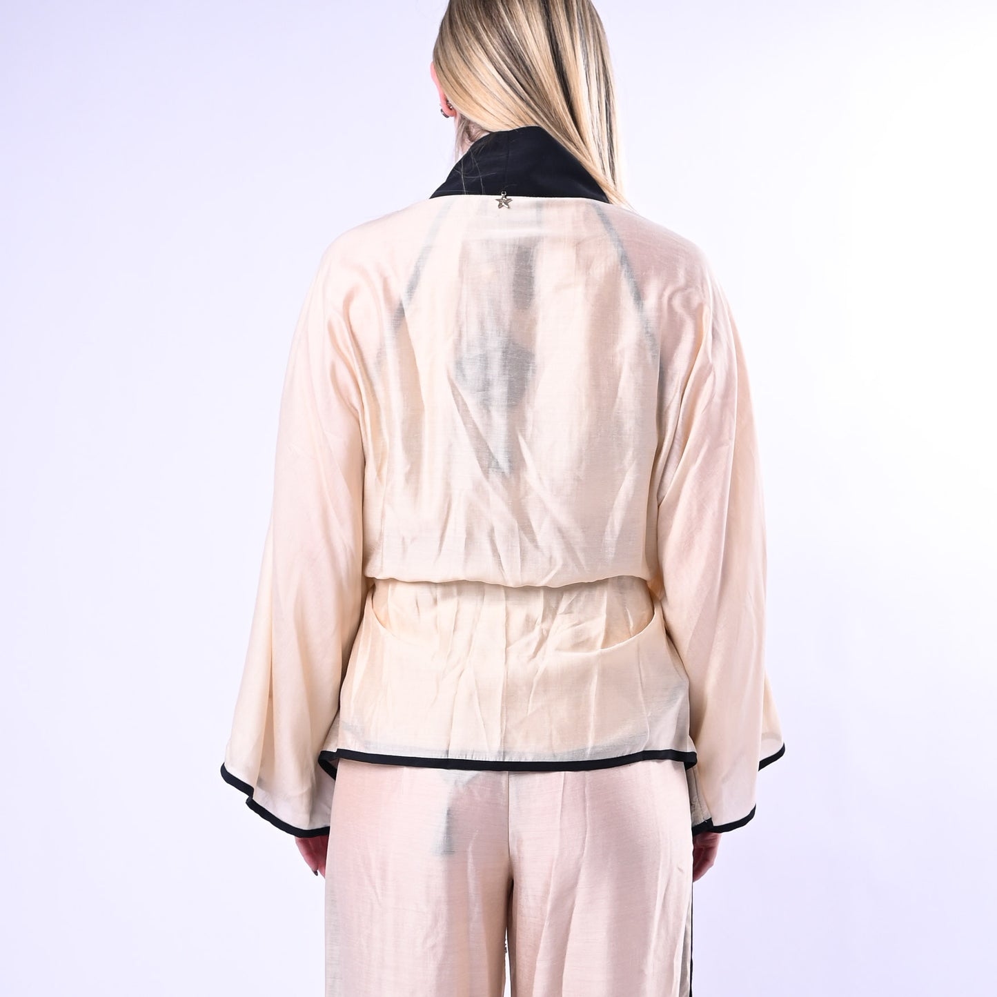 Il kimono può essere abbinato al suo pantalone ed al suo top coordinato.