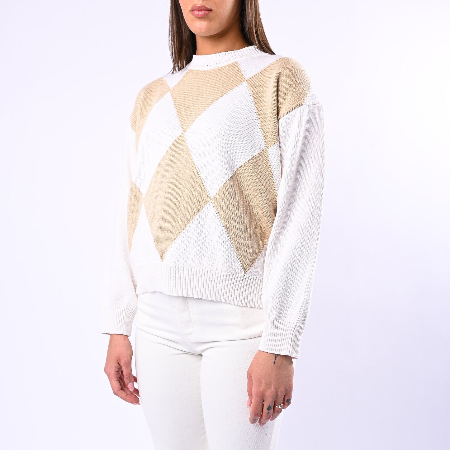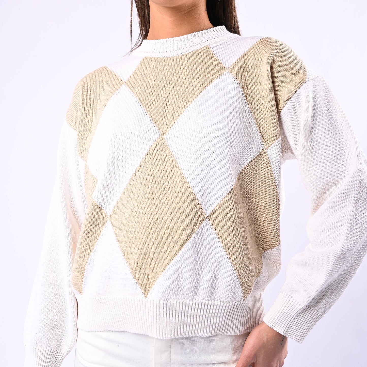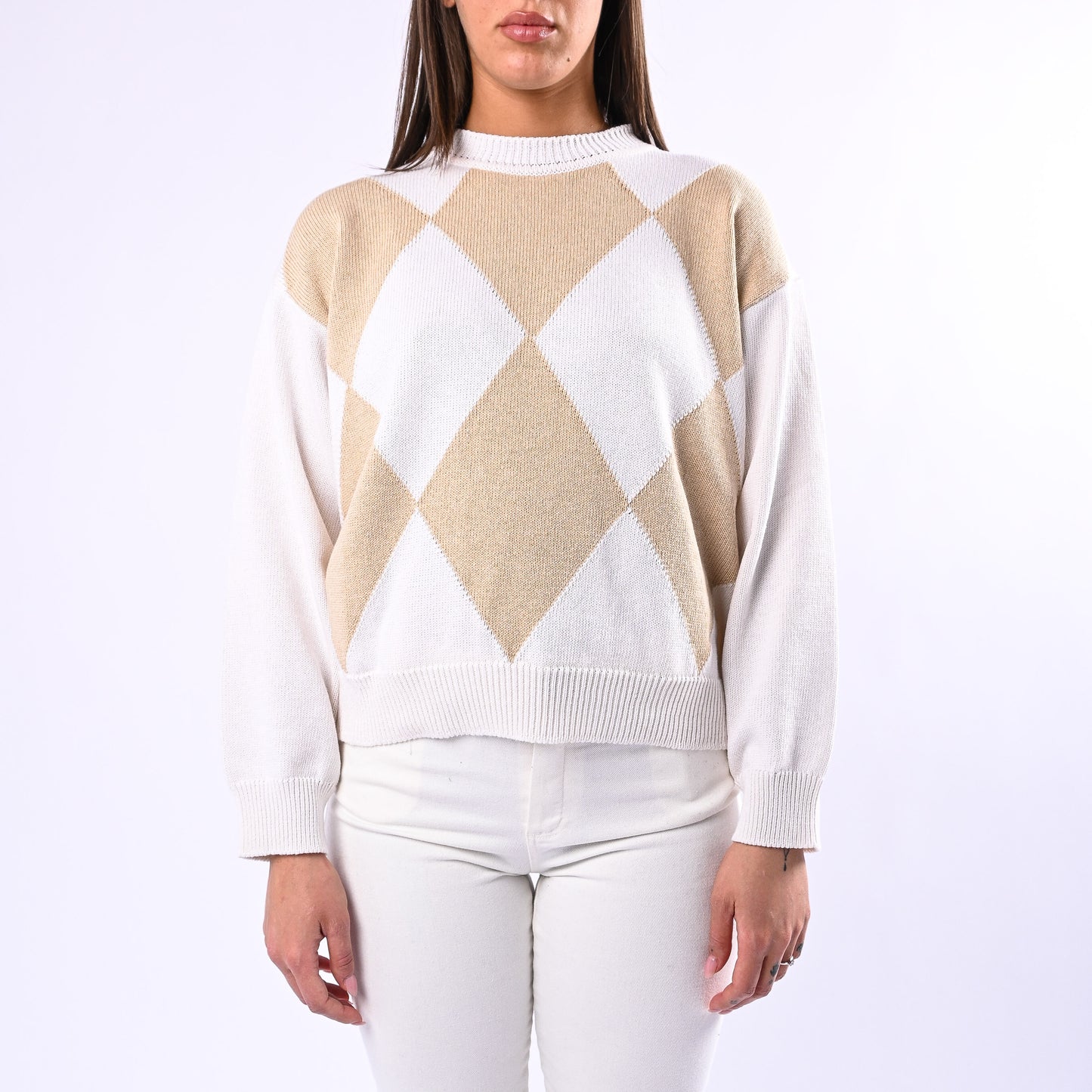 MOTEL - MAGLIA OVER GIROCOLLO A ROMBI ART.J05A414 -PANNA/BEIGE