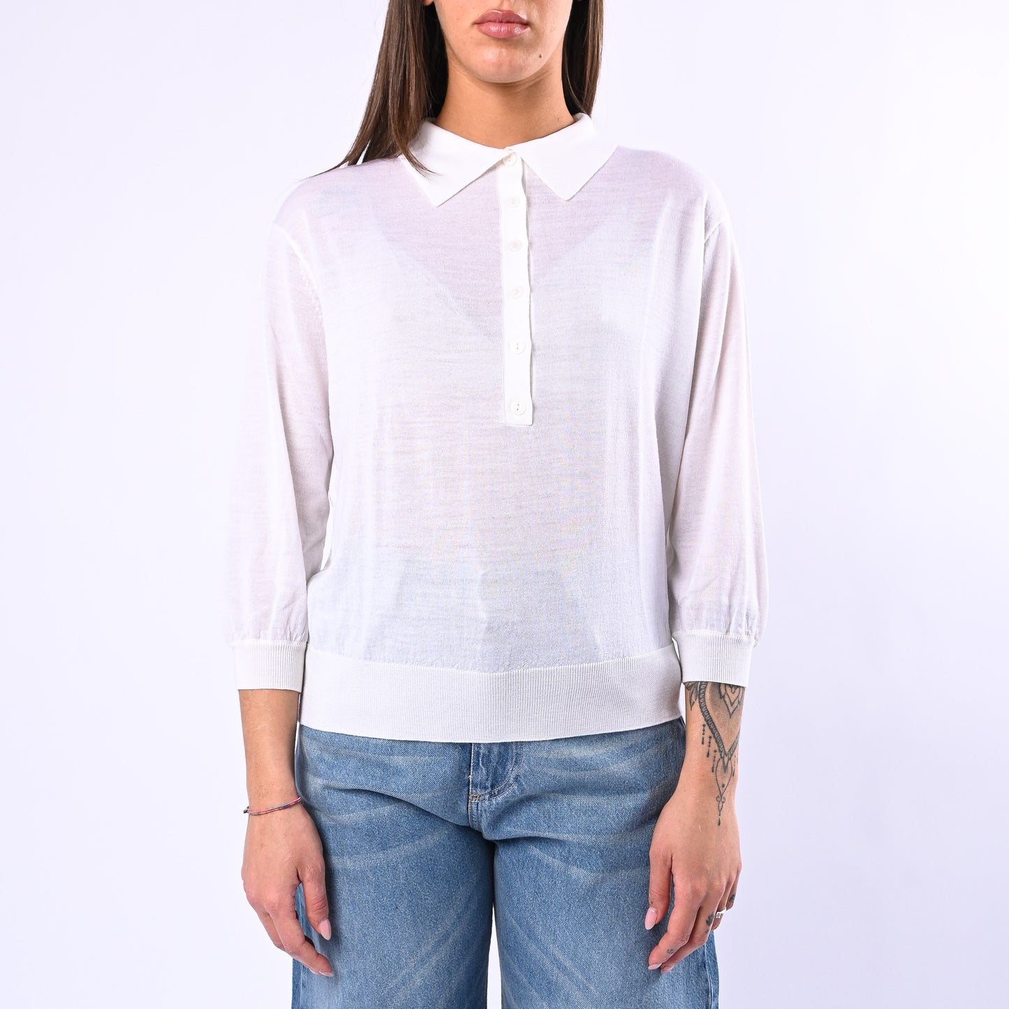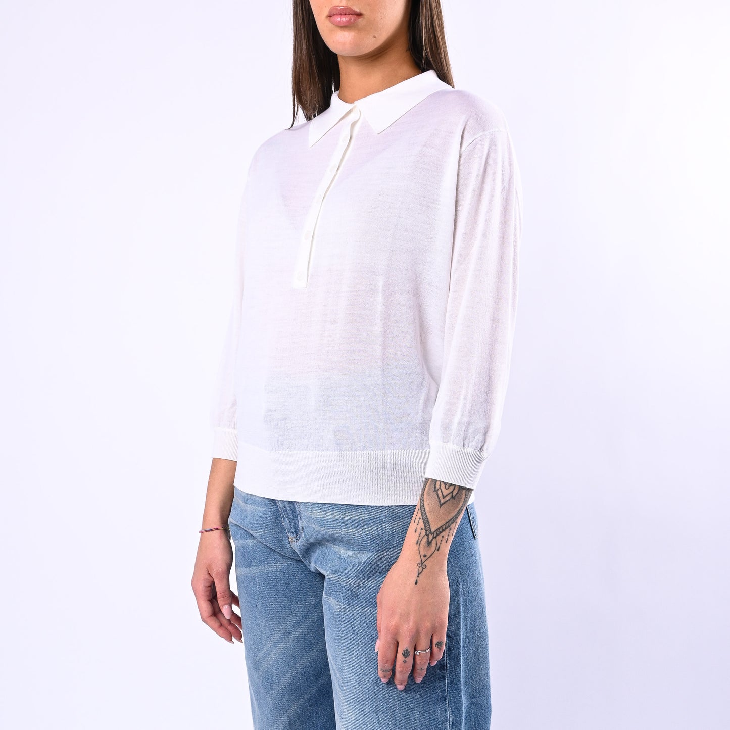 Polo in puro merinos leggero con colletto a punta e sei bottoncini tono su tono, perfetta per una vestibilità raffinata e versatile. Spalla leggermente scesa per un comfort naturale e un'estetica contemporanea che si adatta a qualsiasi occasione.
