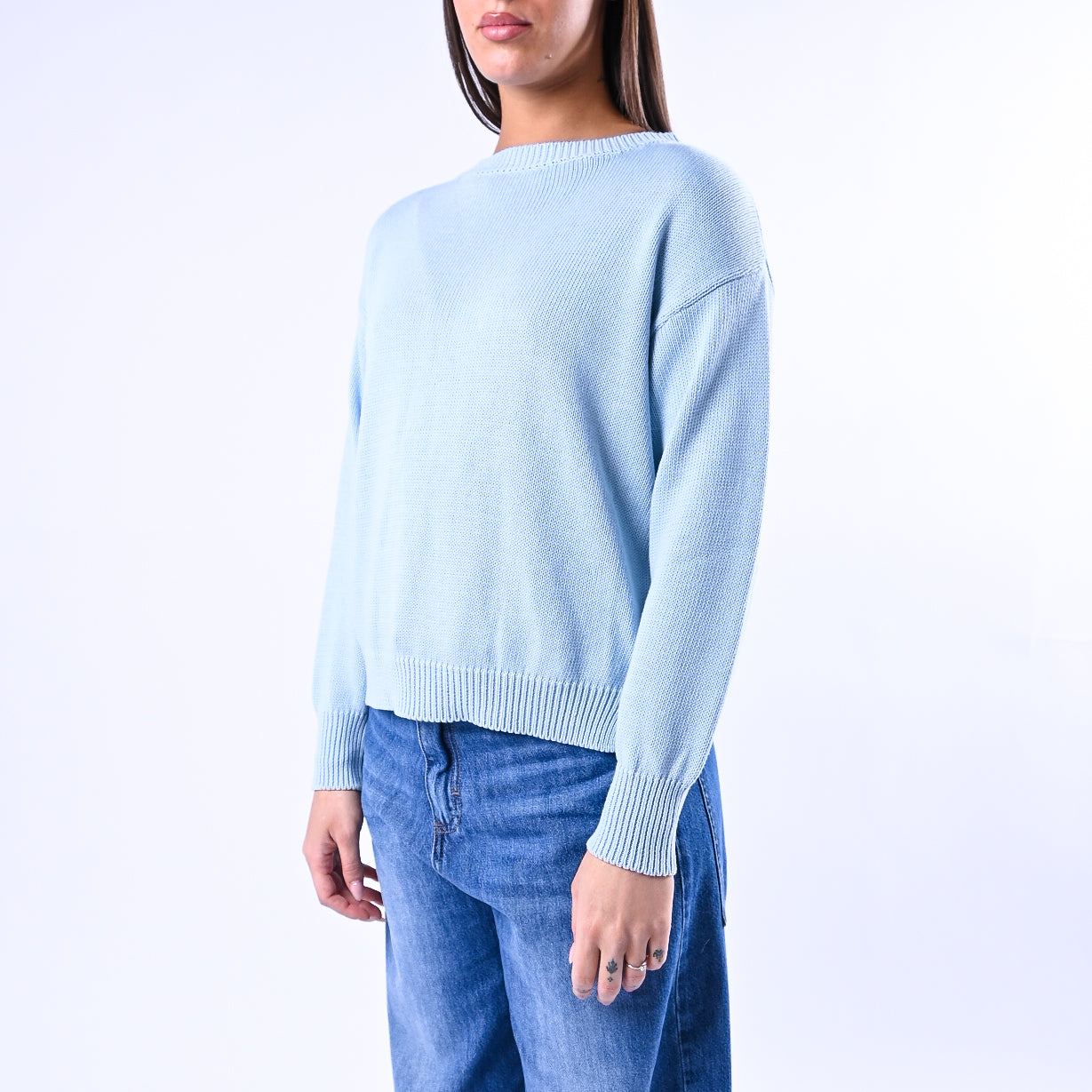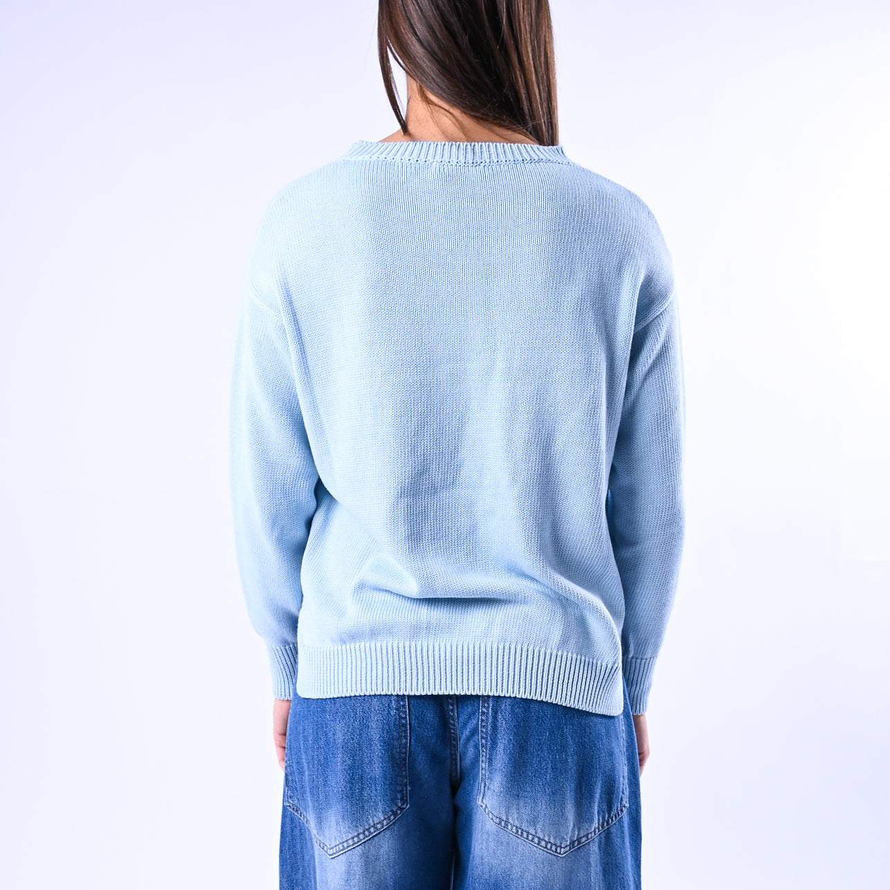 B LOVE - MAGLIA GIROCOLLO PURO COTONE ART.C24004 - CELESTE