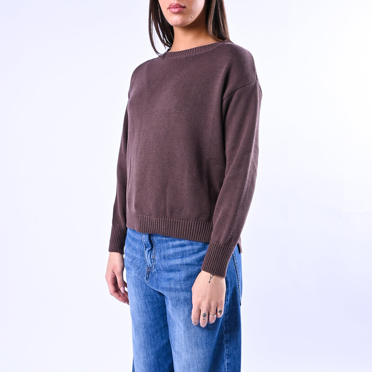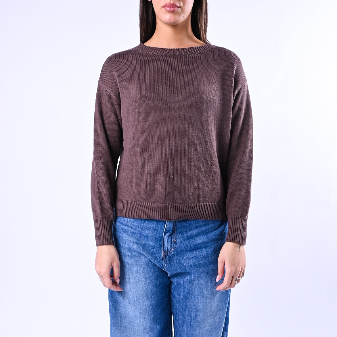 B LOVE - MAGLIA GIROCOLLO PURO COTONE ART.C24004 - MORO