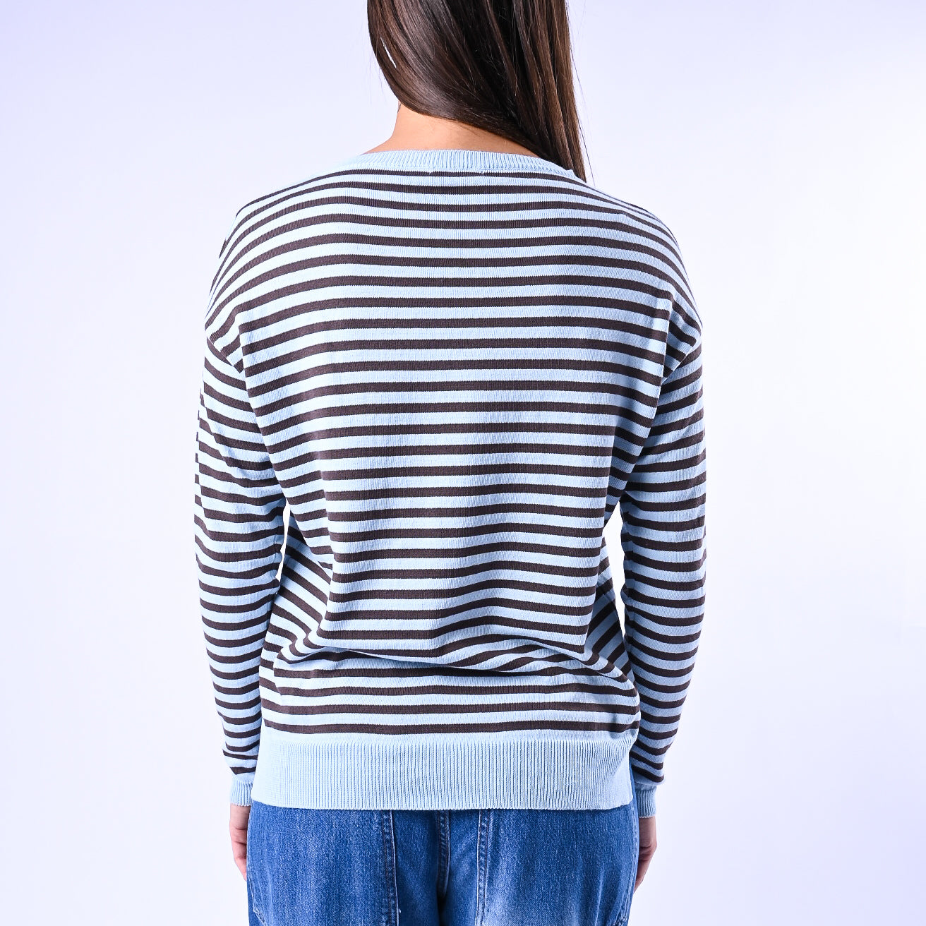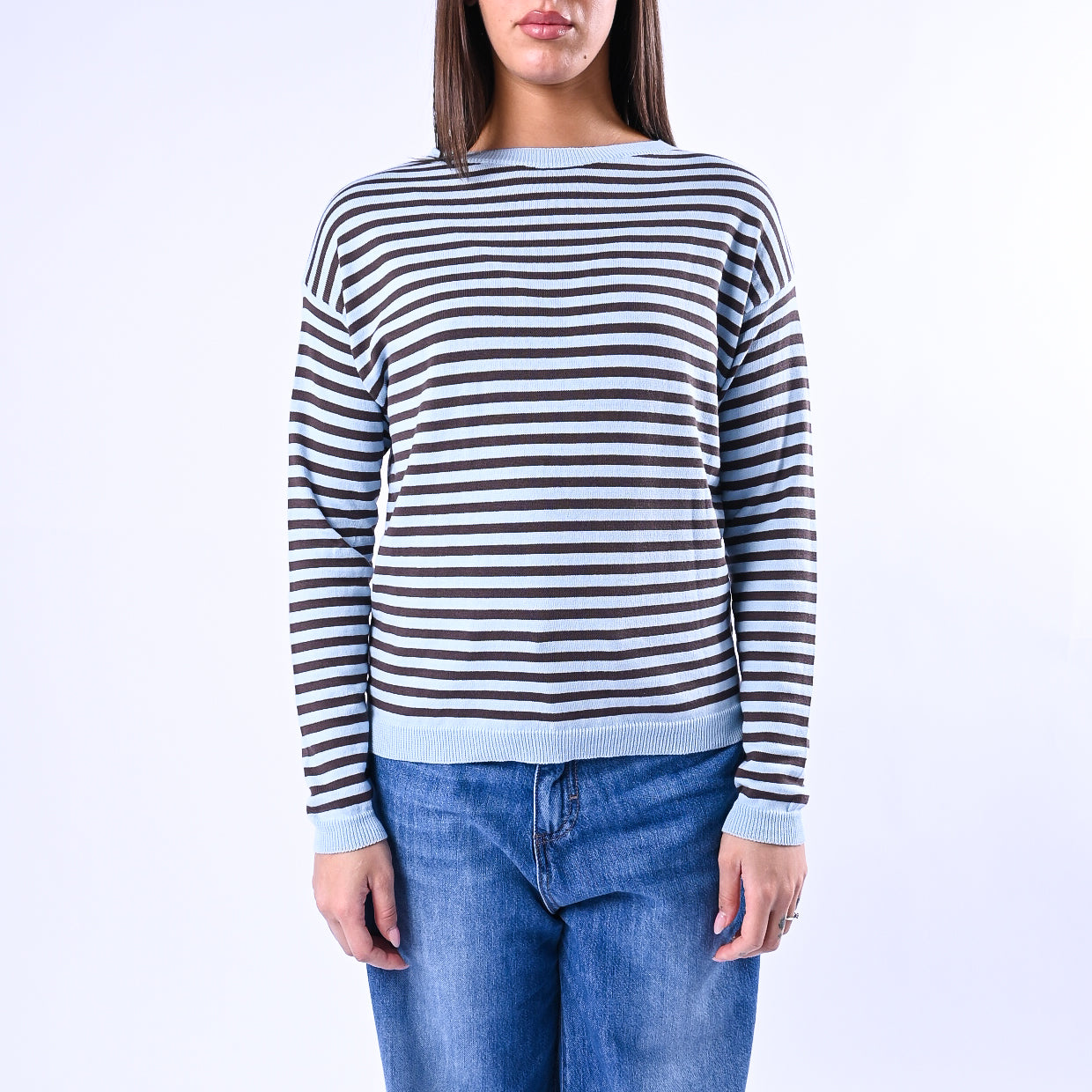 B LOVE - MAGLIA RIGHE SCOLLO BARCHETTA ART.C225 - CELESTE/MORO