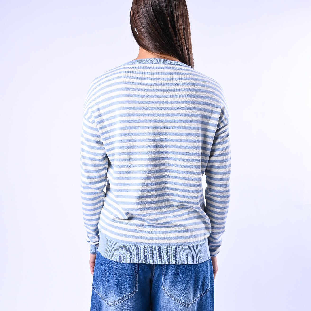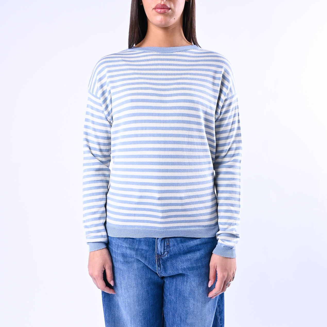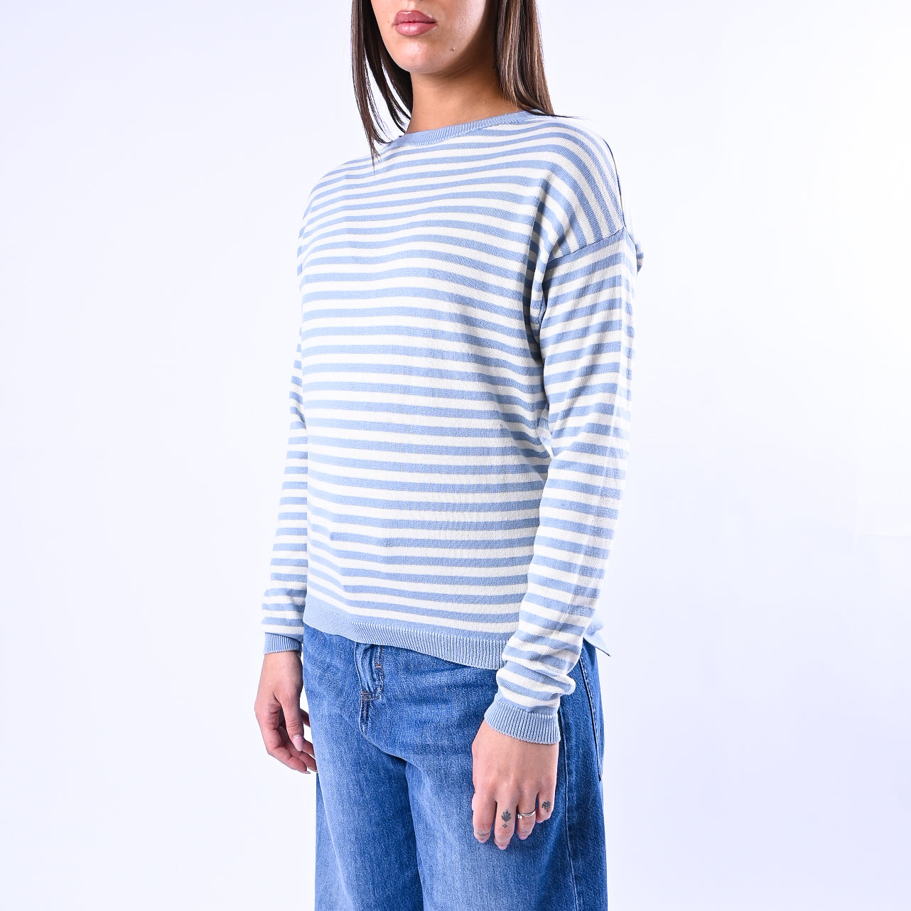 B LOVE - MAGLIA RIGHE SCOLLO BARCHETTA ART.C225 - PANNA/CELESTE