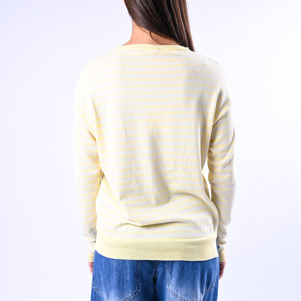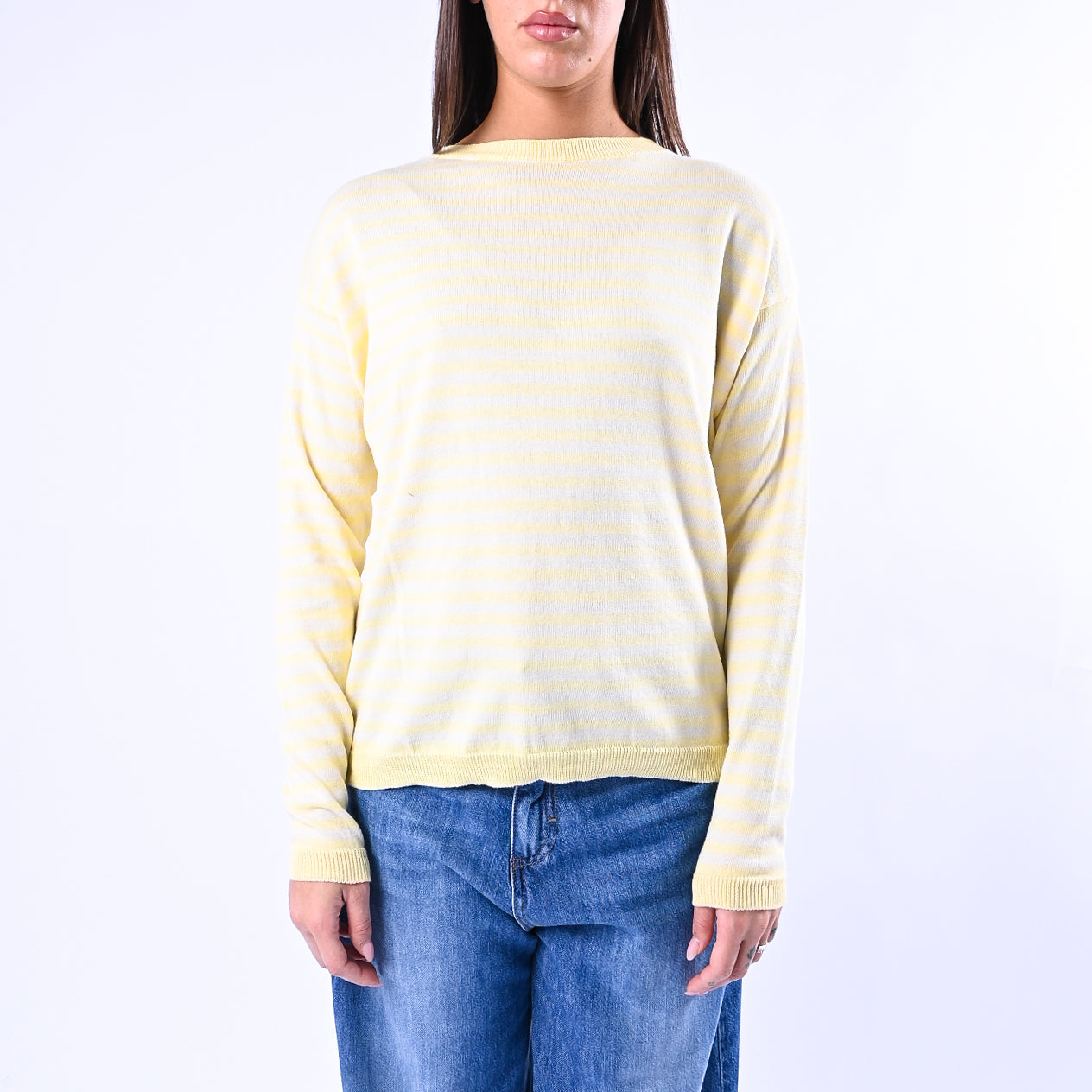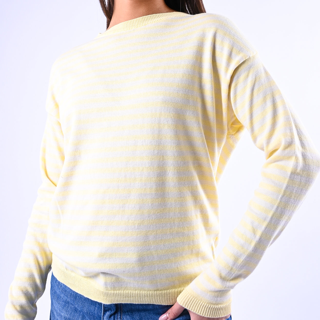 B LOVE - MAGLIA RIGHE SCOLLO BARCHETTA ART.C225 - PANNA/GIALLO