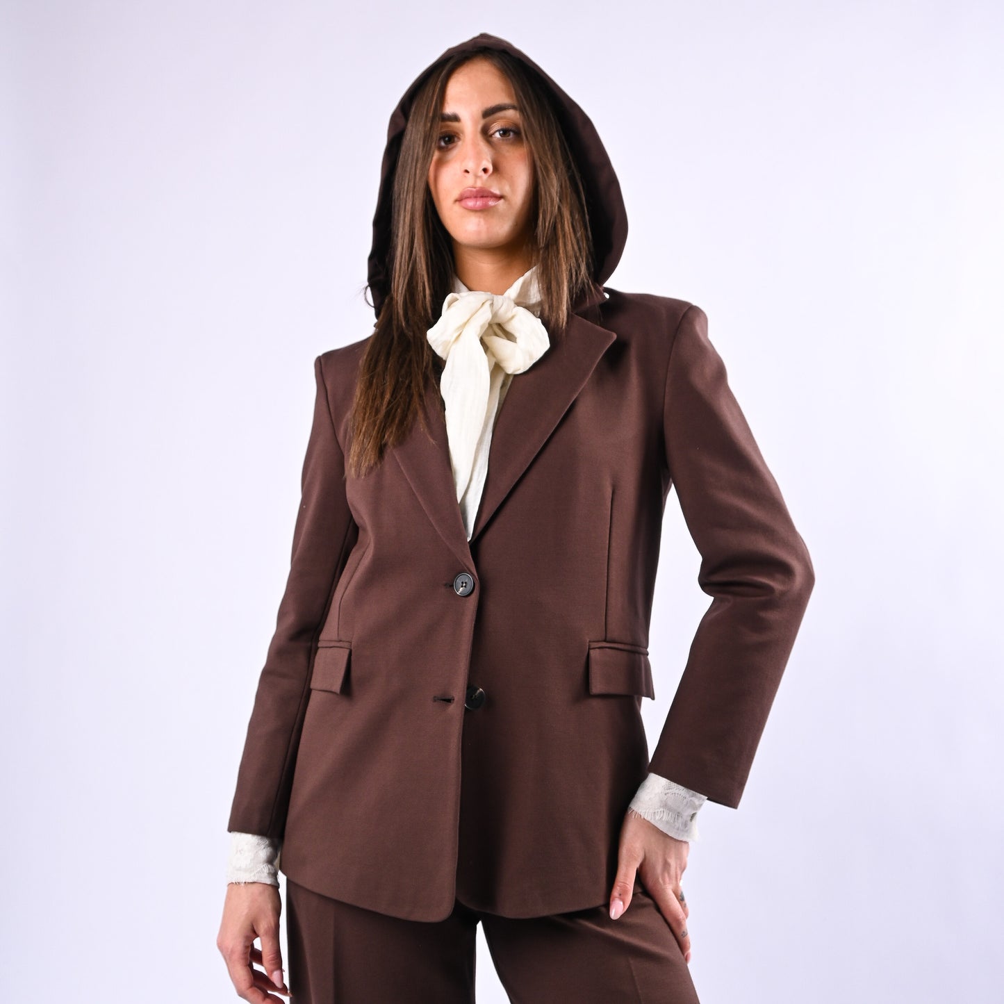 MOTEL - GIACCA PUNTO MILANO CON CAPPUCCIO REMOVIBILE ART.26B3677 - CIOCCOLATO