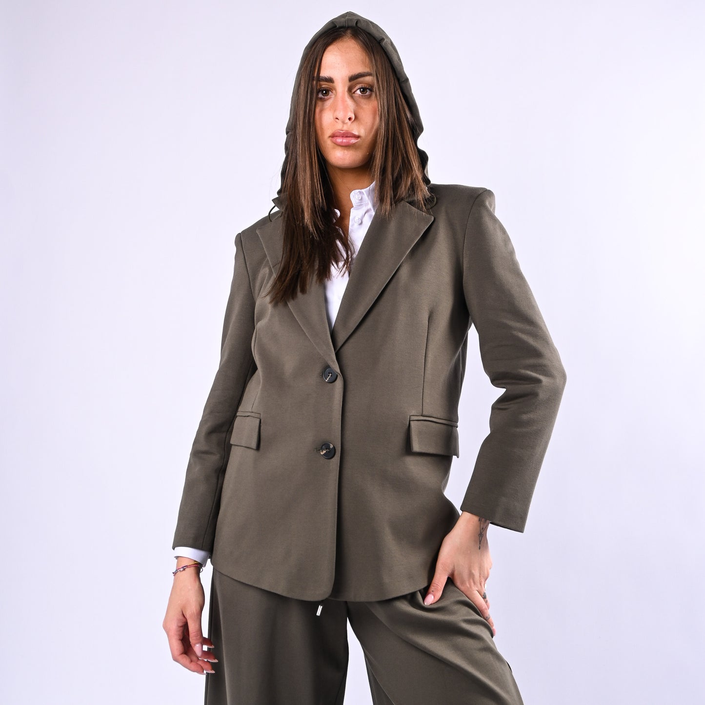 MOTEL - GIACCA PUNTO MILANO CON CAPPUCCIO REMOVIBILE ART.26B3677 - MILITARE